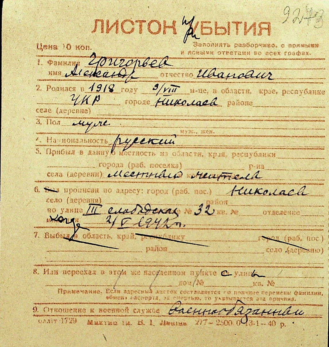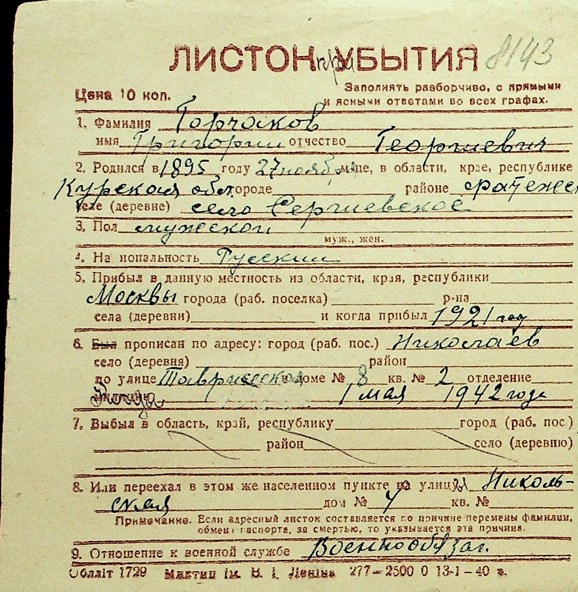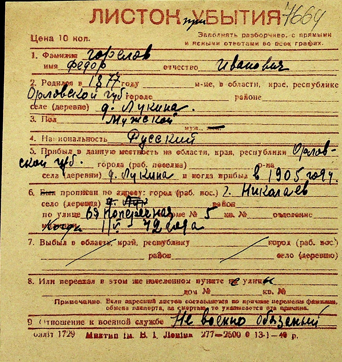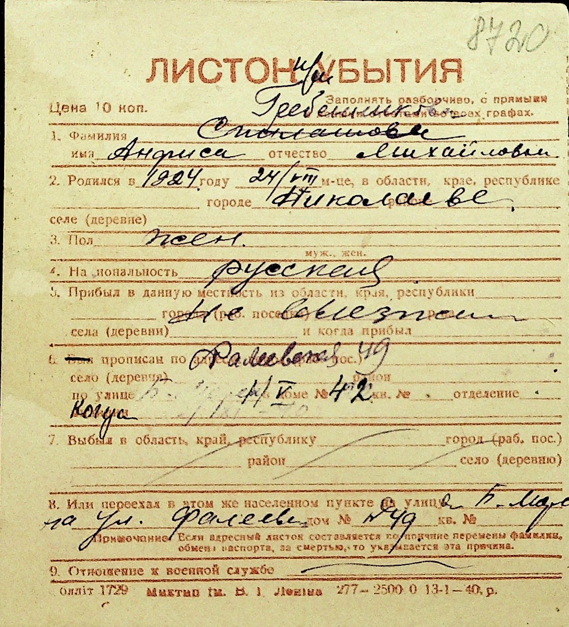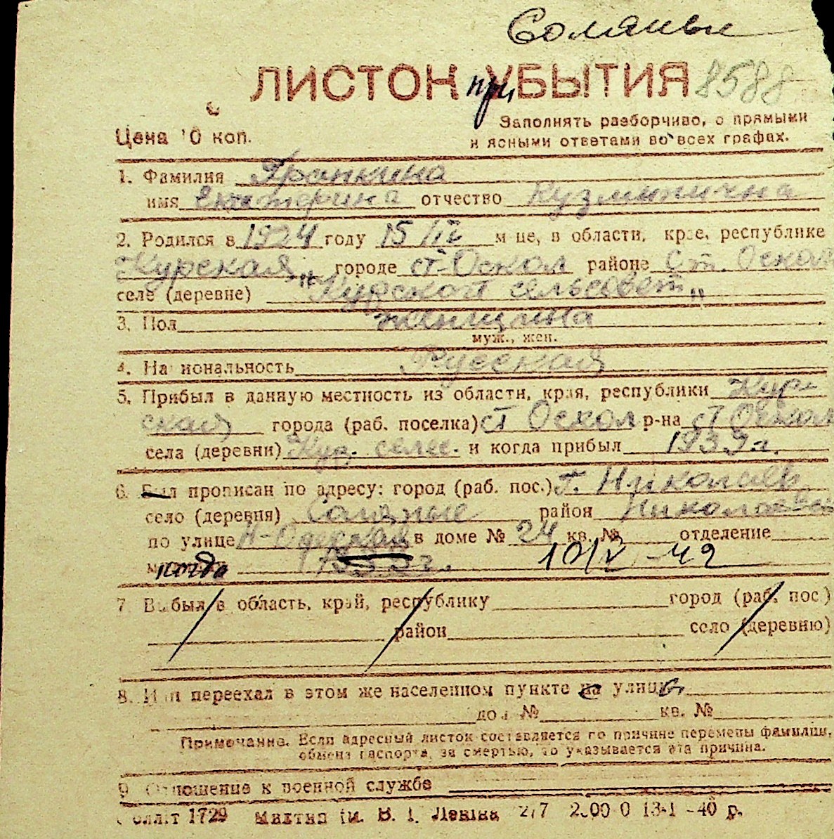 • • Перелік карток до фонду № Н-1016