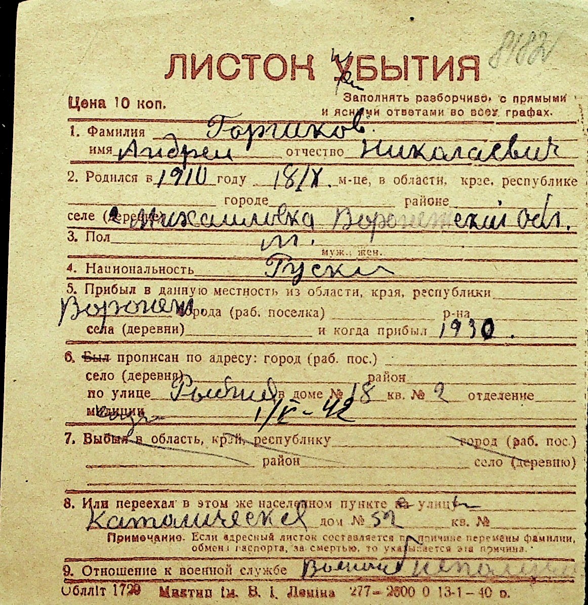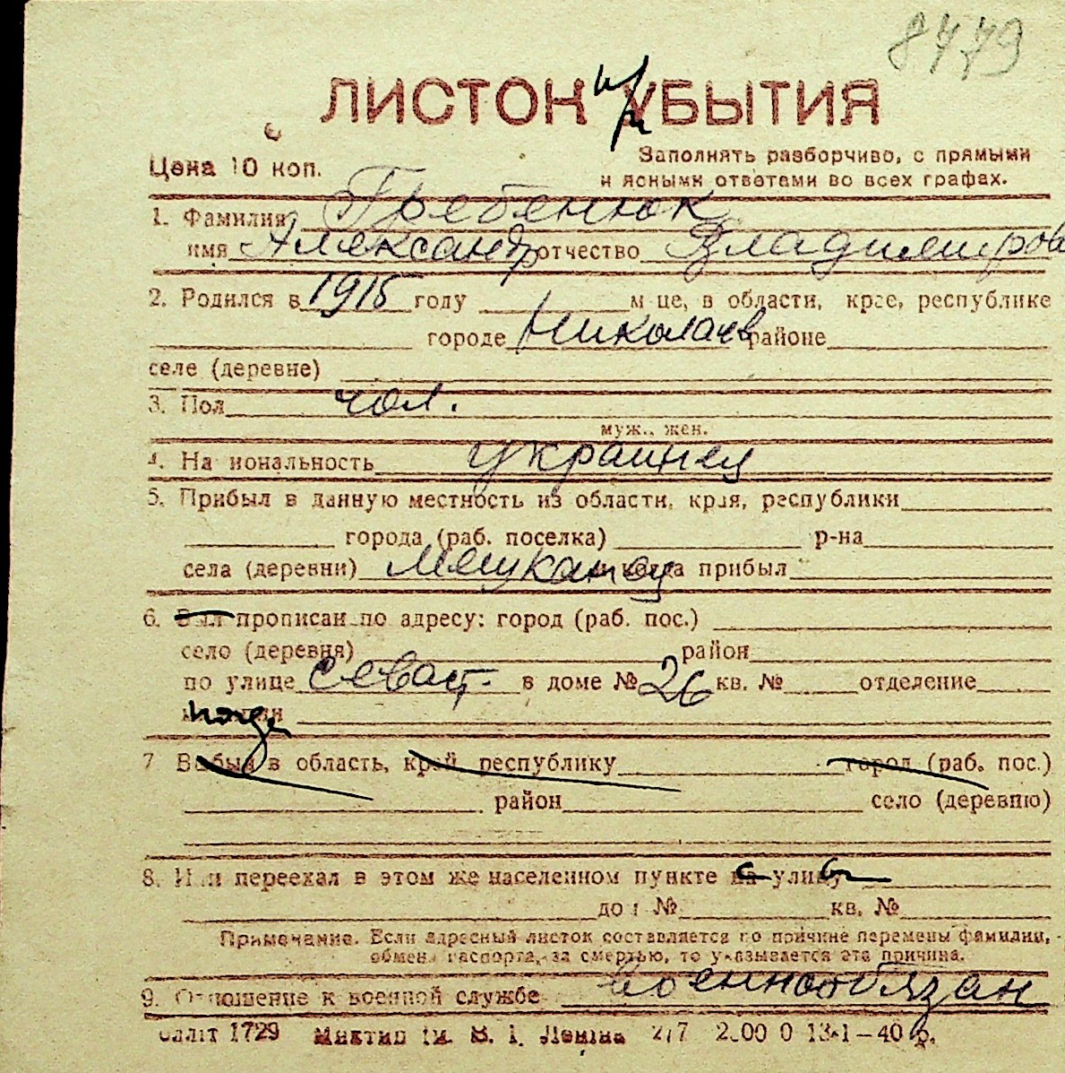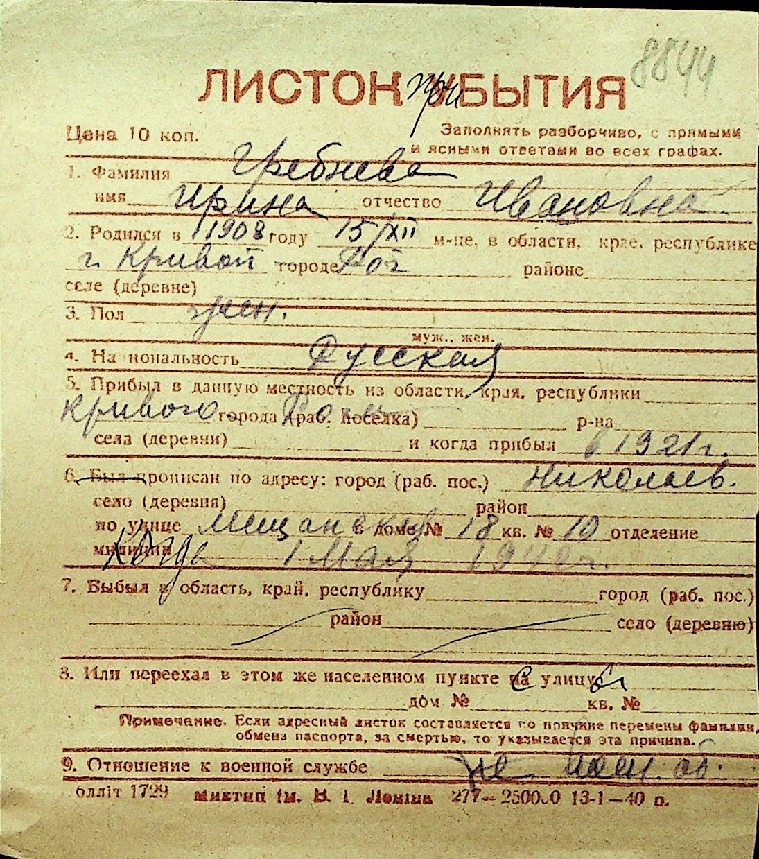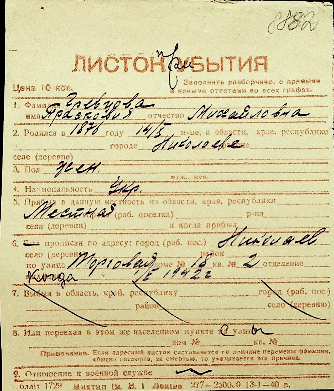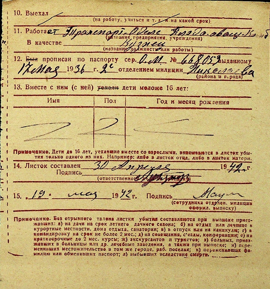 • • Перелік карток до фонду № Н-1016