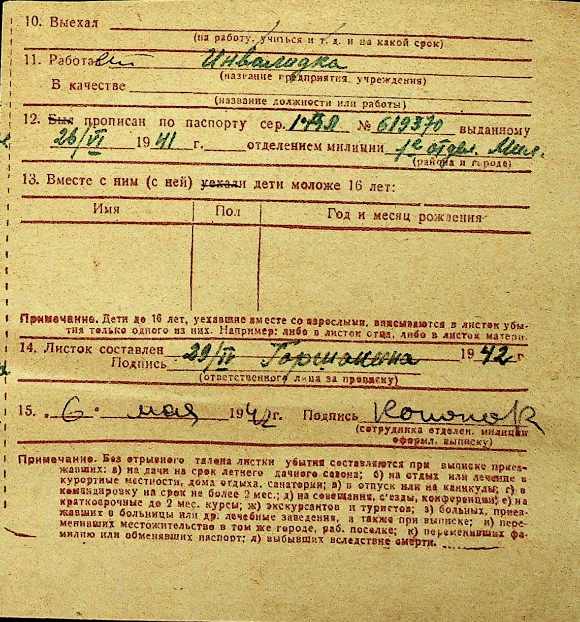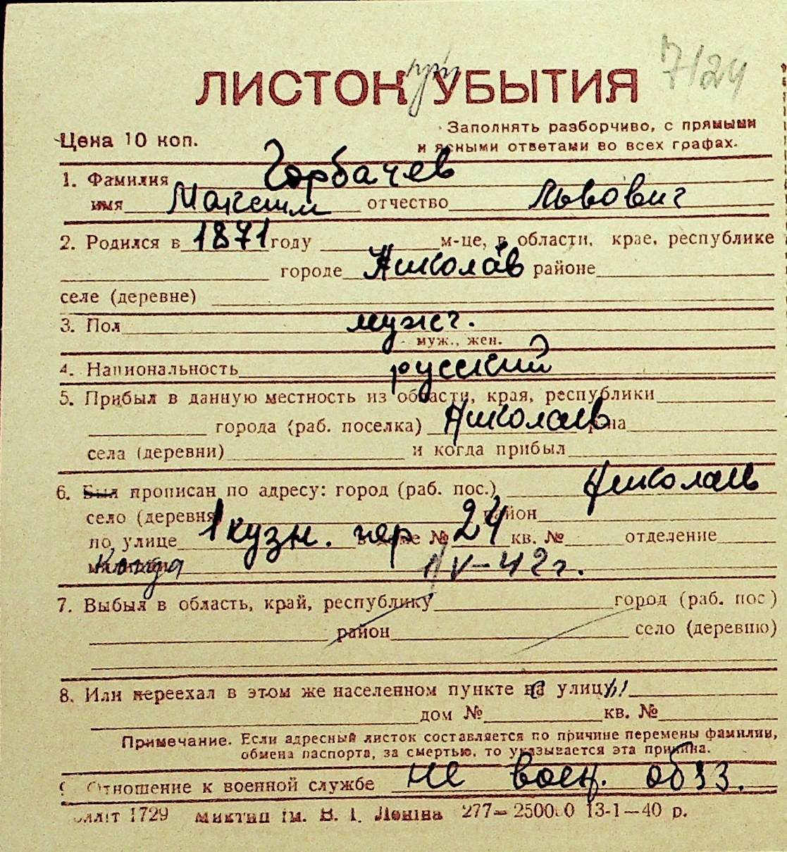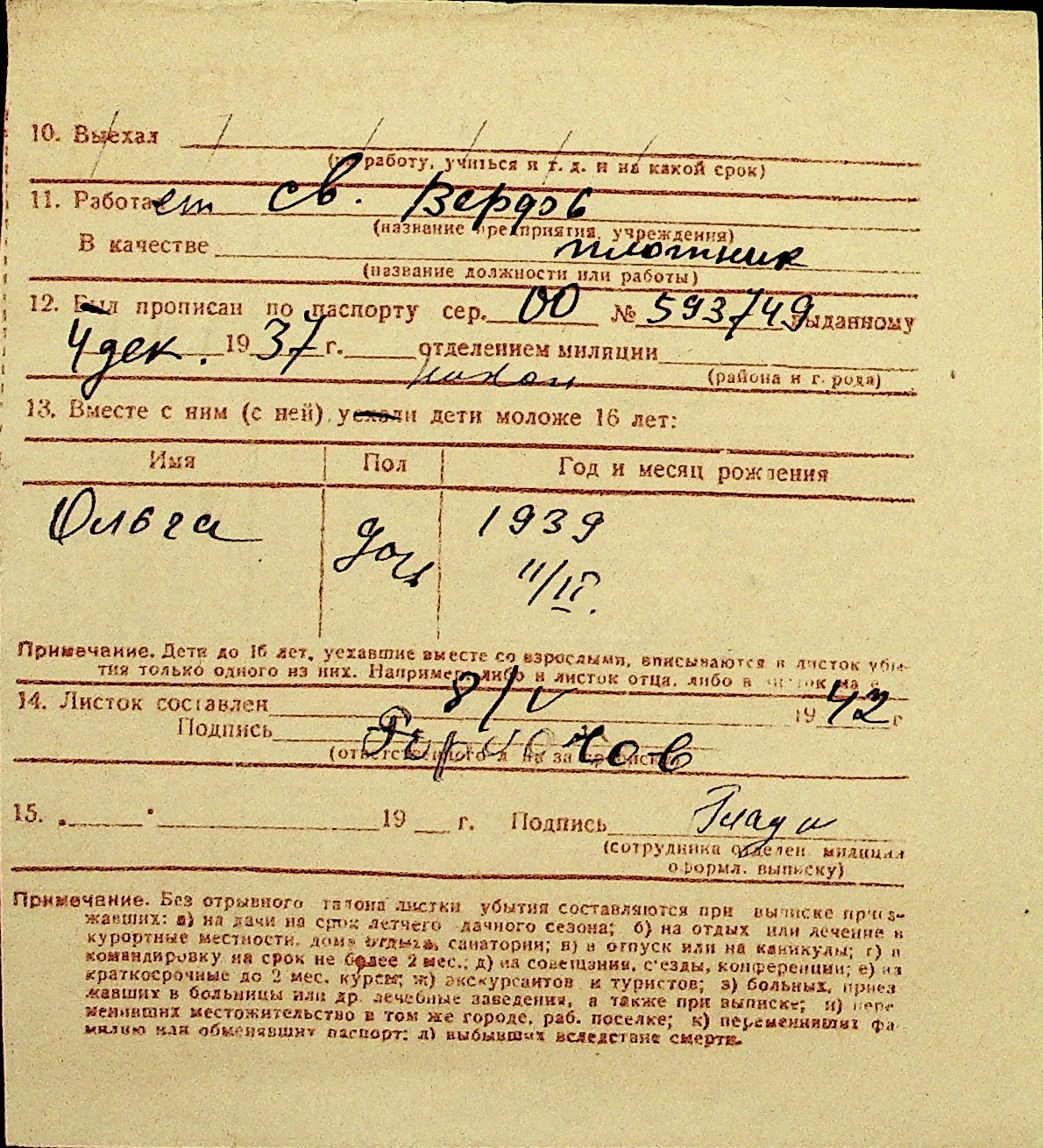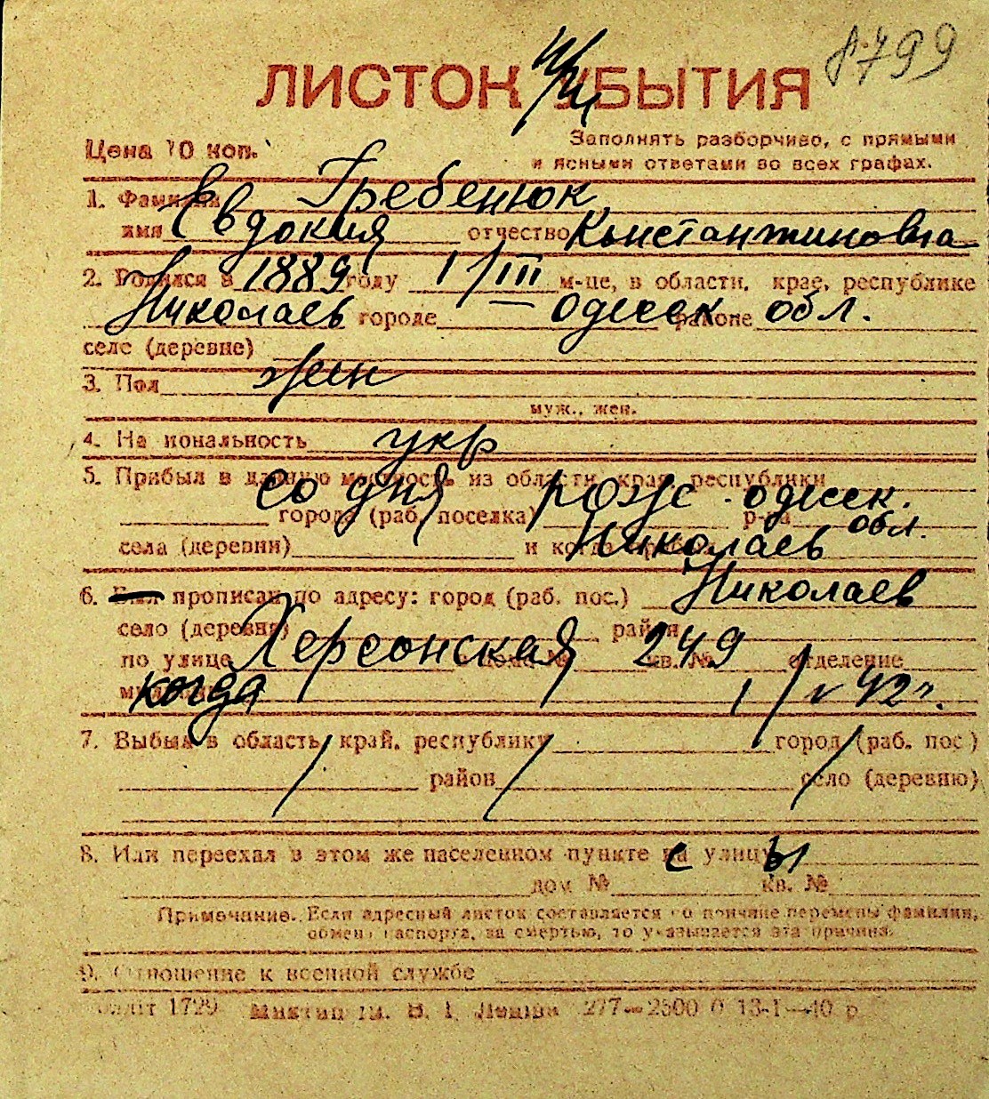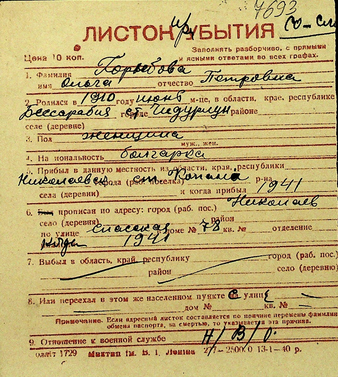 • • Перелік карток до фонду № Н-1016