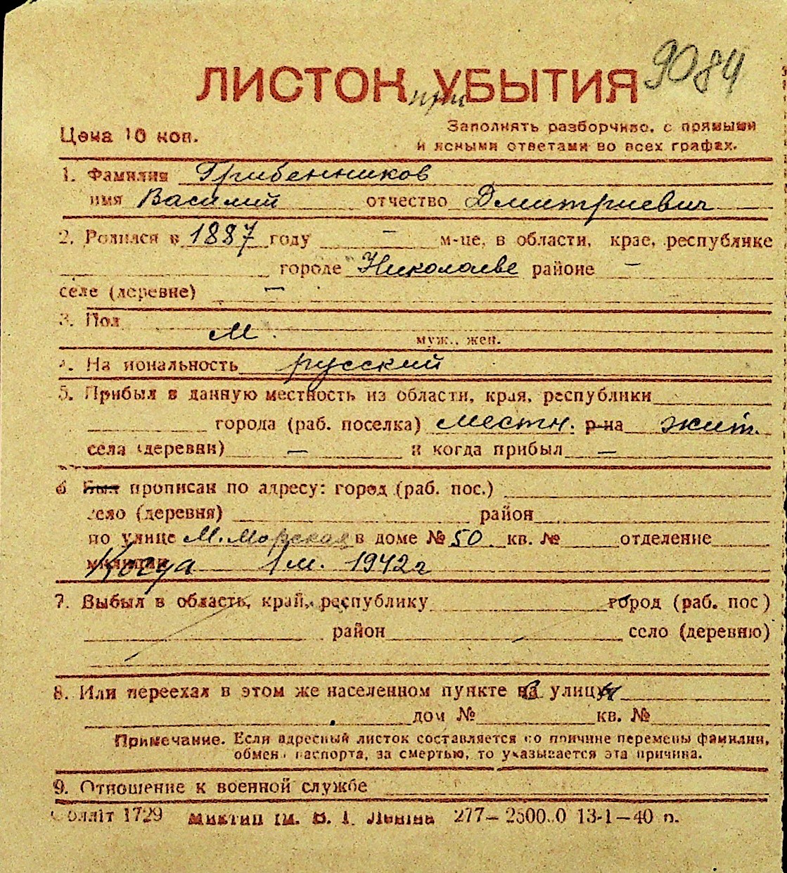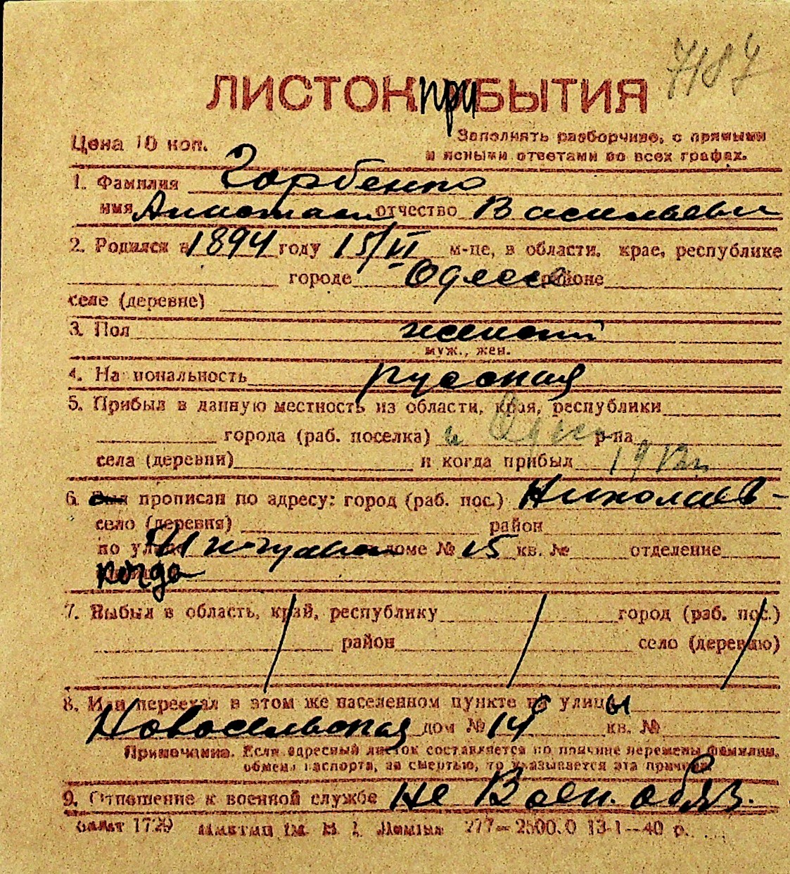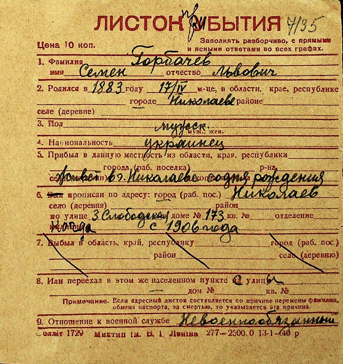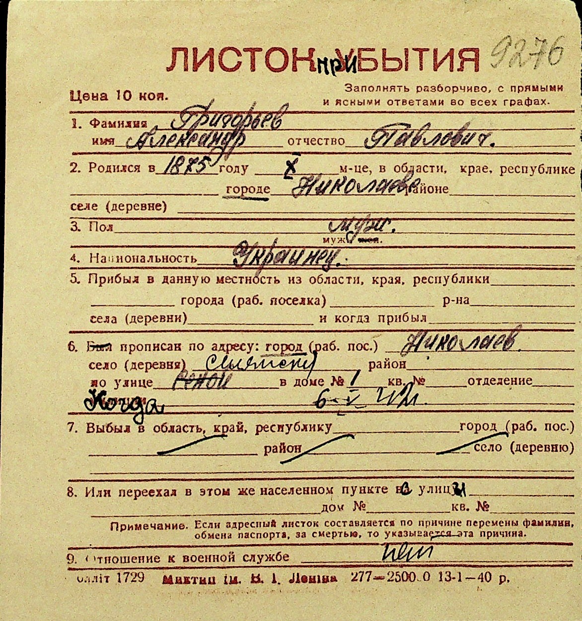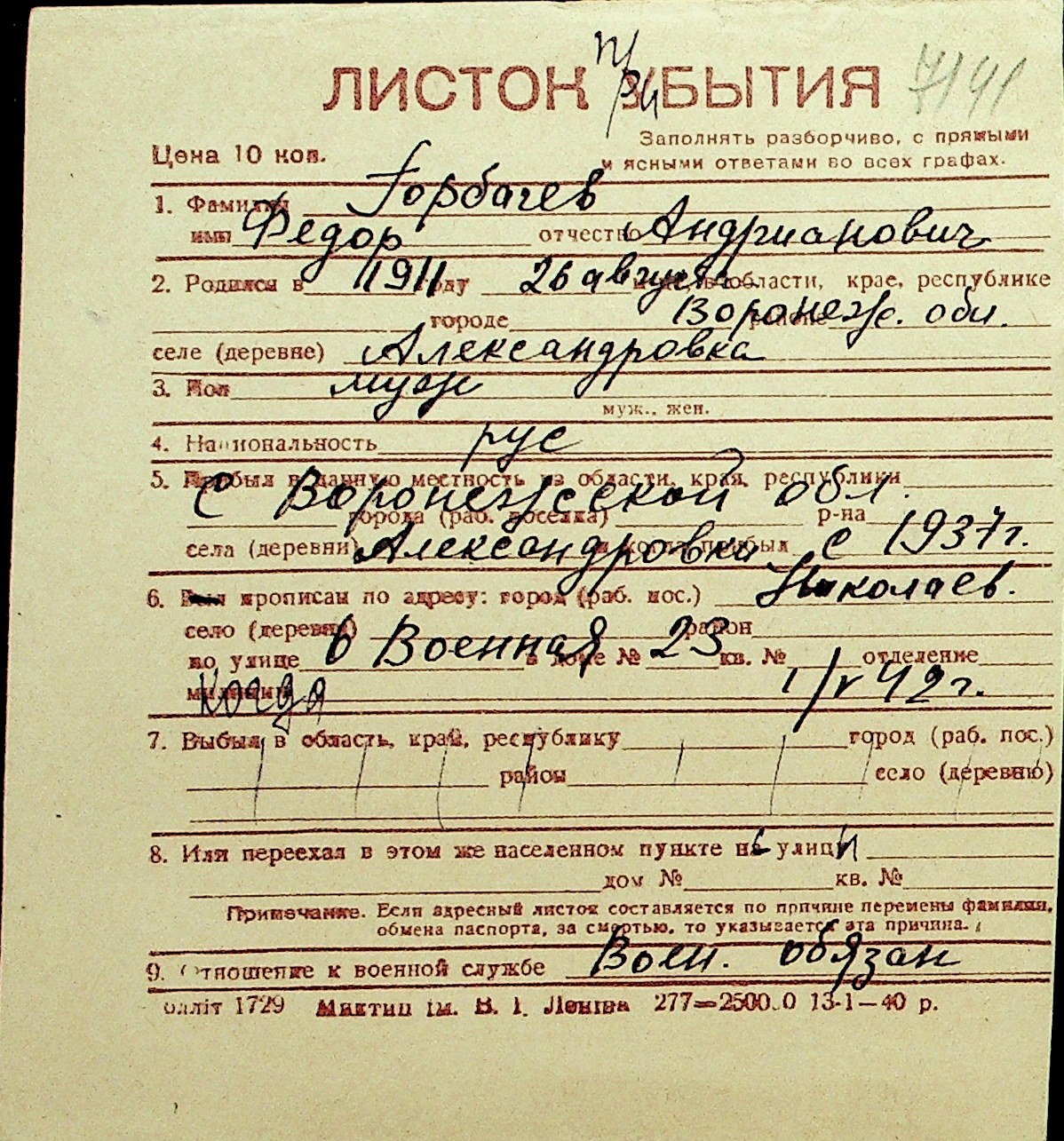 • • Перелік карток до фонду № Н-1016