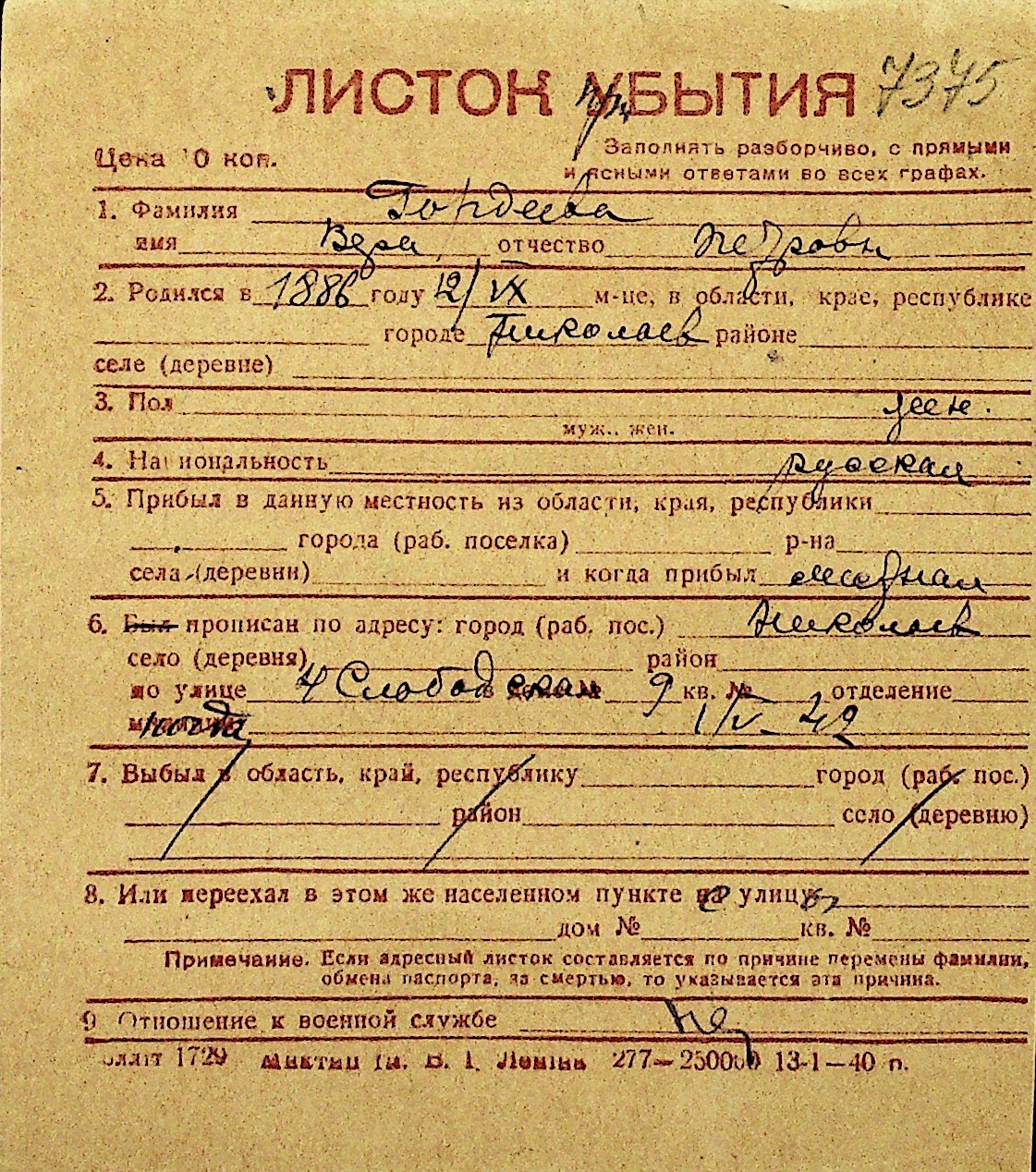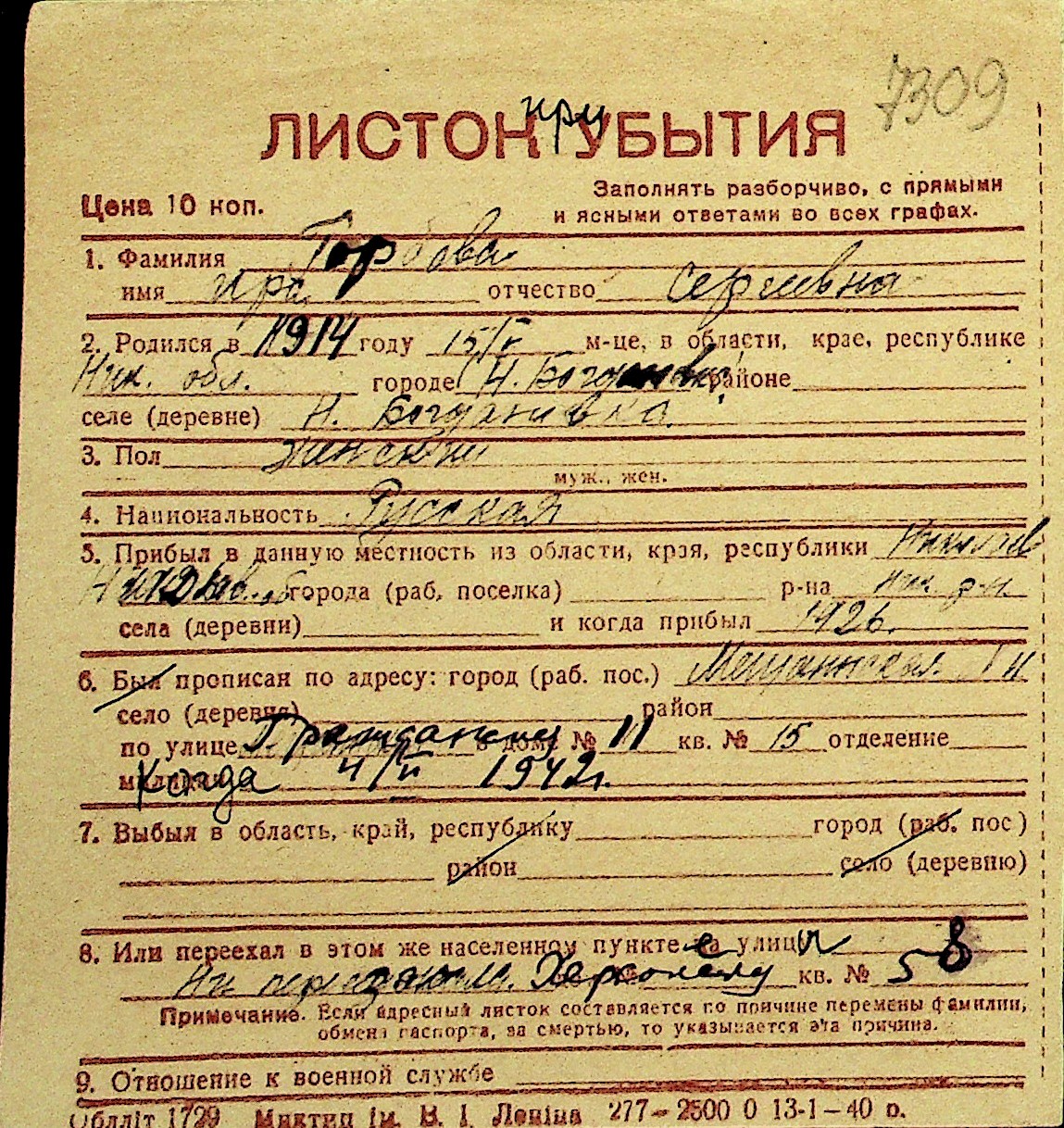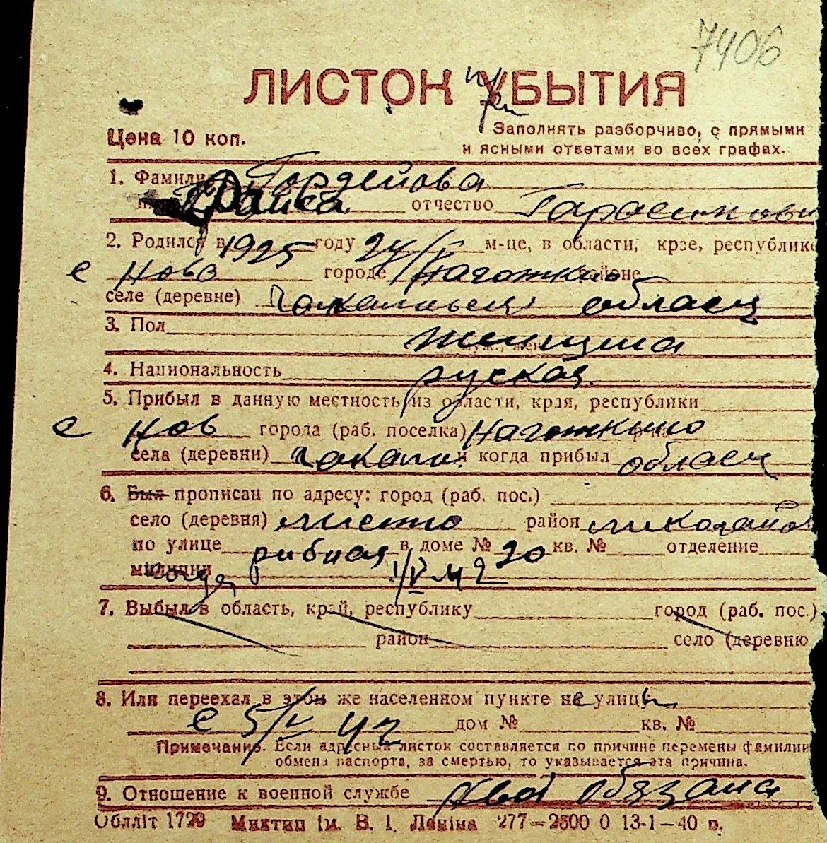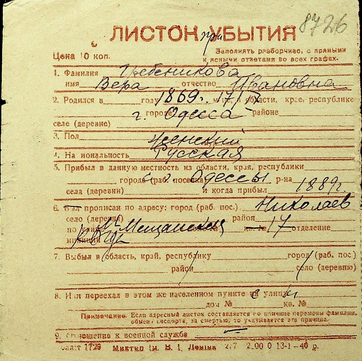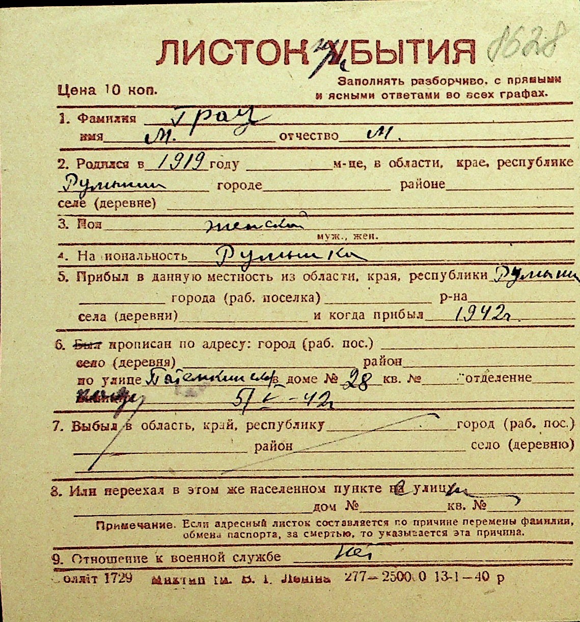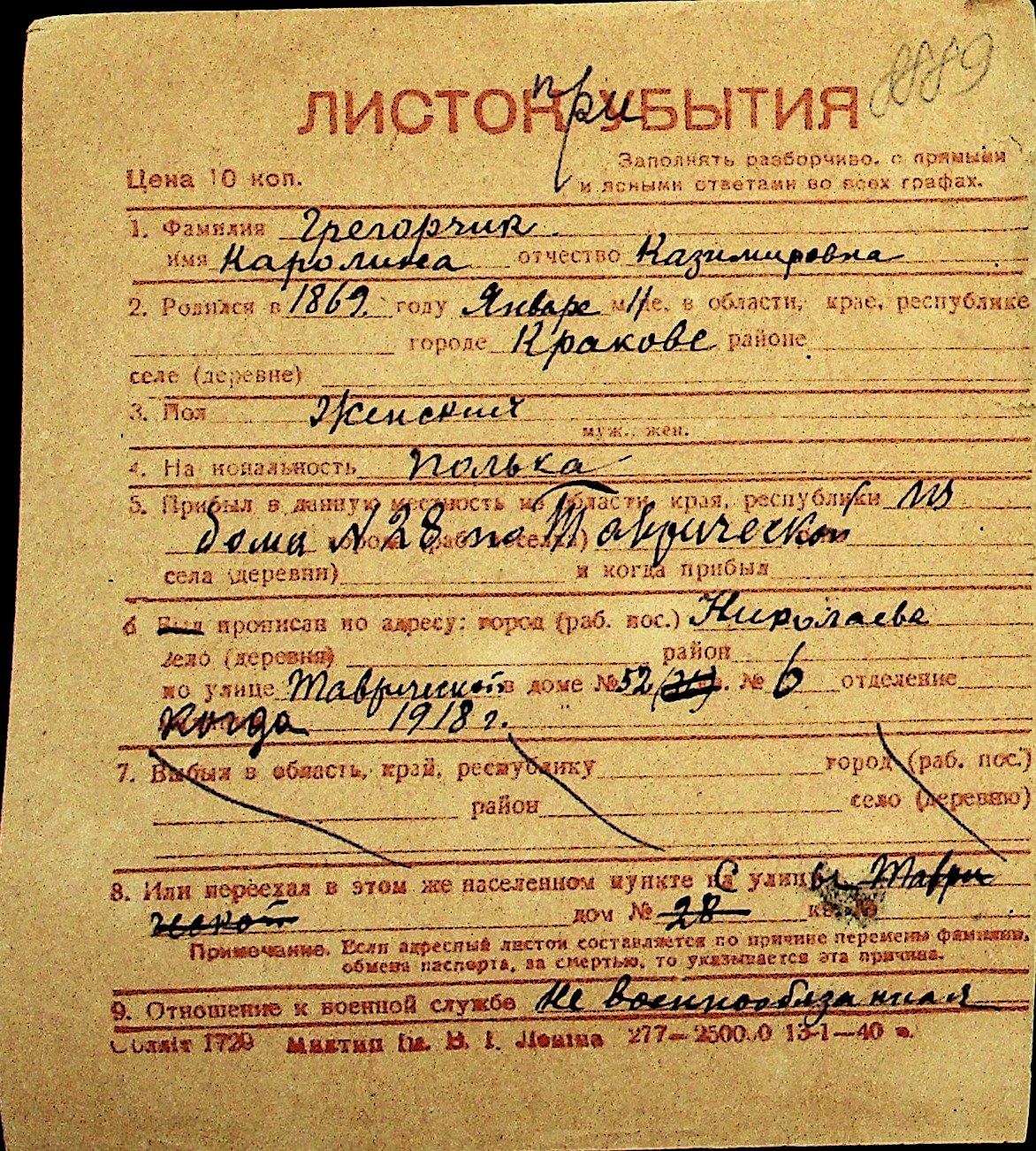 • • Перелік карток до фонду № Н-1016