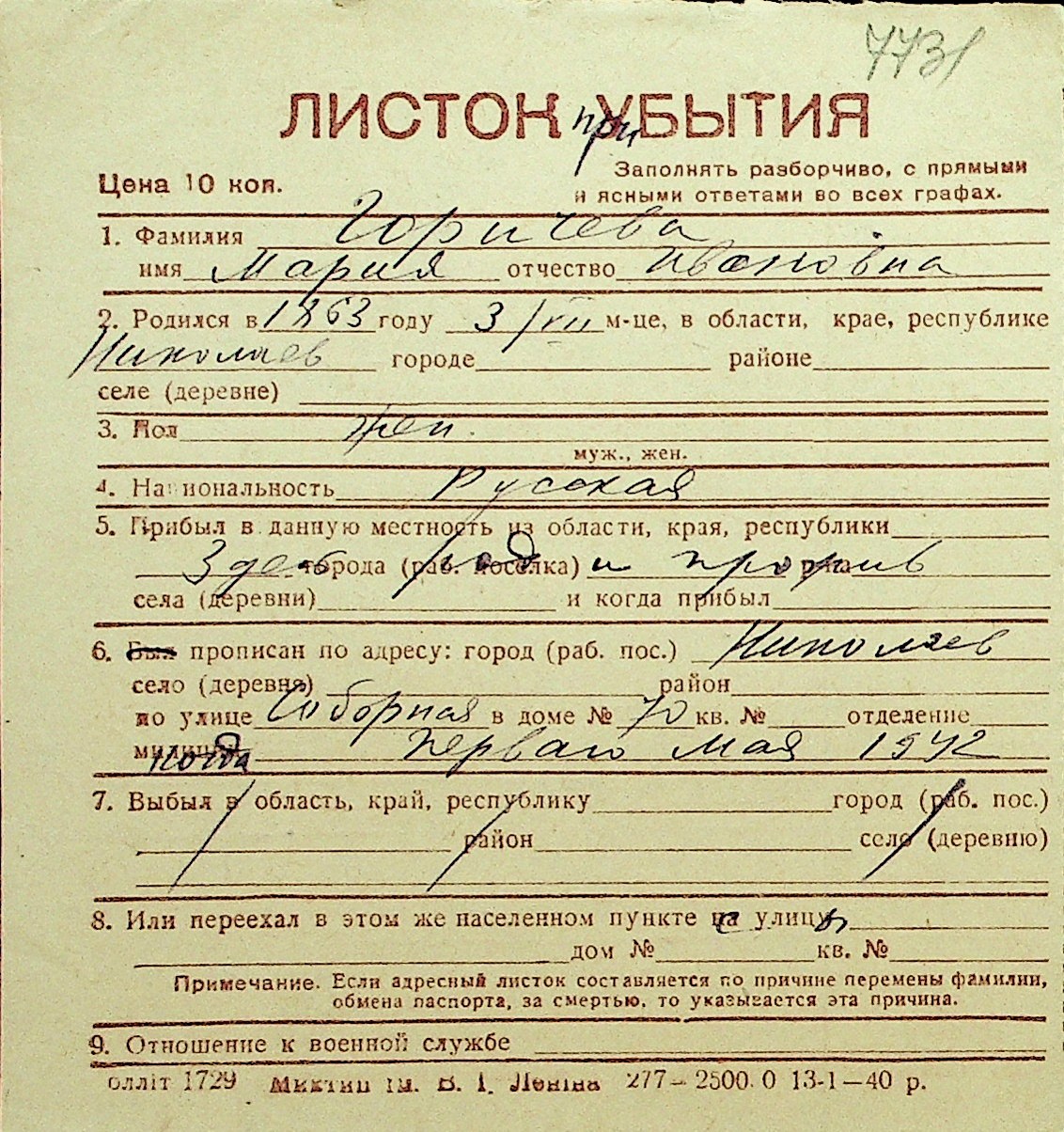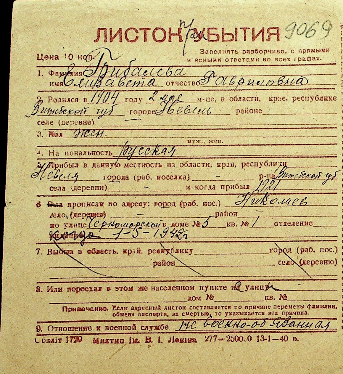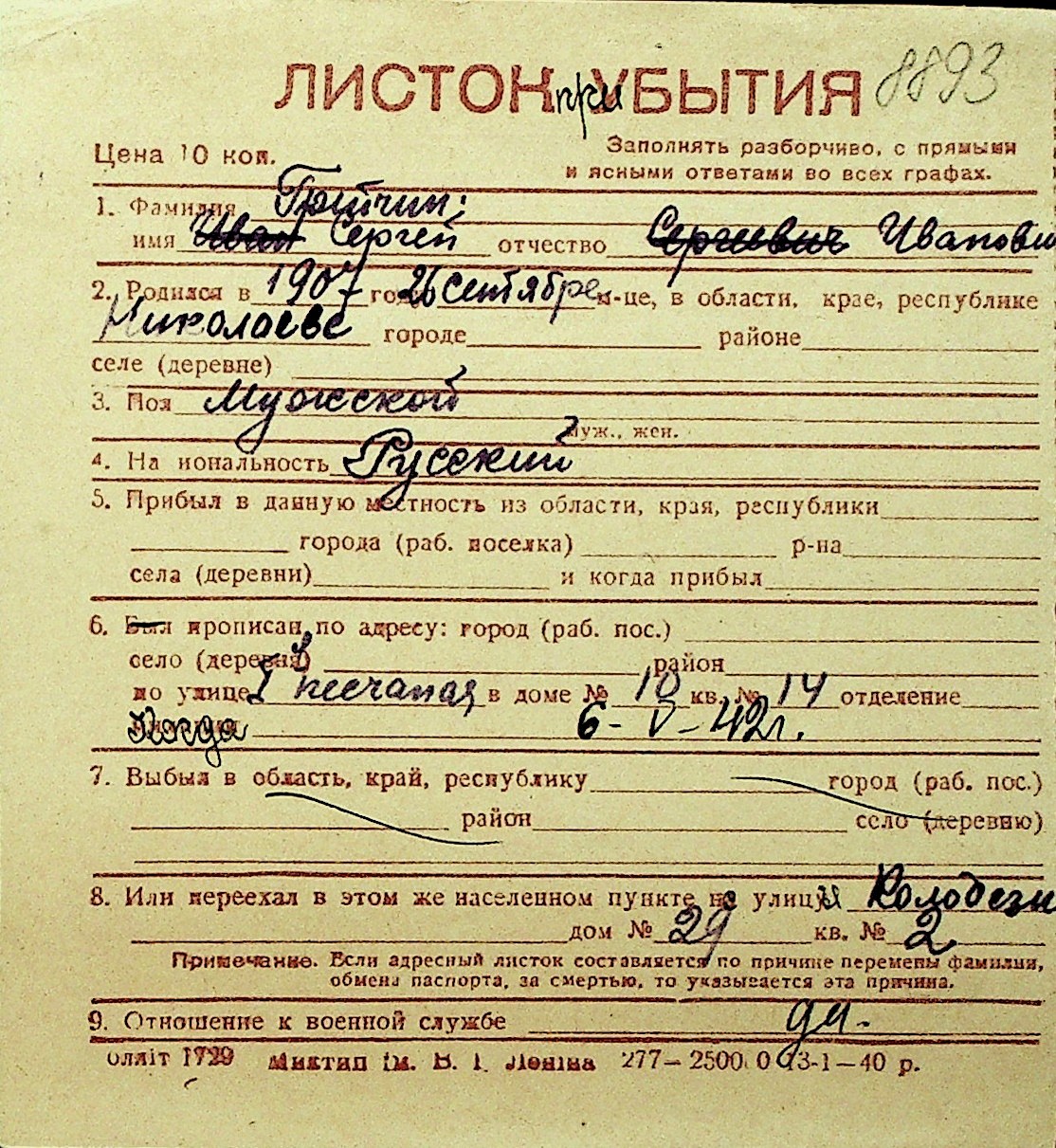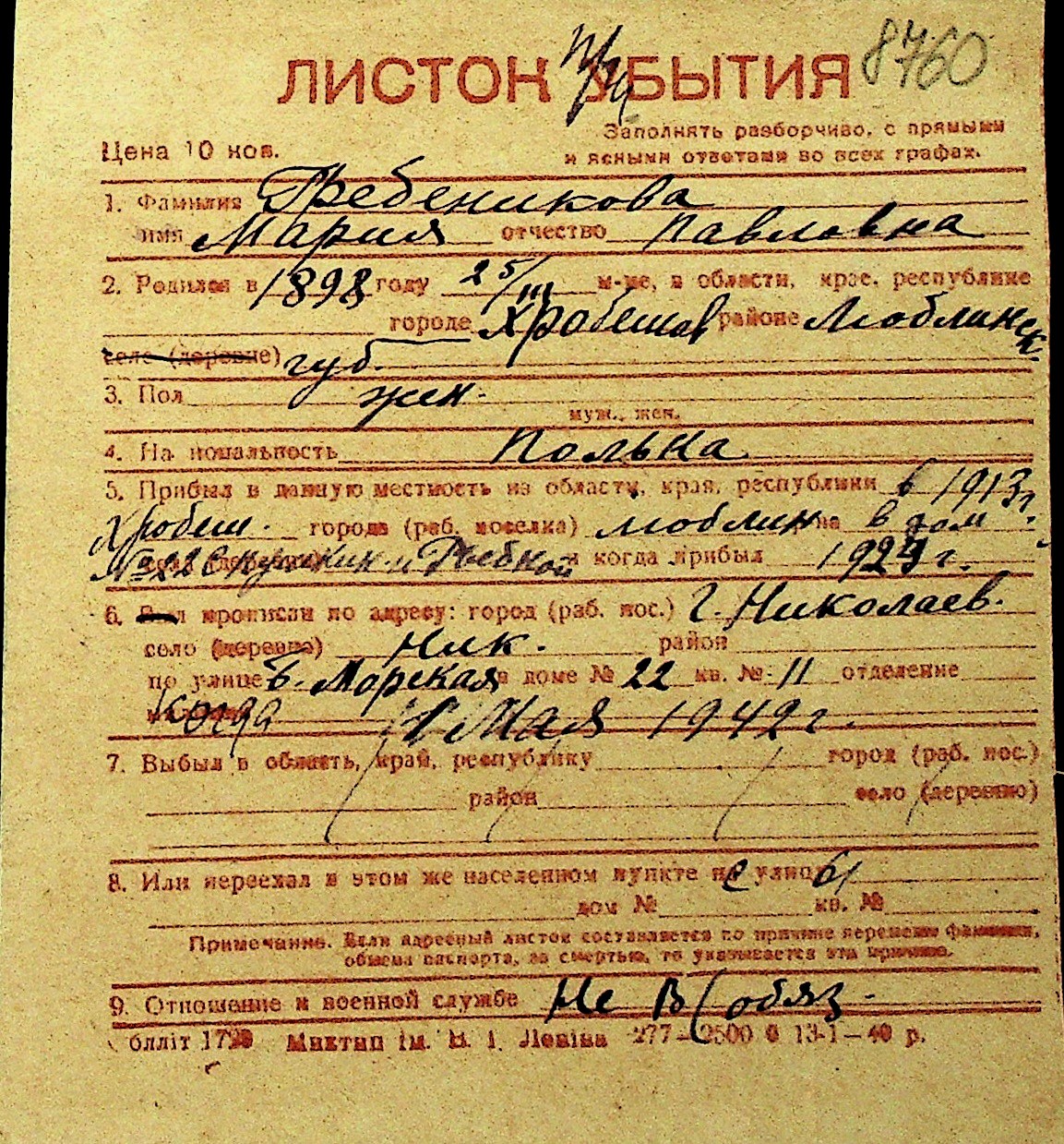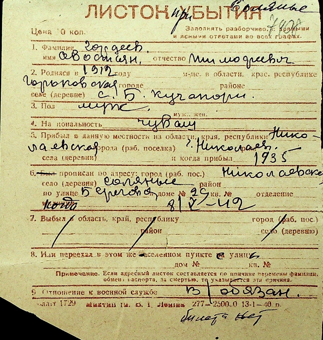• • Перелік карток до фонду № Н-1016