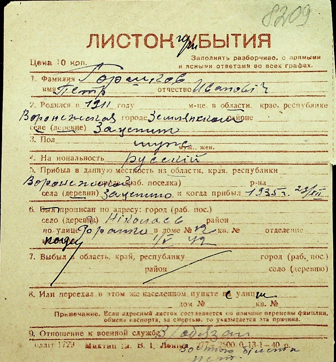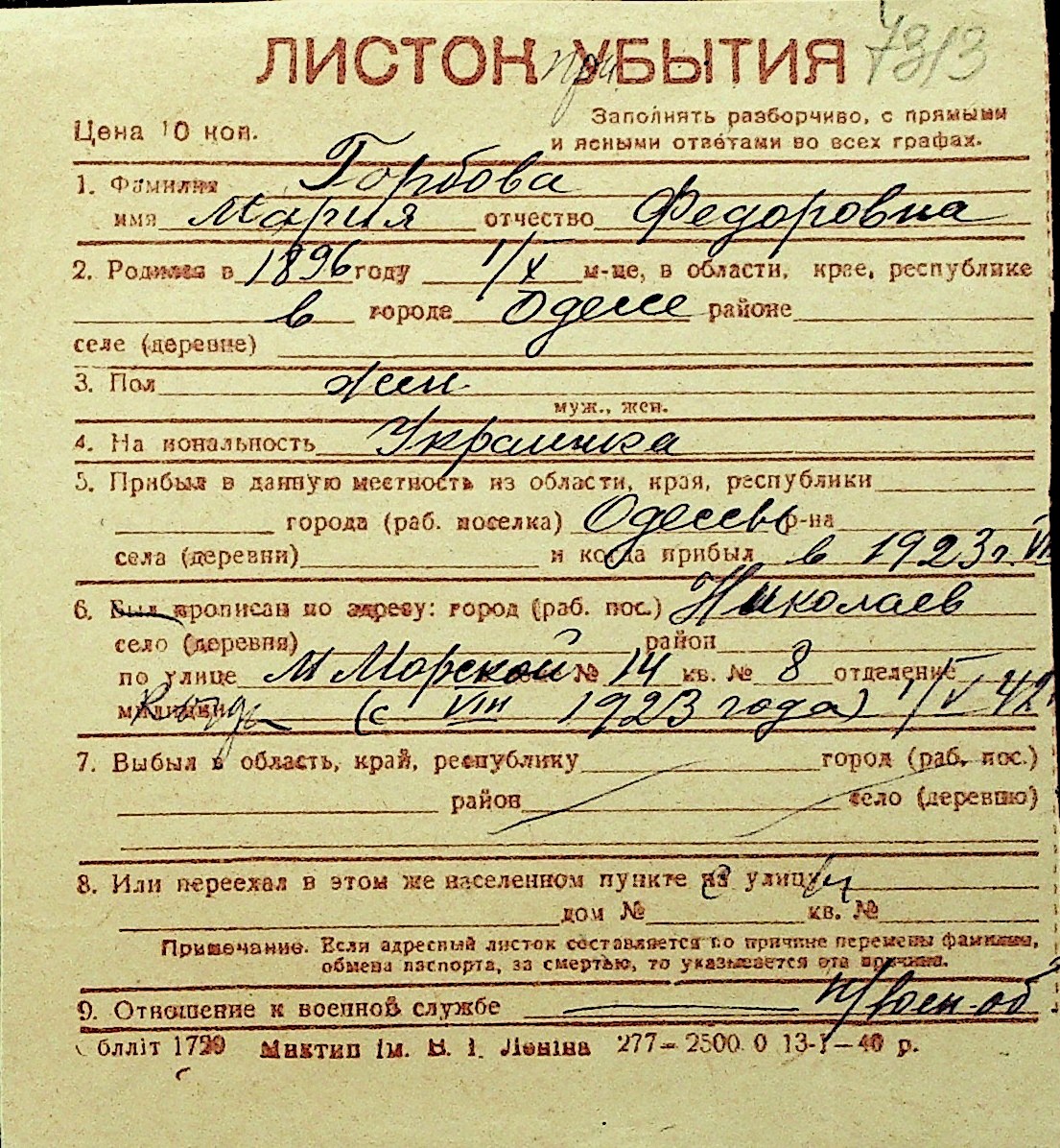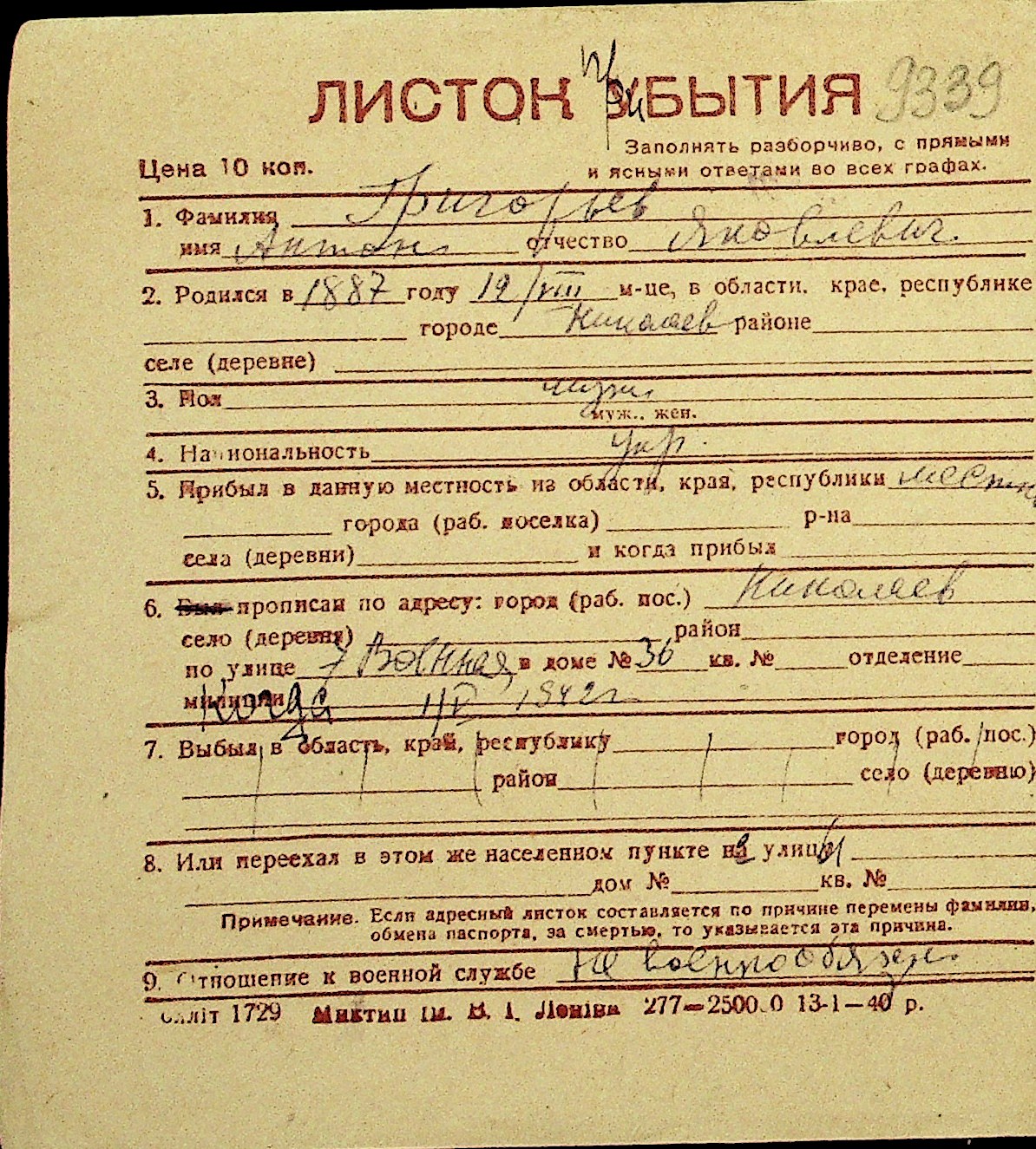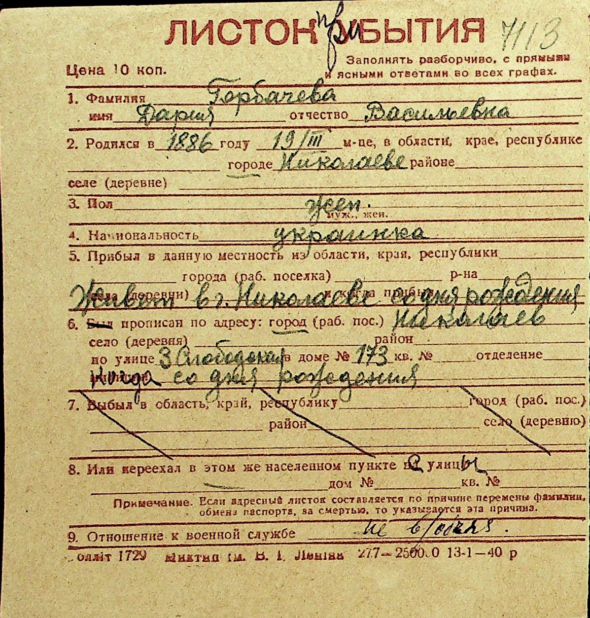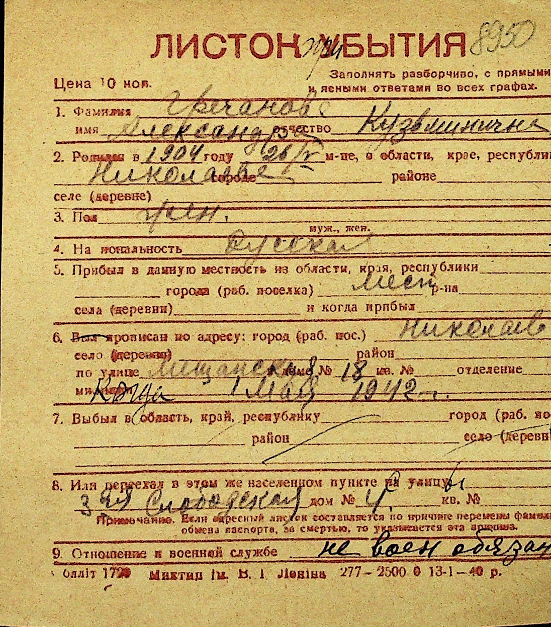 • • Перелік карток до фонду № Н-1016