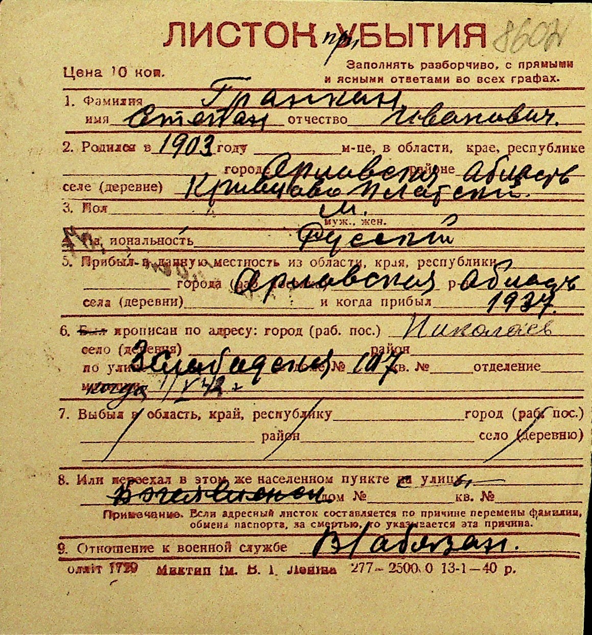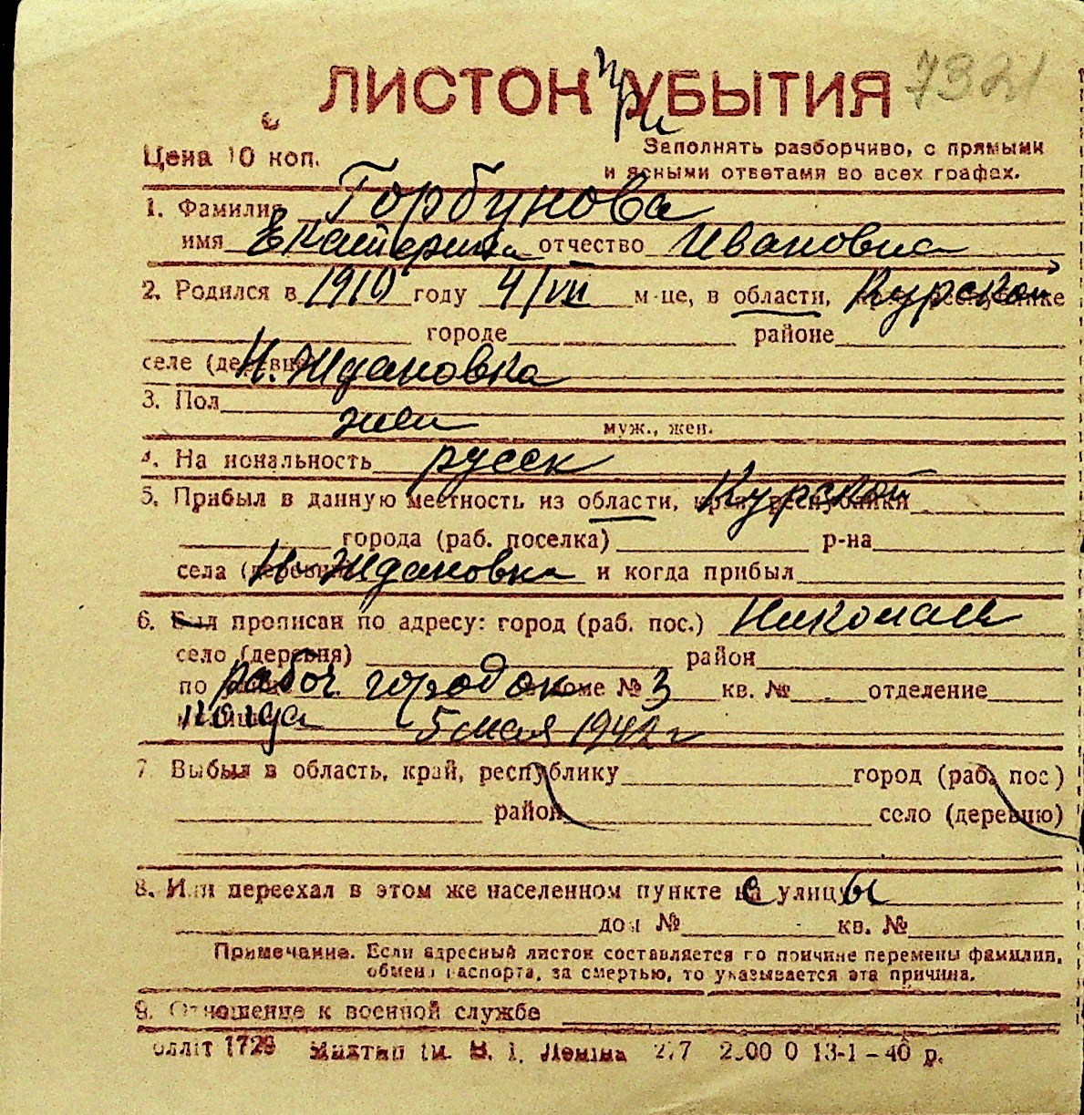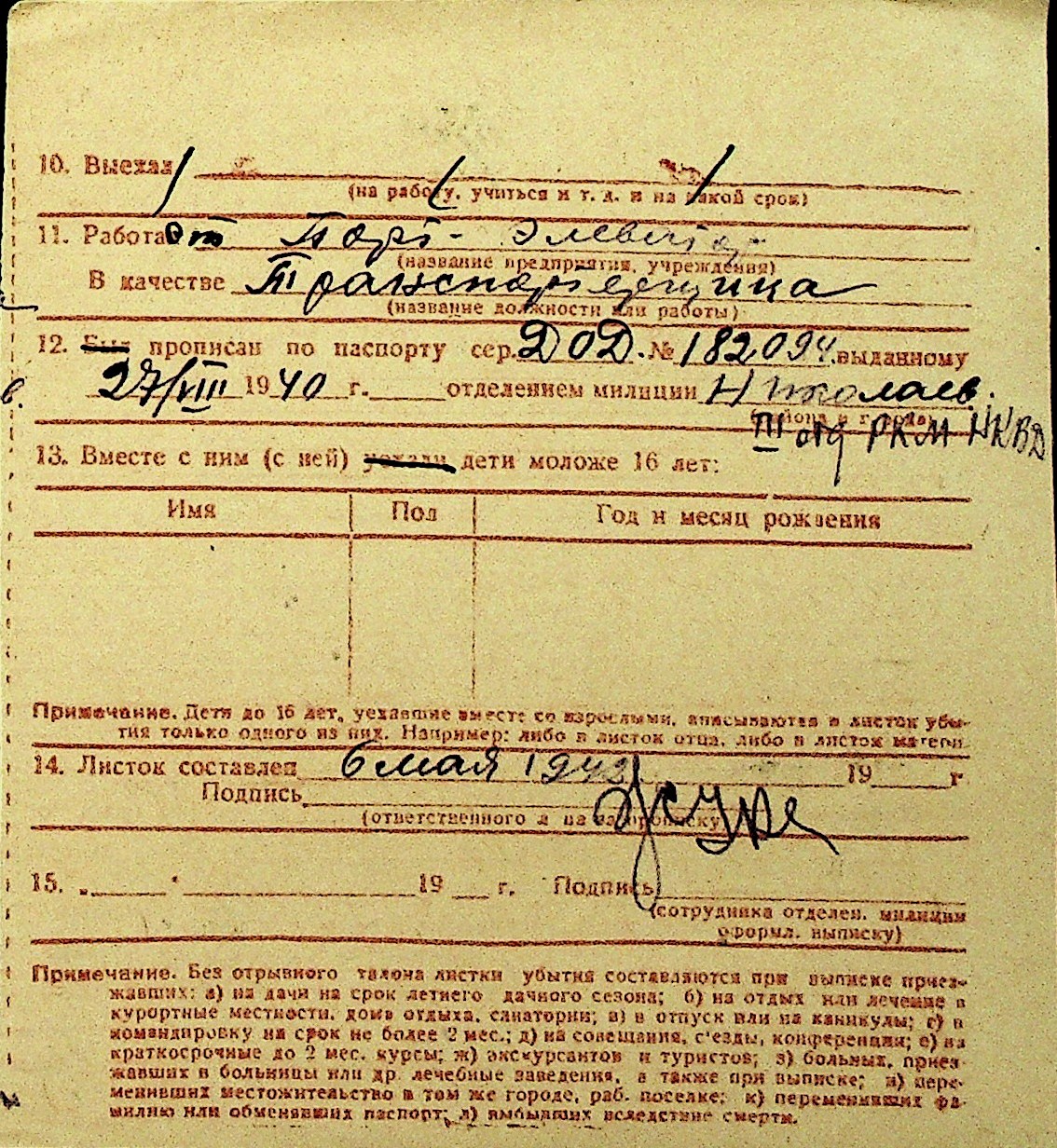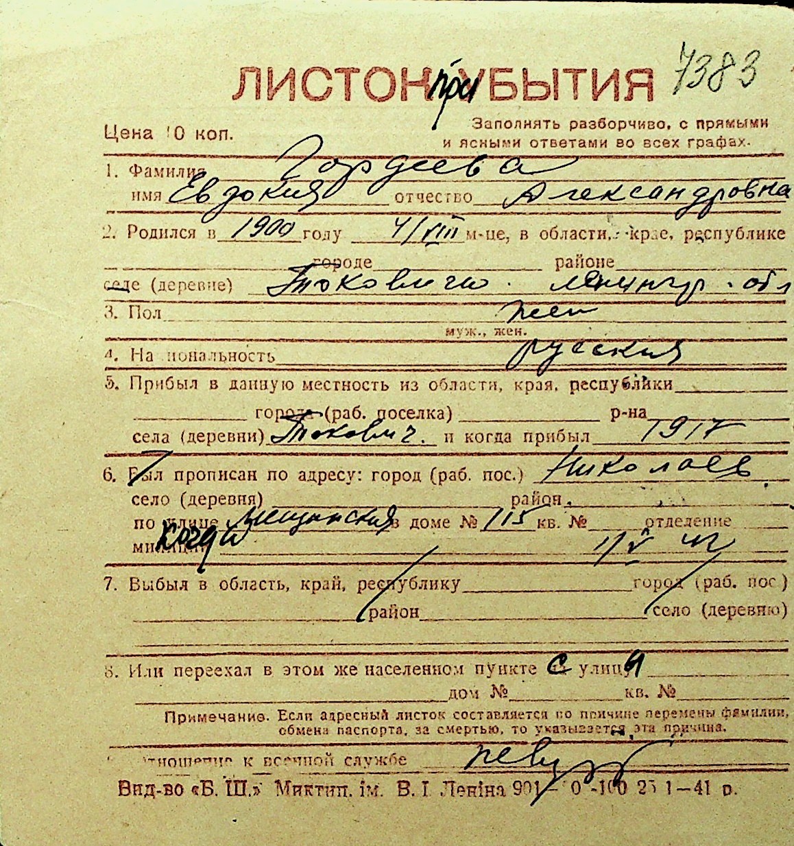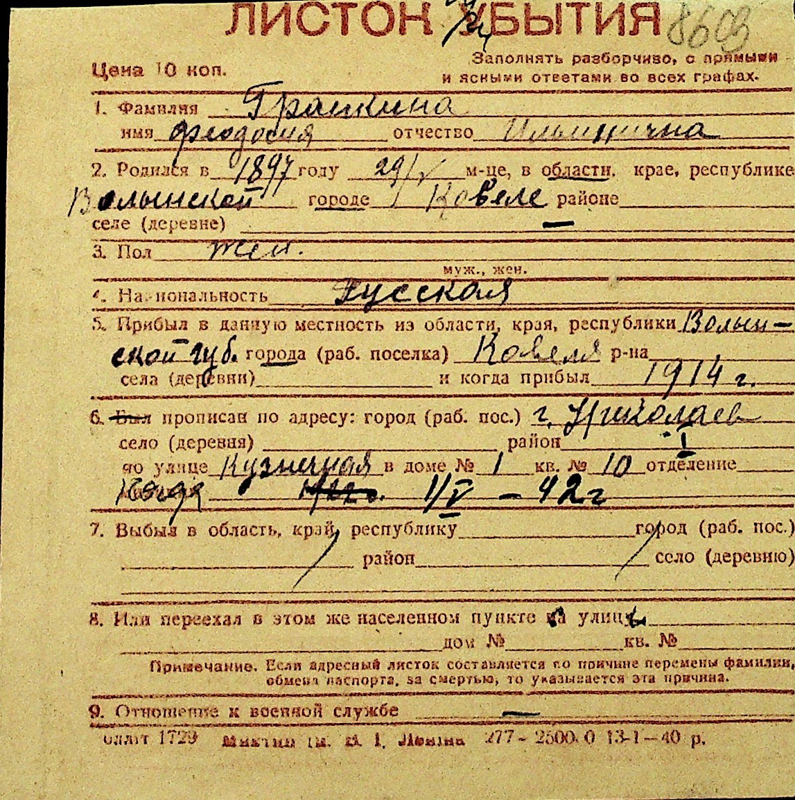 • • Перелік карток до фонду № Н-1016