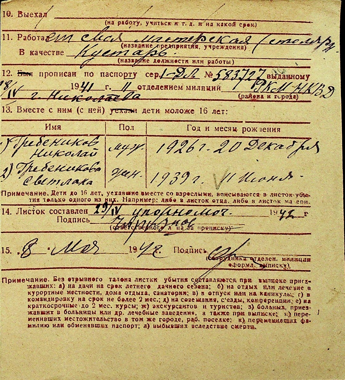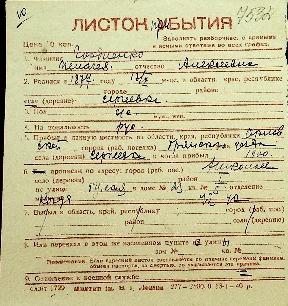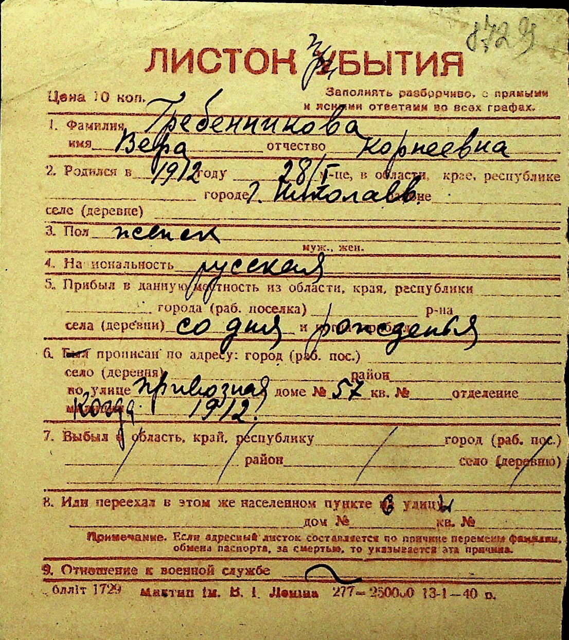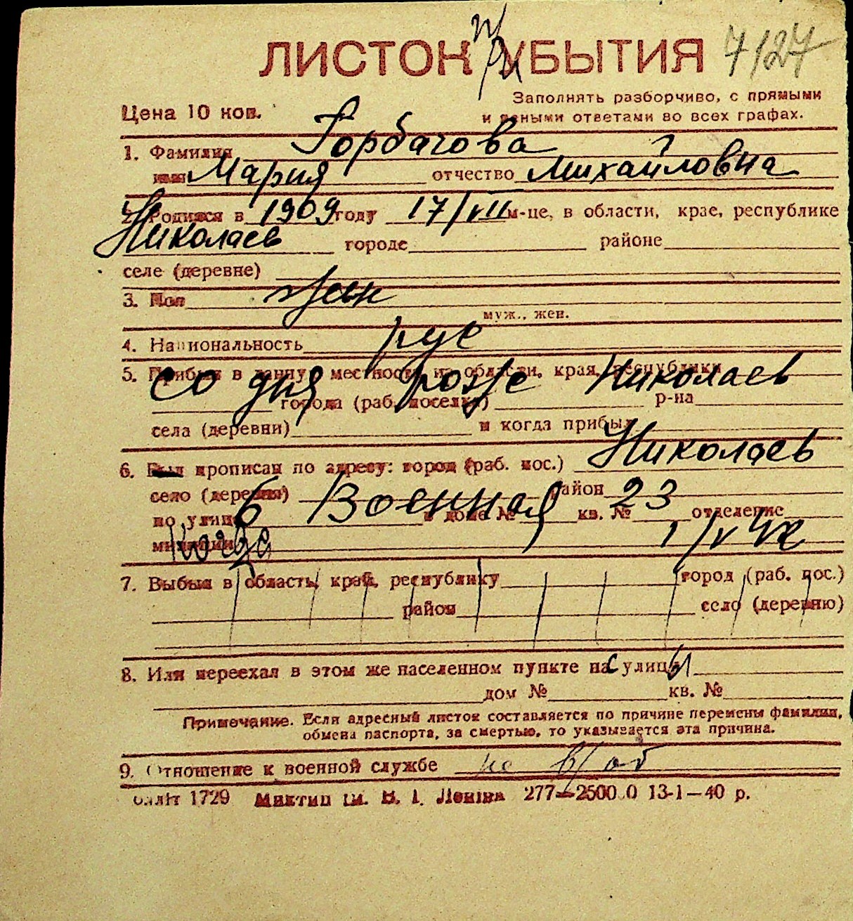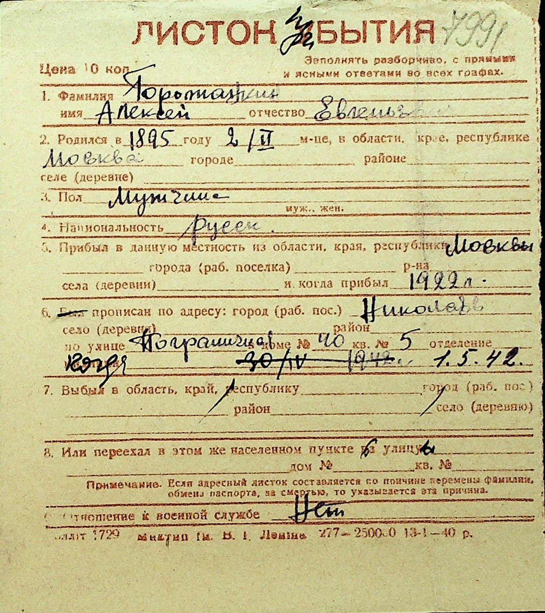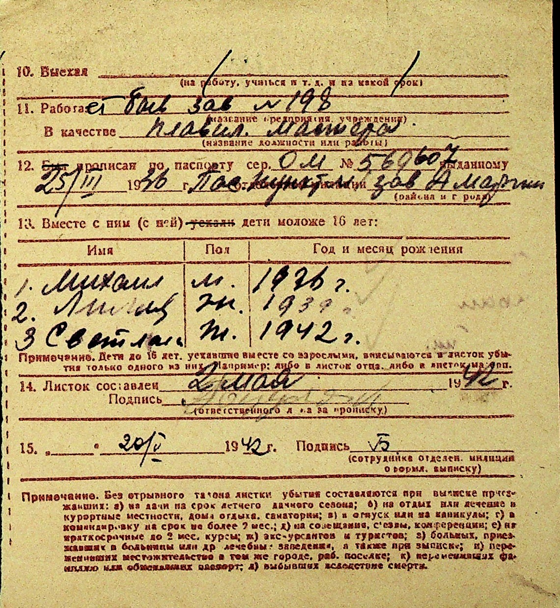 • • Перелік карток до фонду № Н-1016