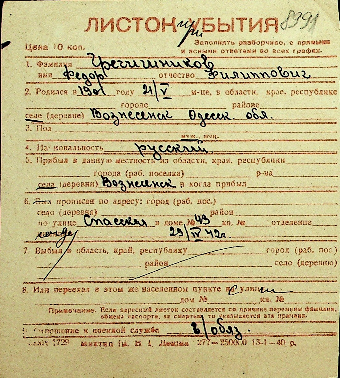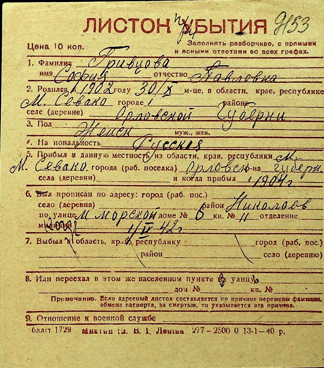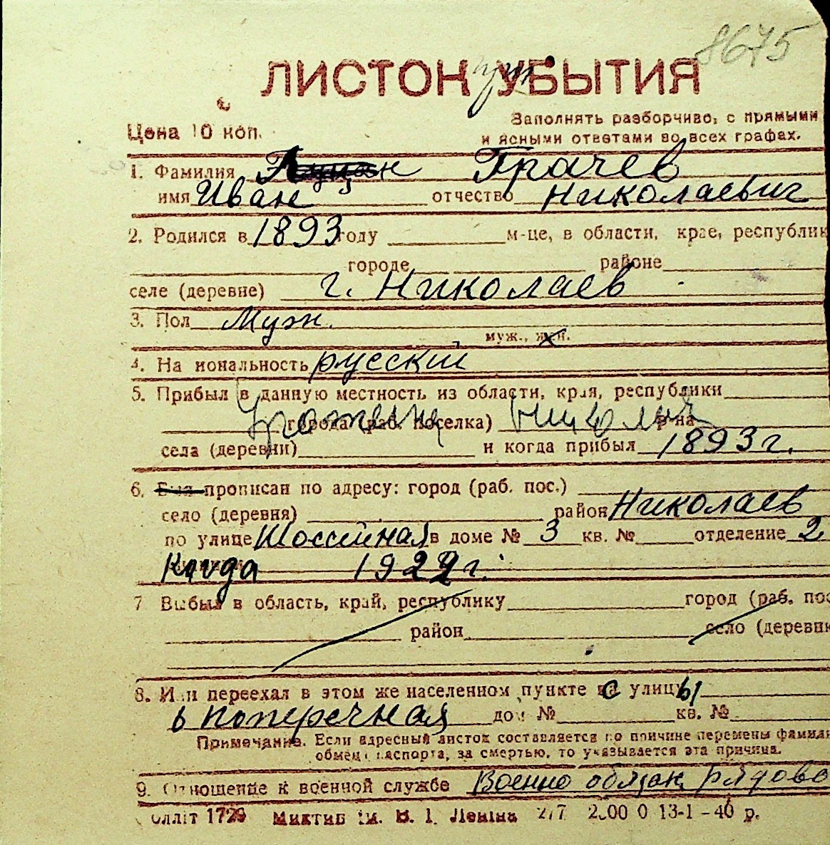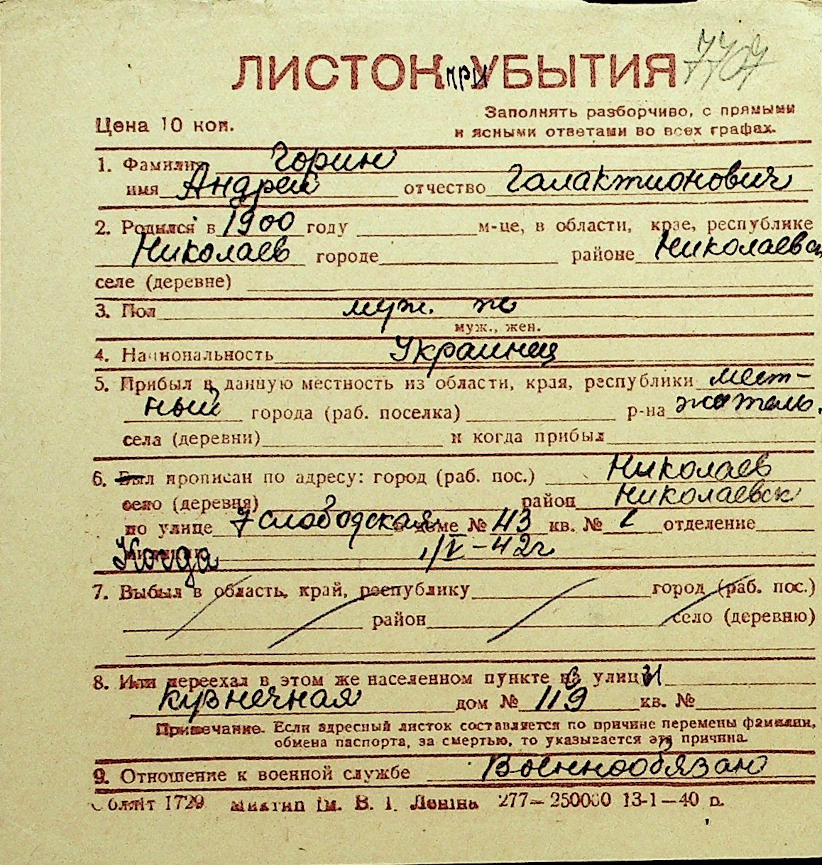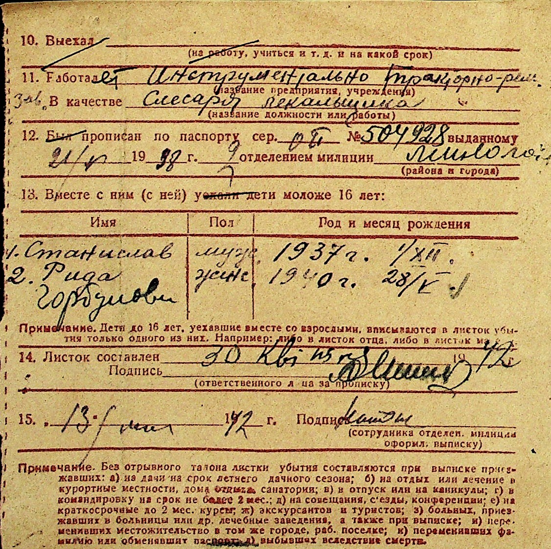 • • Перелік карток до фонду № Н-1016