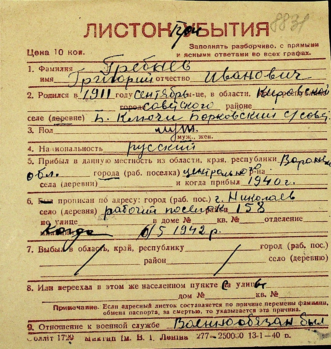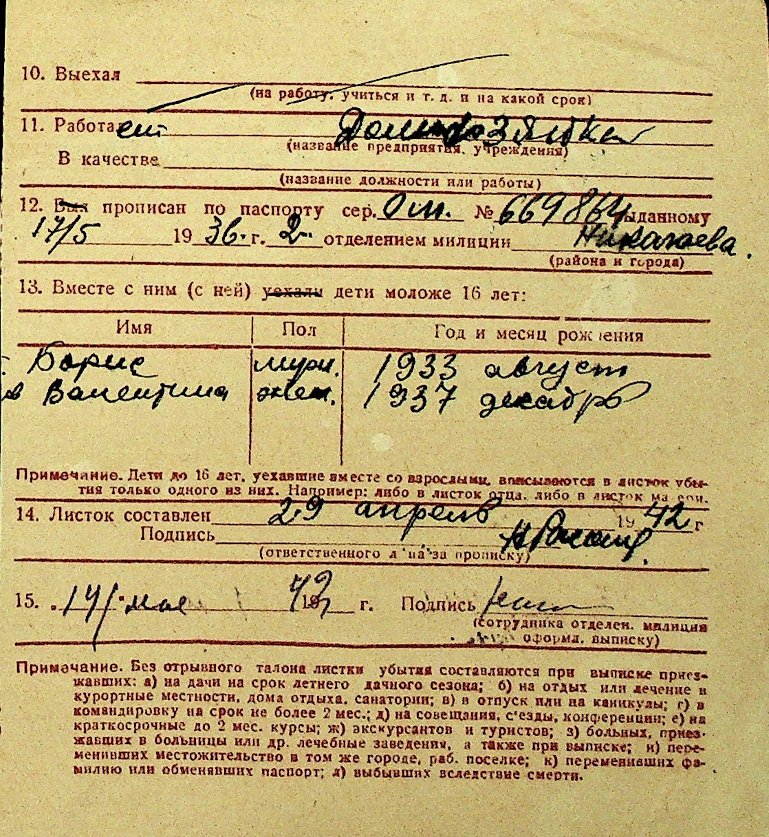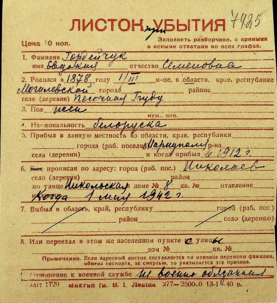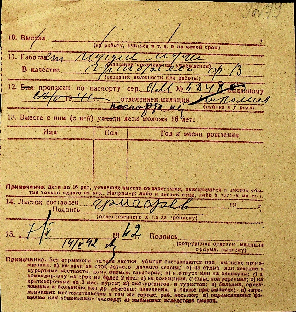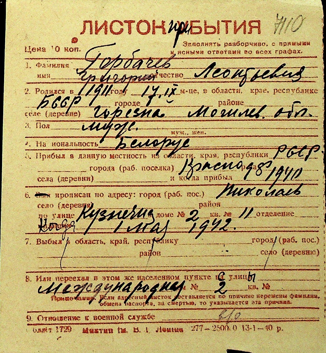 • • Перелік карток до фонду № Н-1016