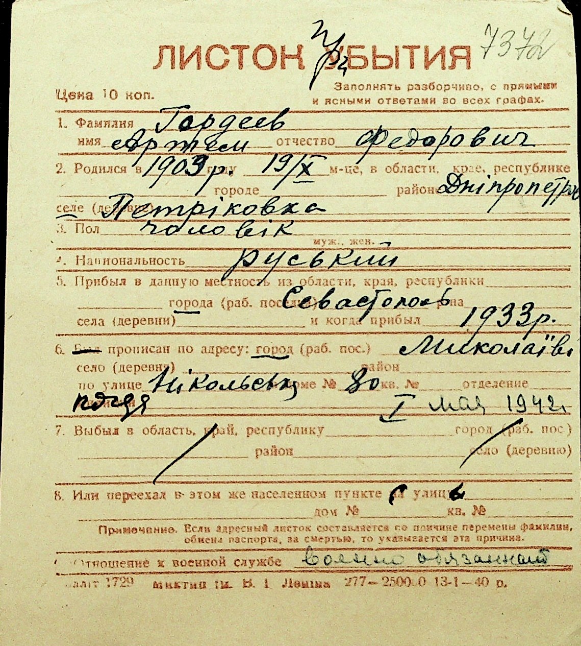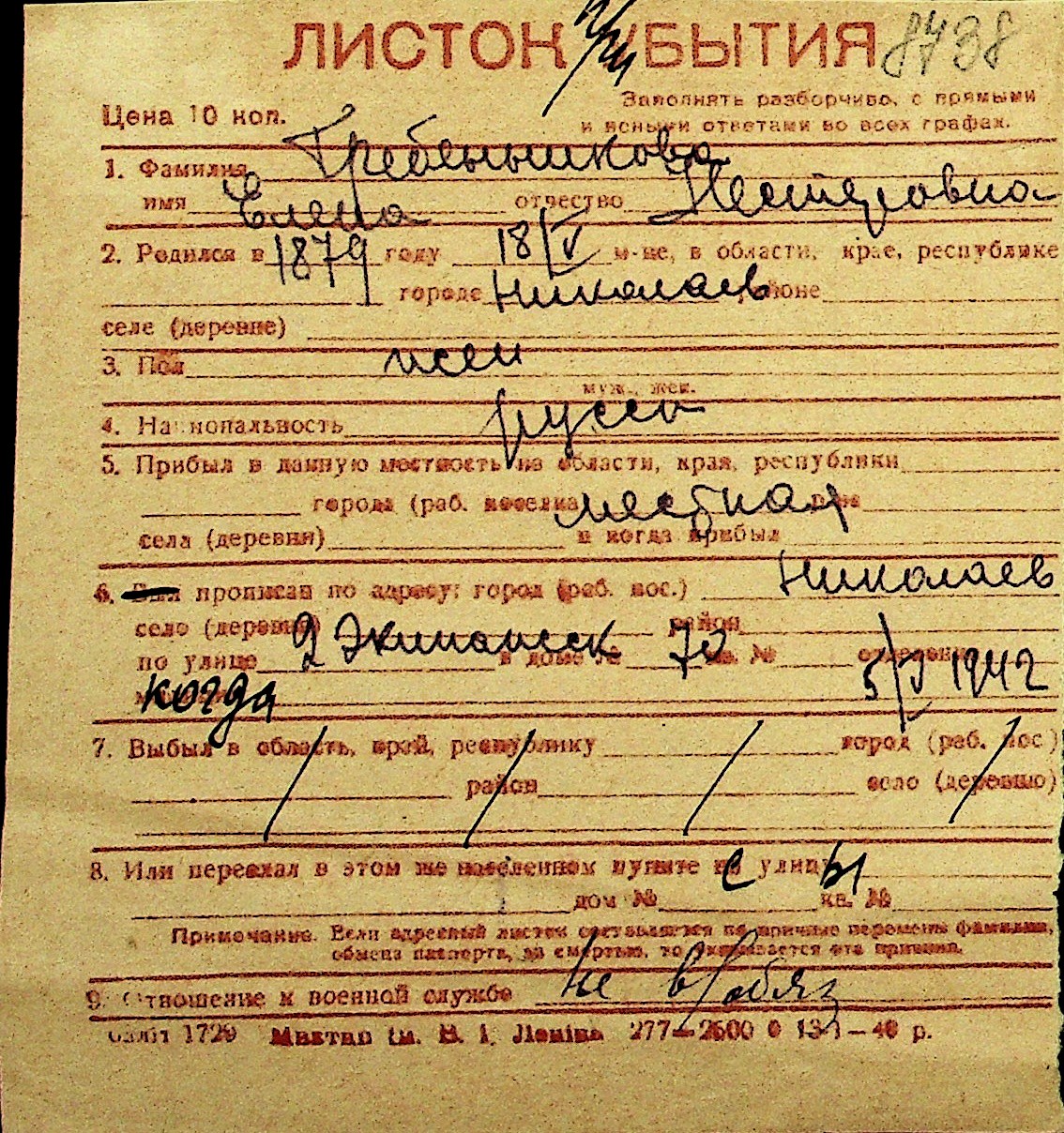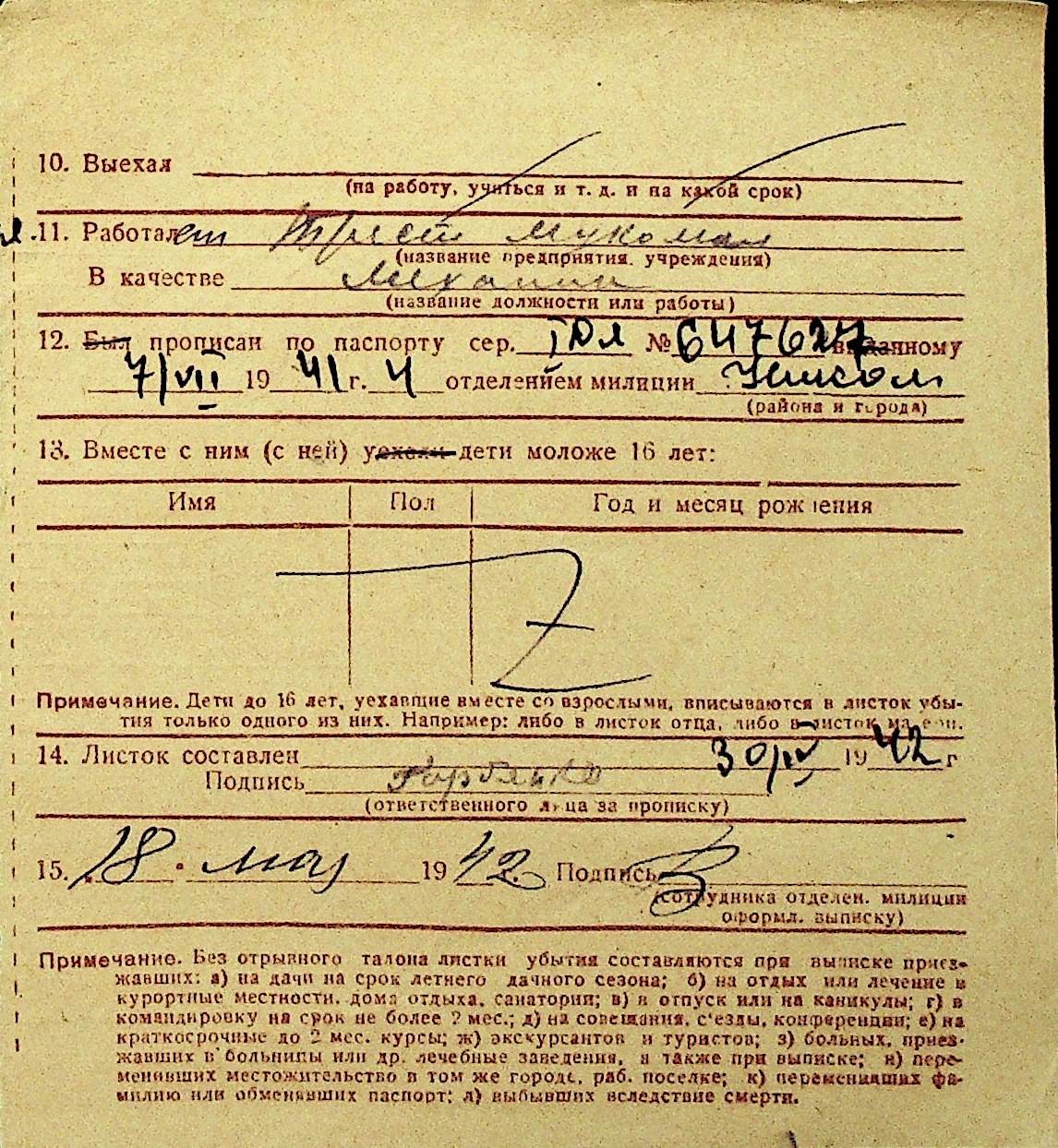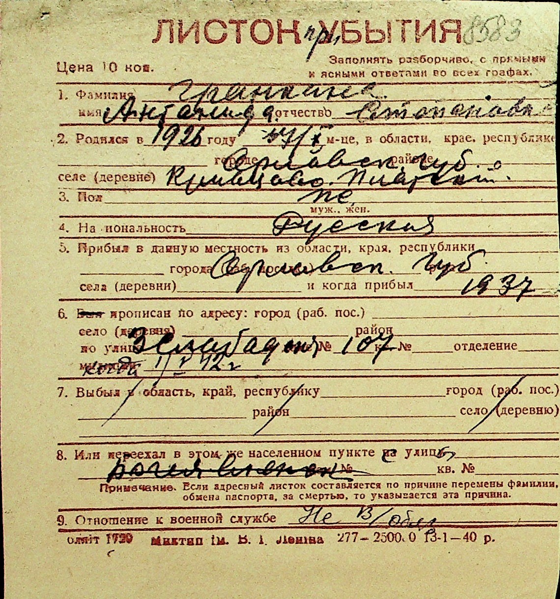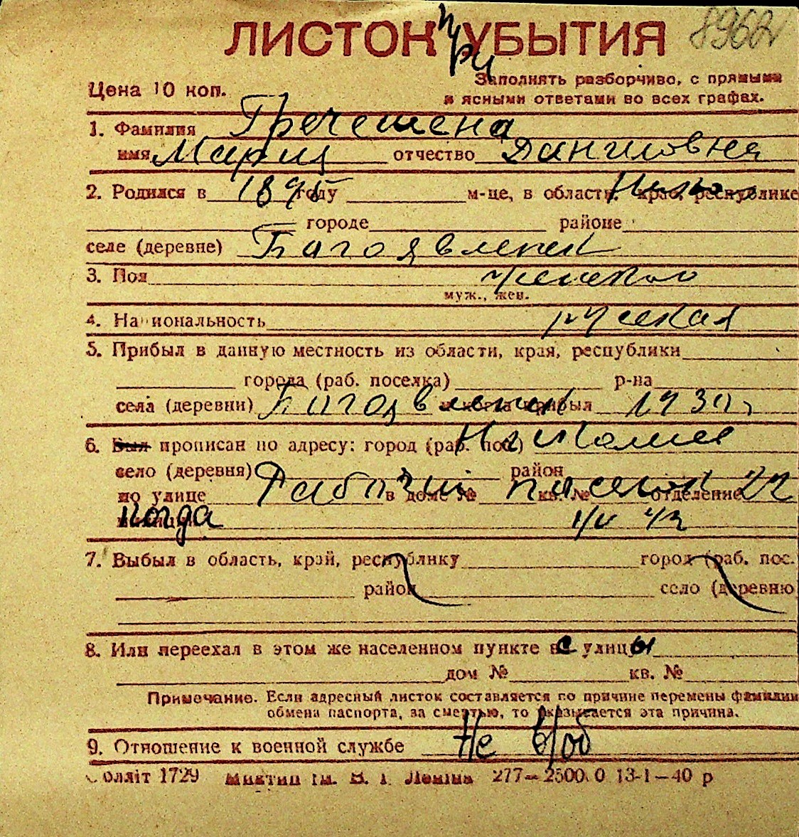 • • Перелік карток до фонду № Н-1016