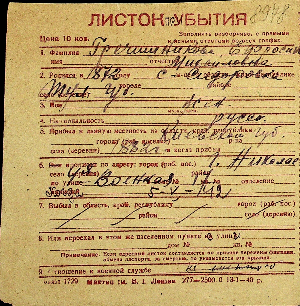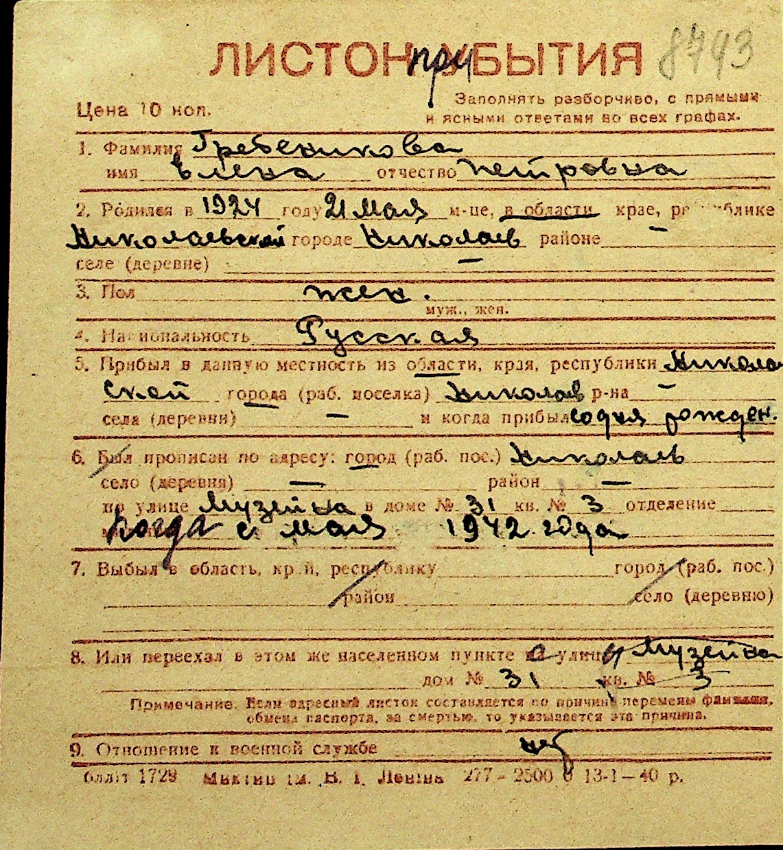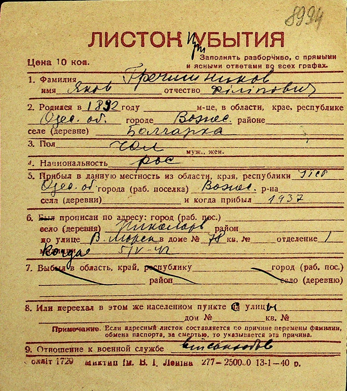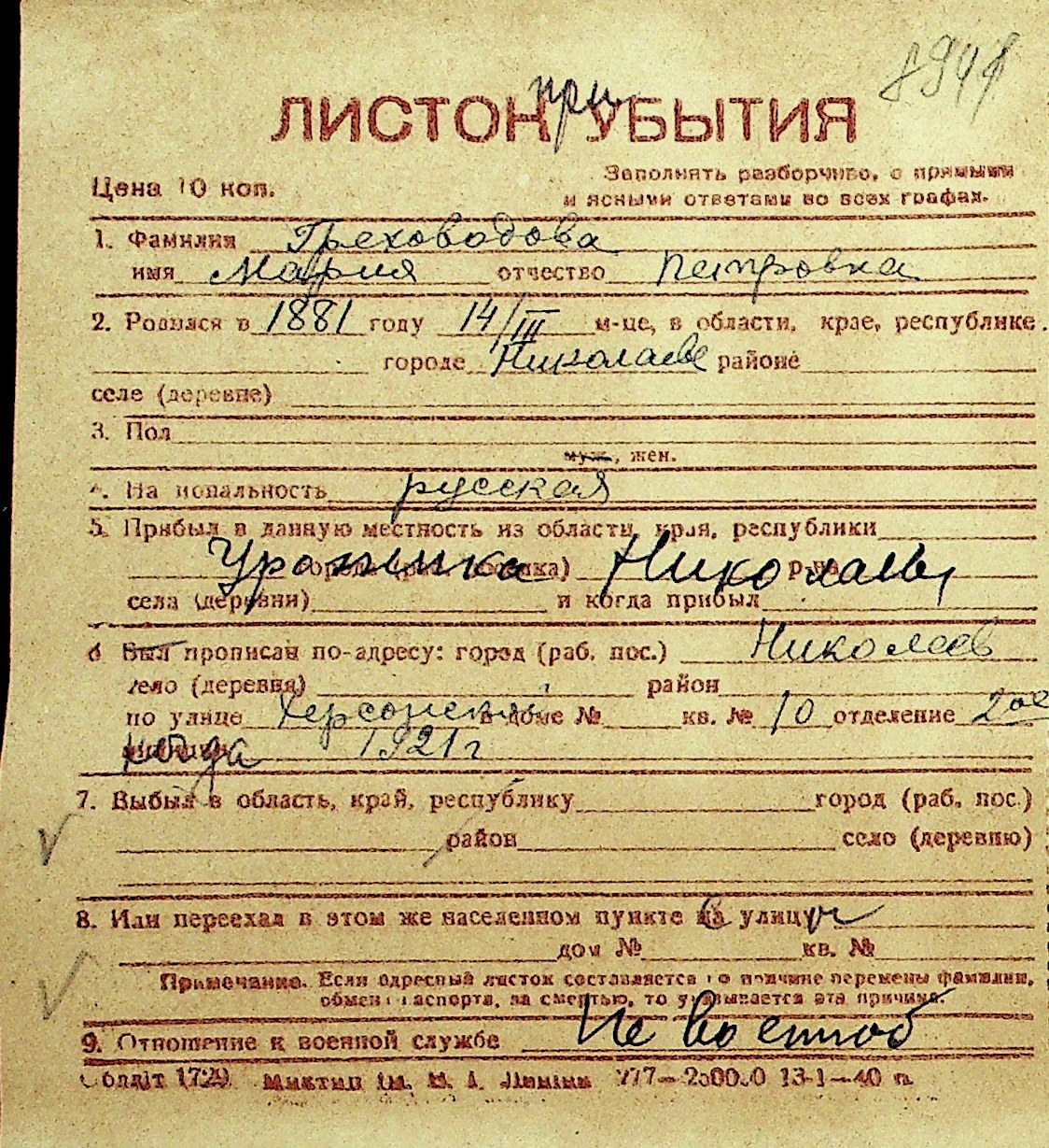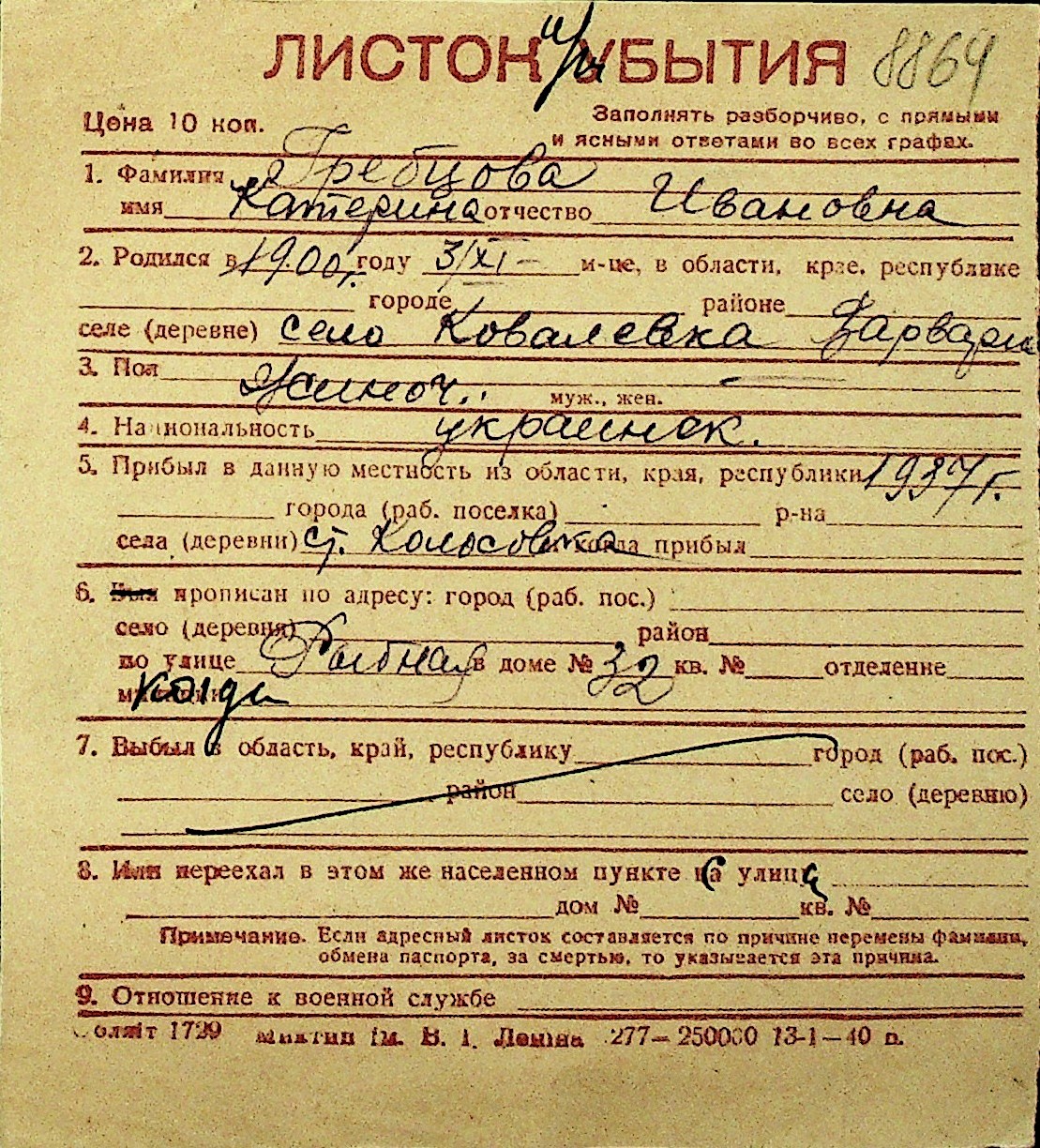 • • Перелік карток до фонду № Н-1016
