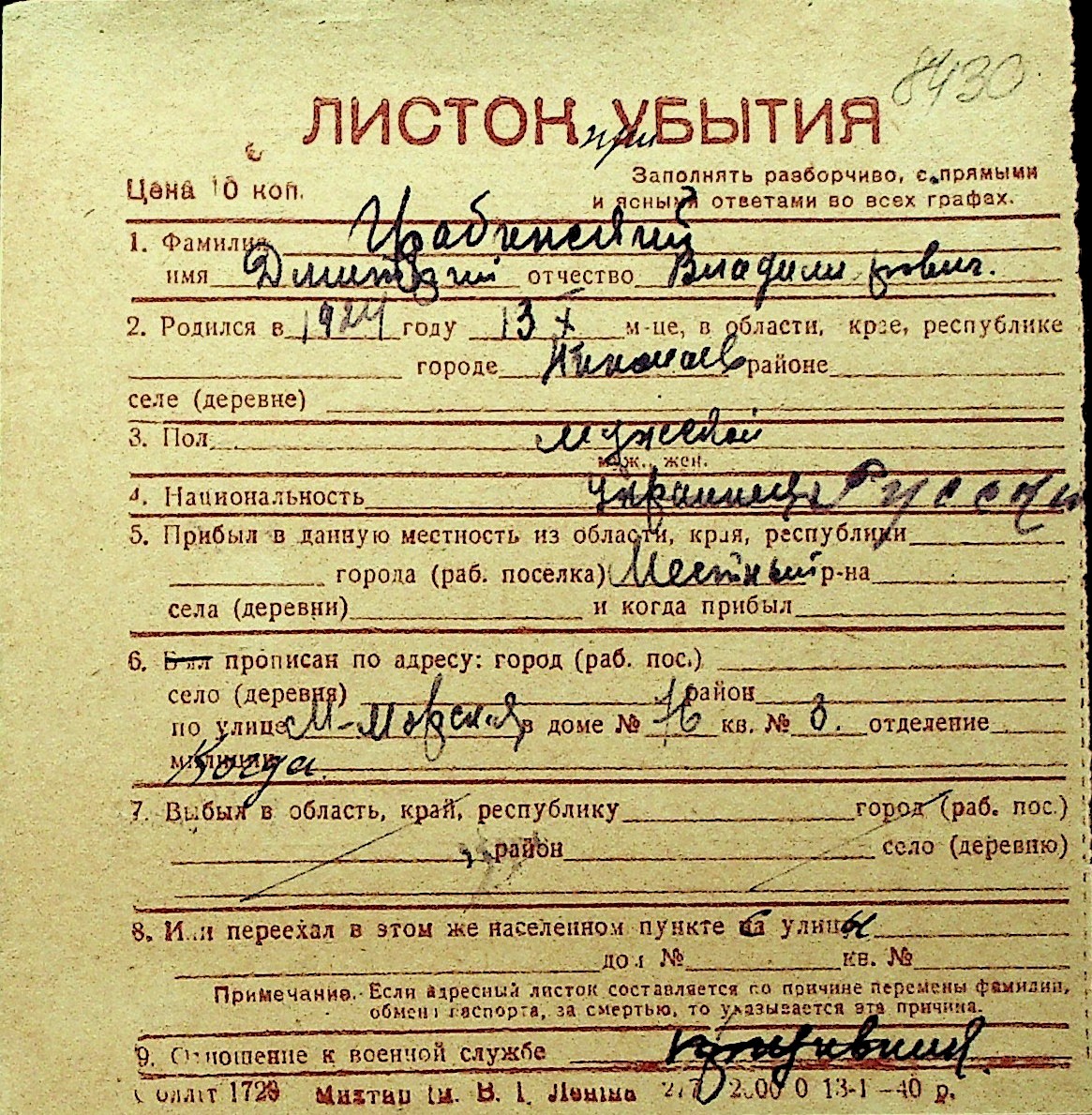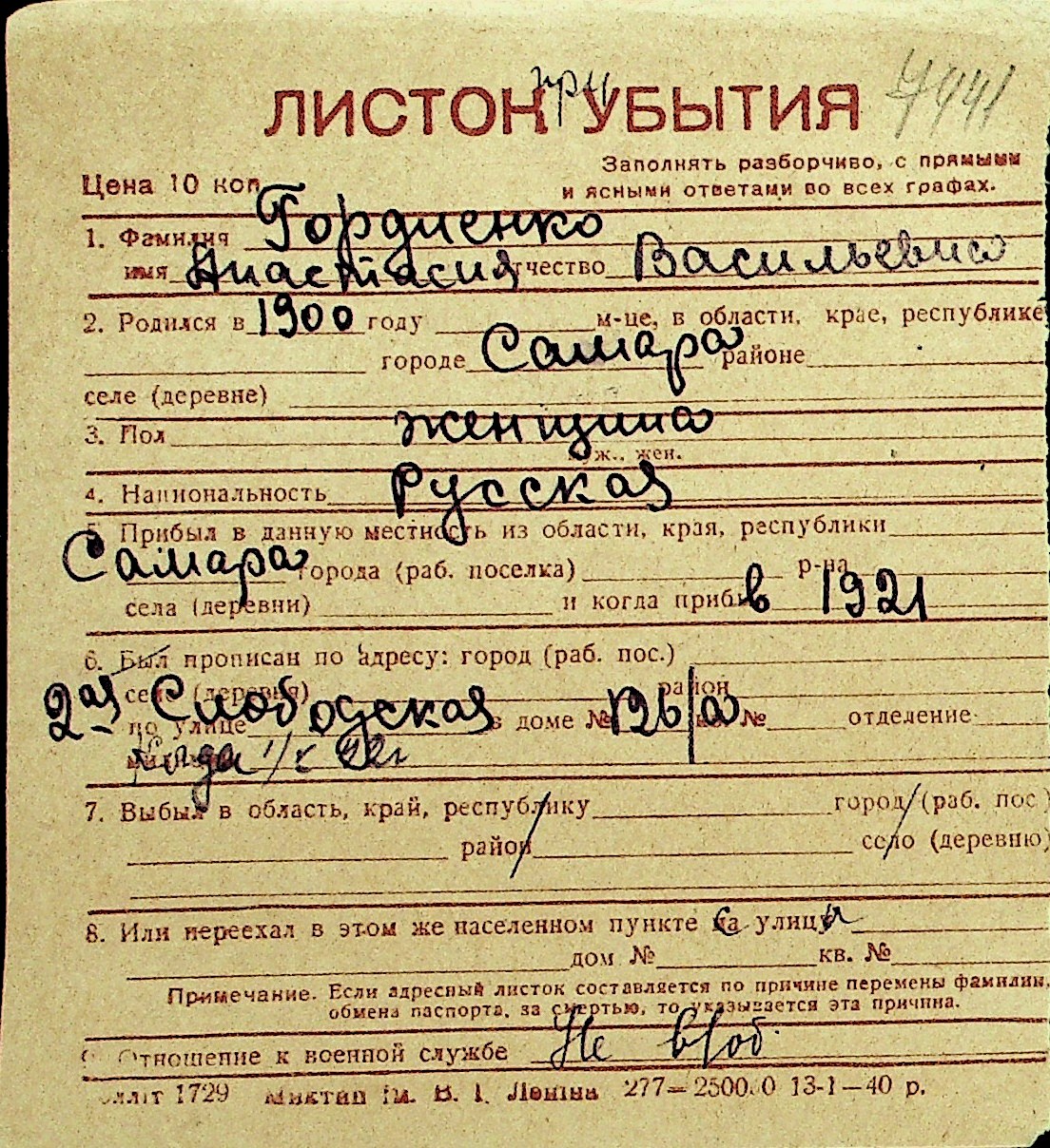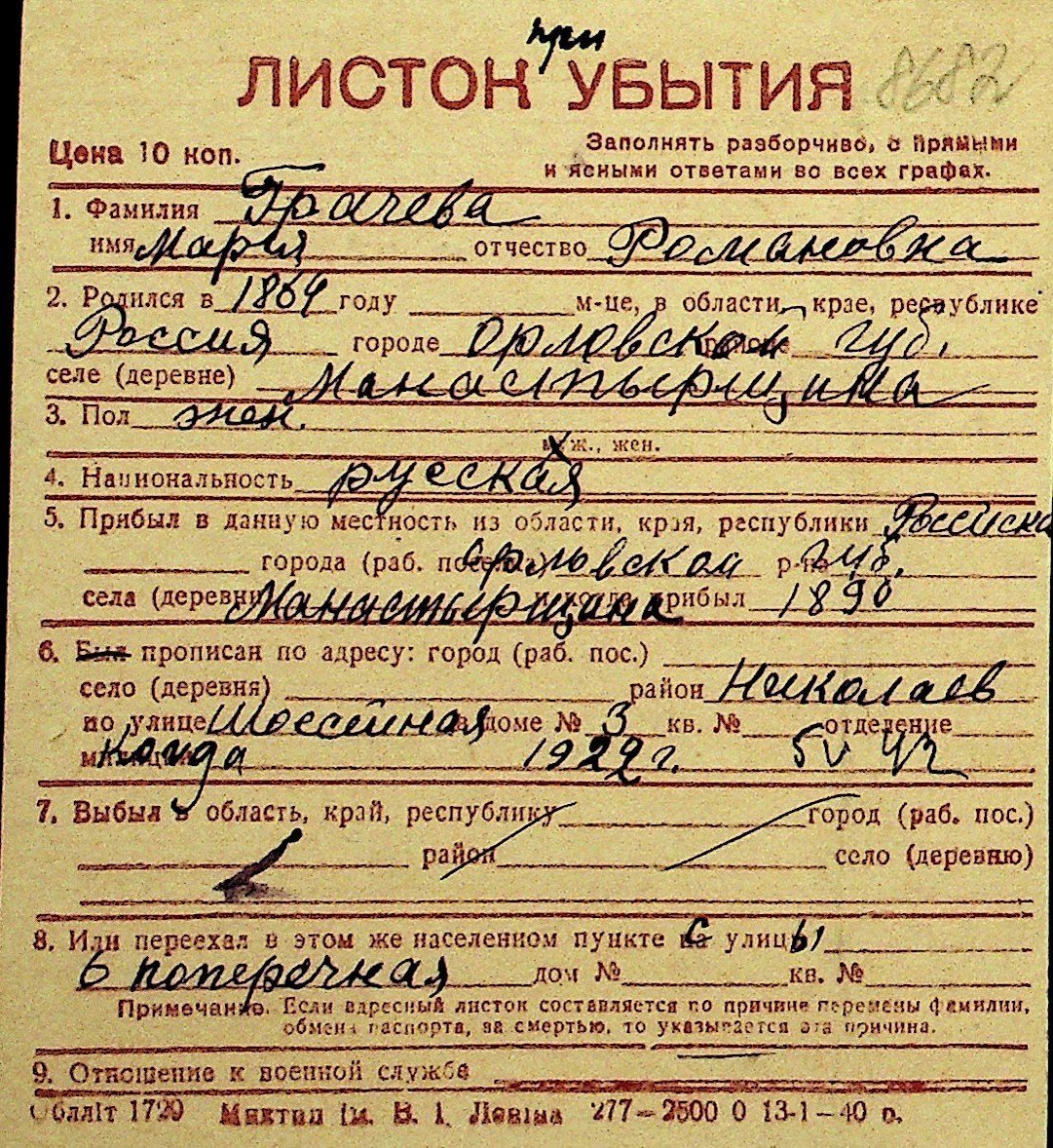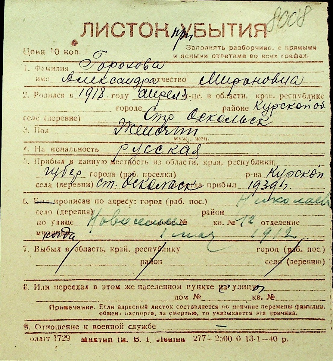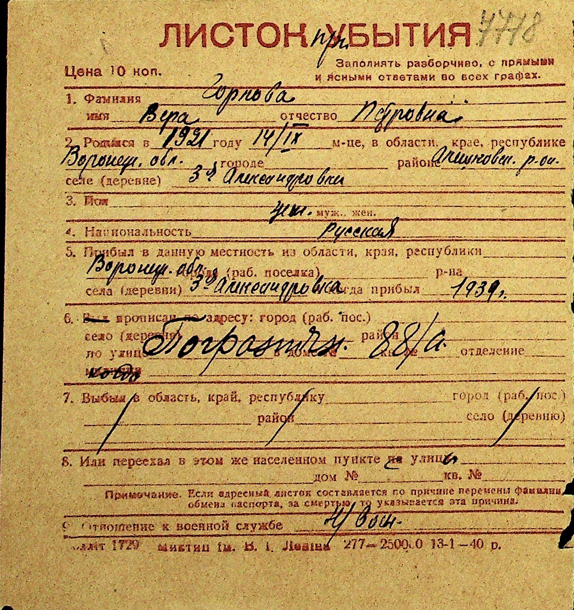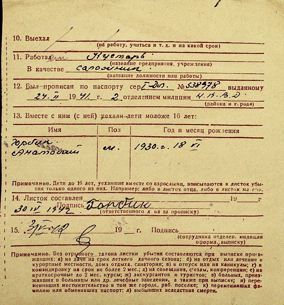 • • Перелік карток до фонду № Н-1016