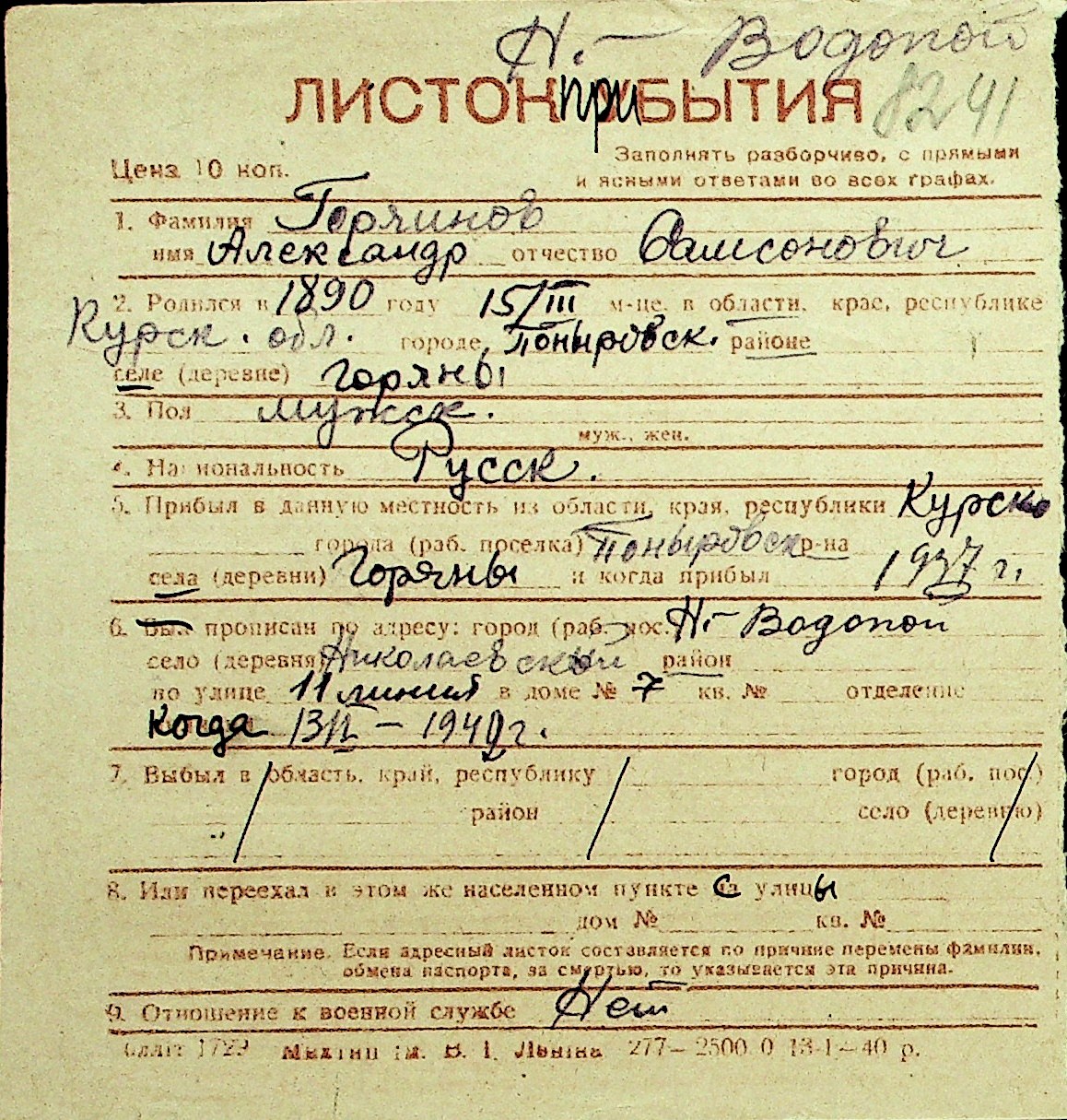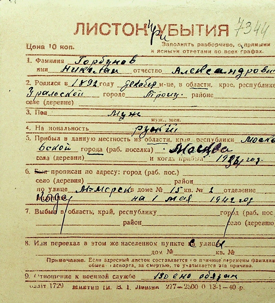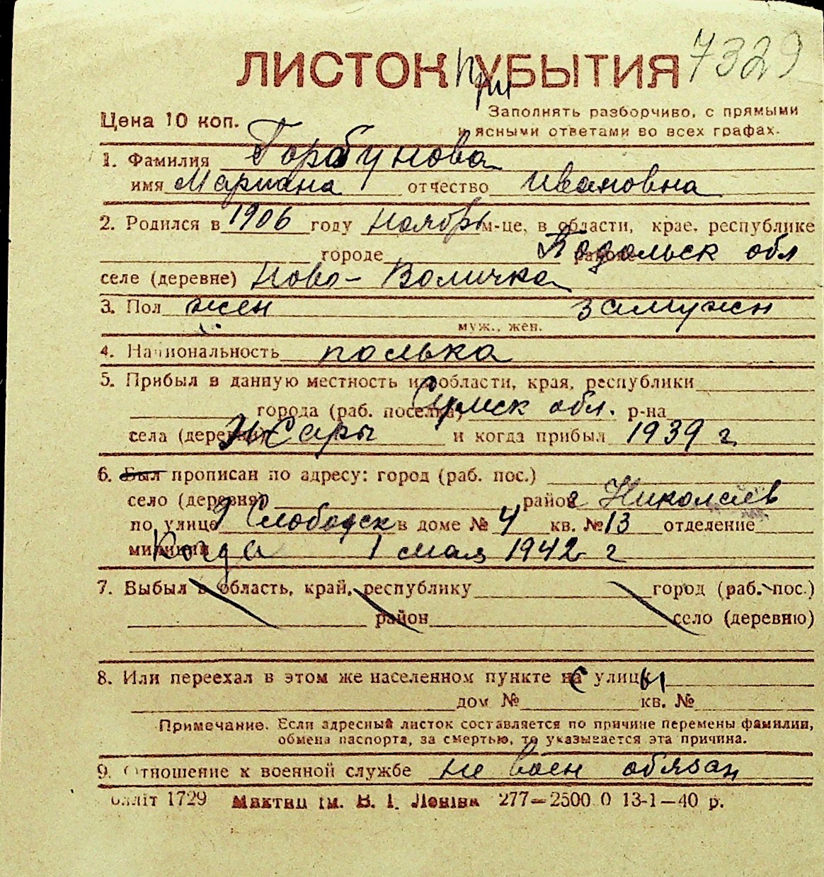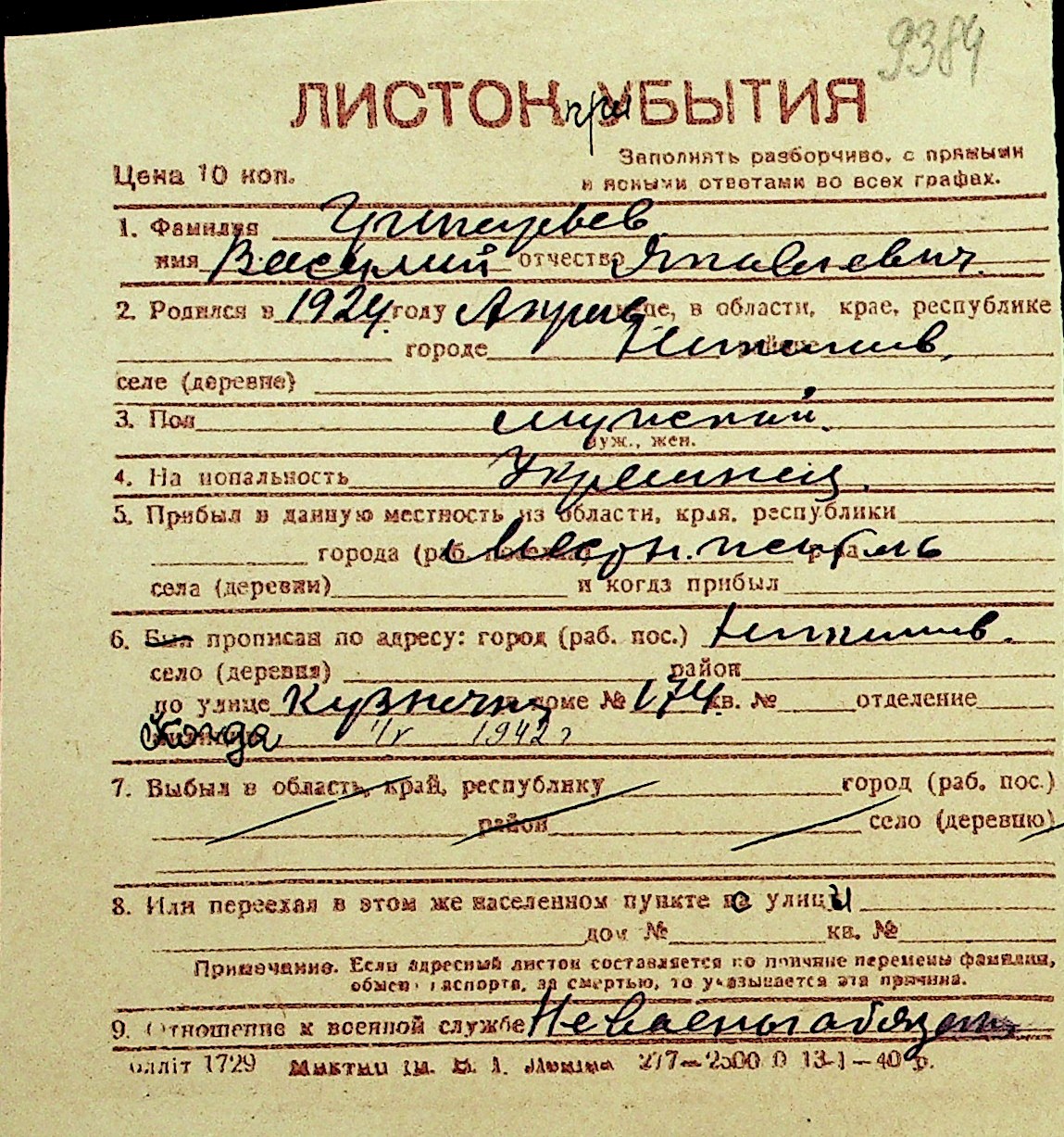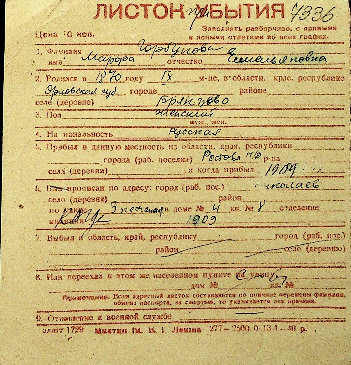 • • Перелік карток до фонду № Н-1016
