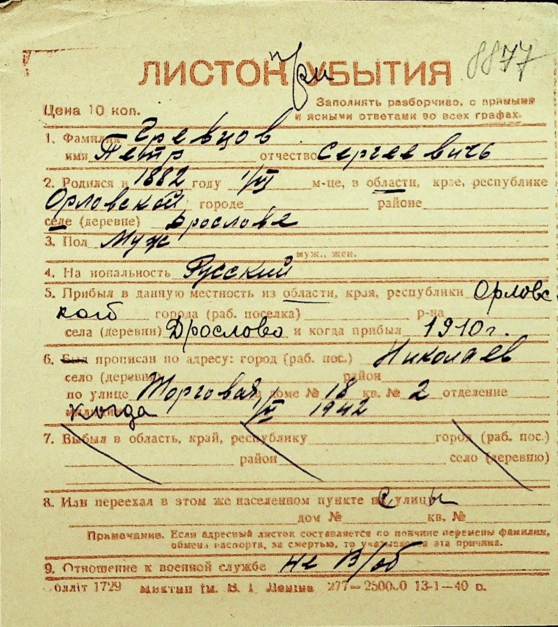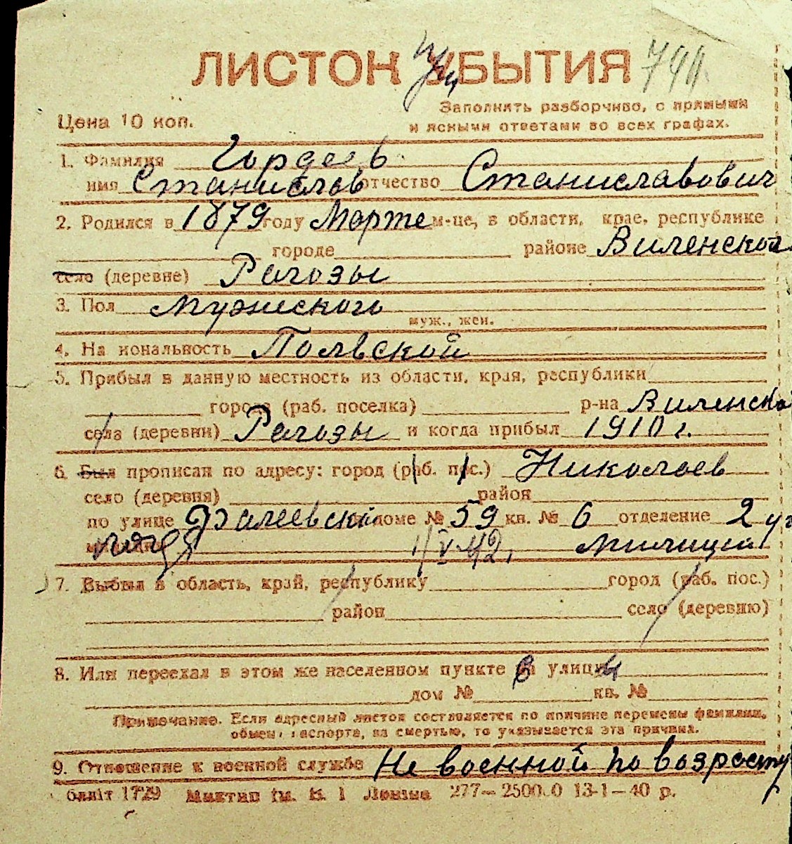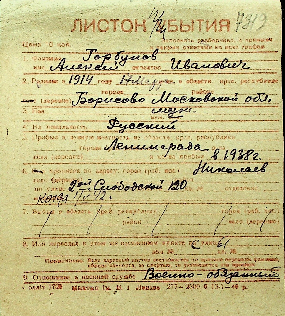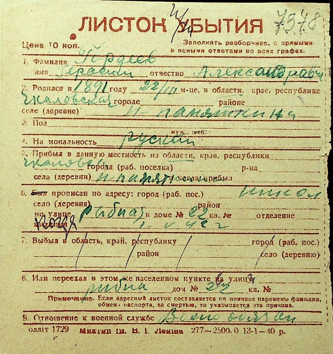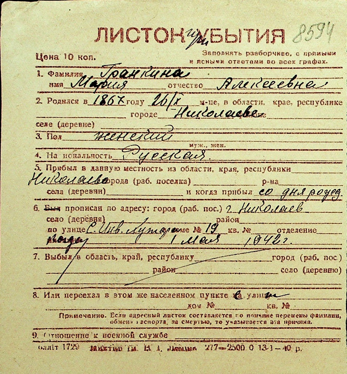• • Перелік карток до фонду № Н-1016