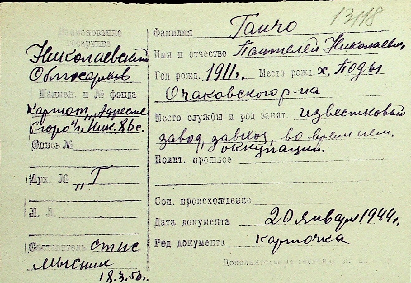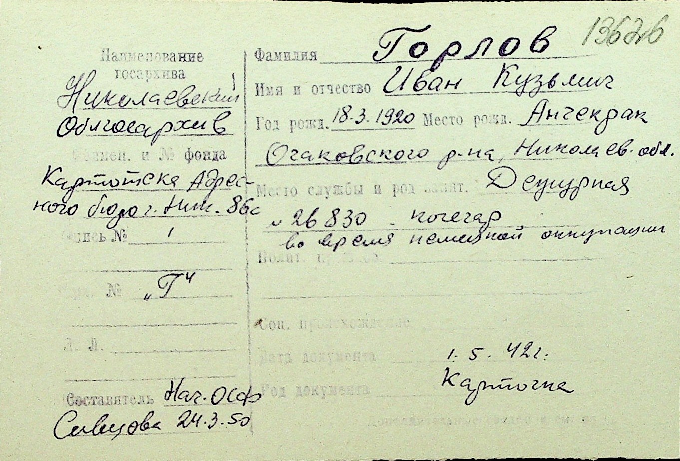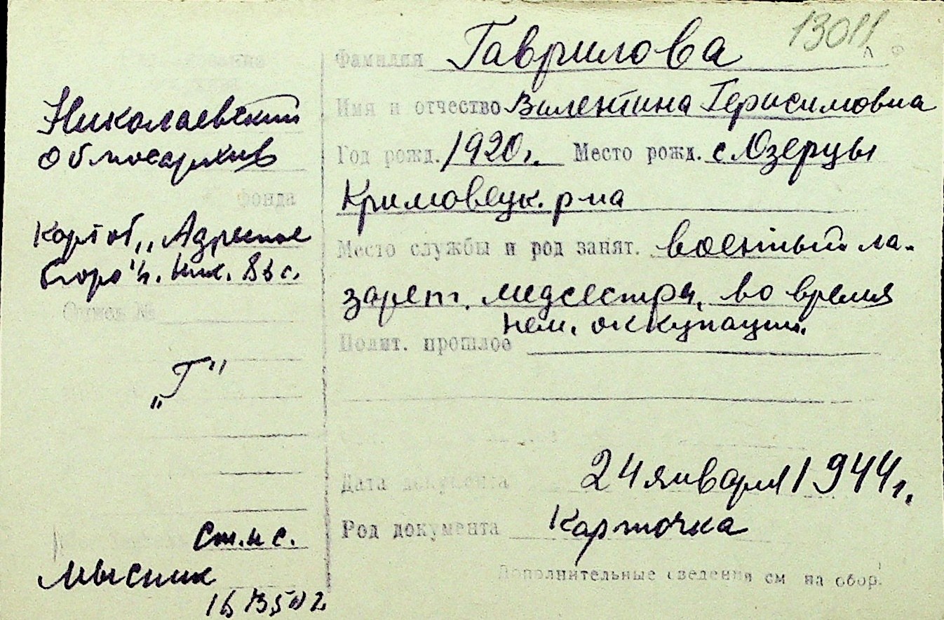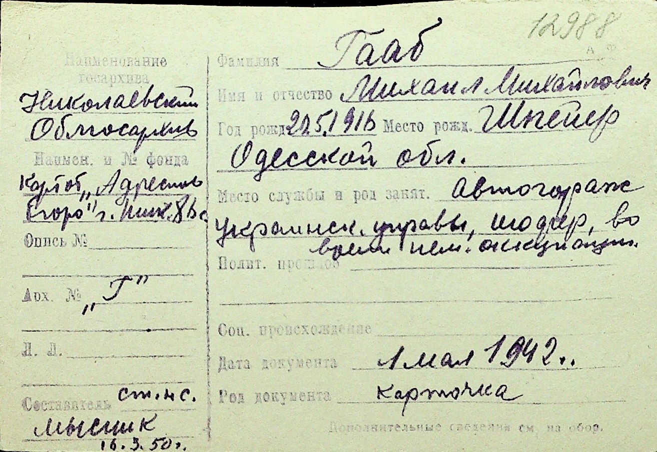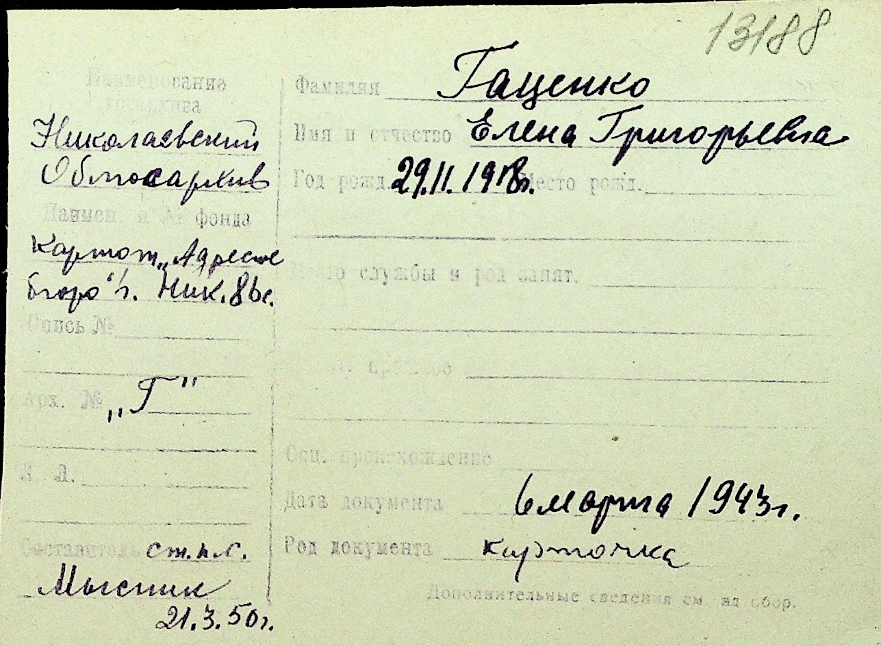 • • Перелік карток до фонду № Н-1016