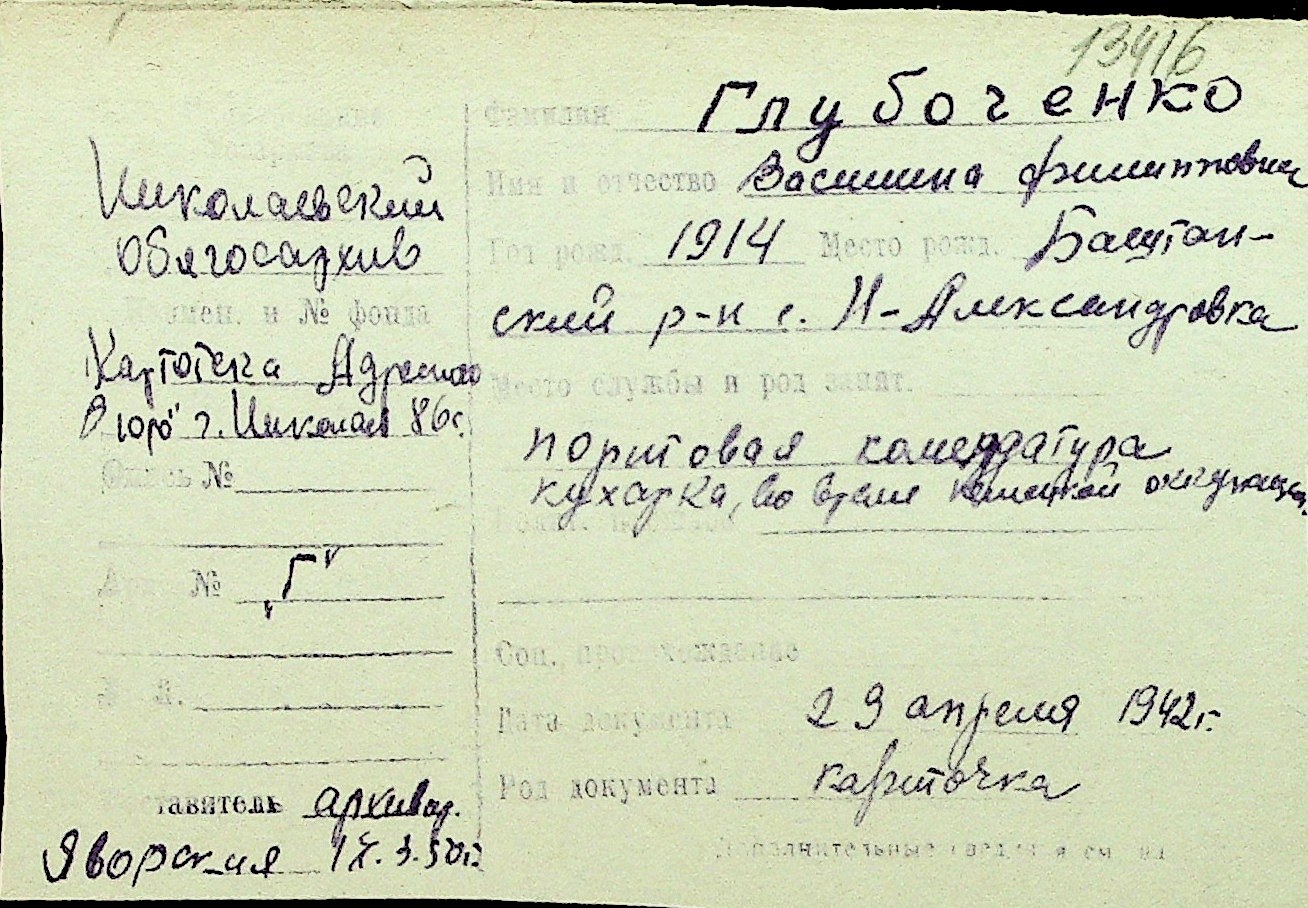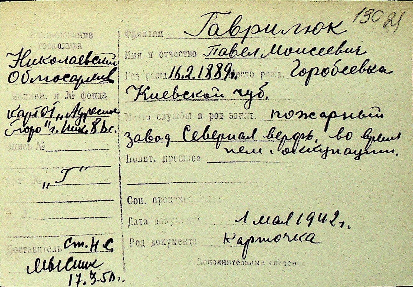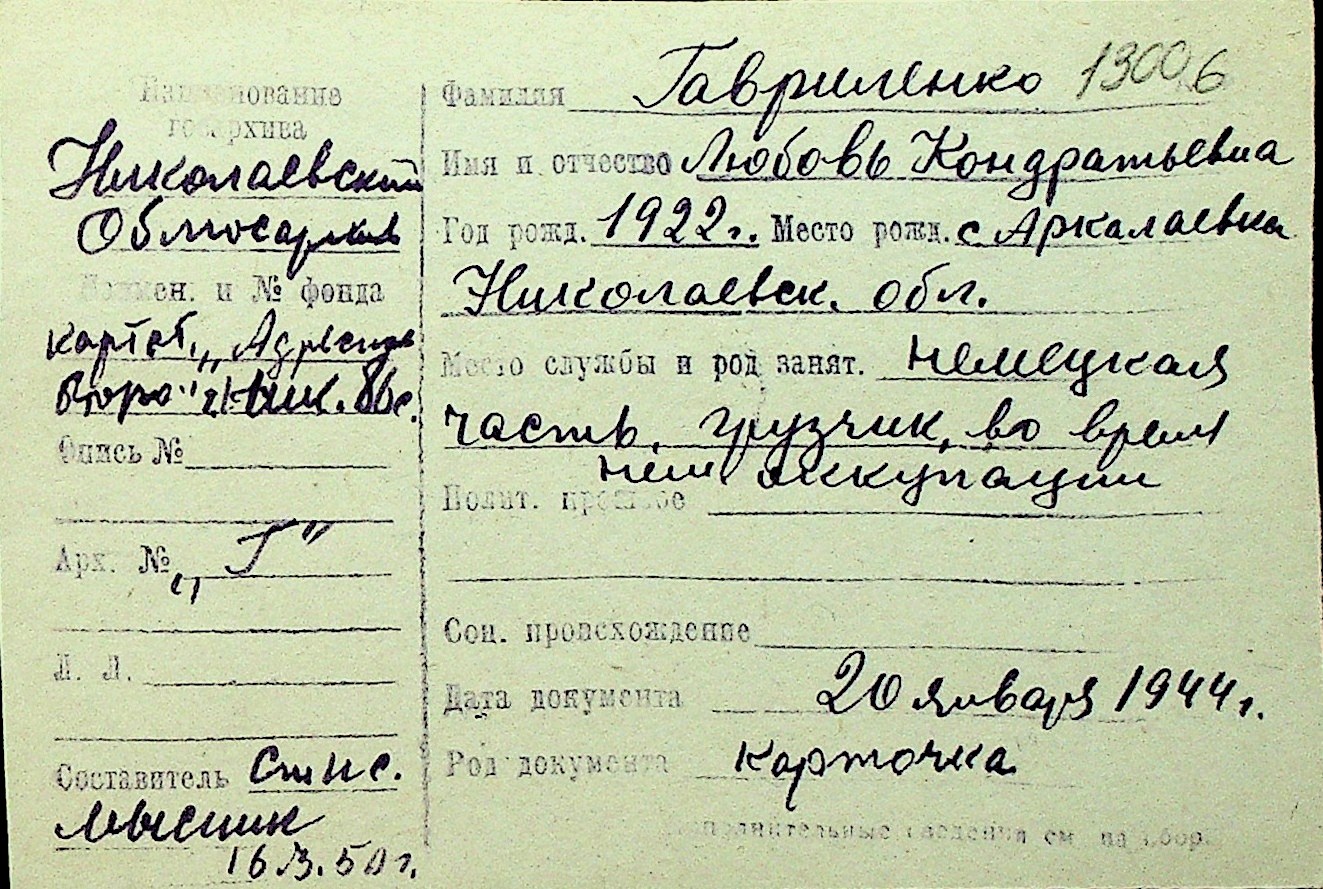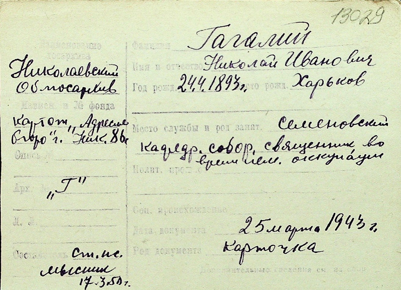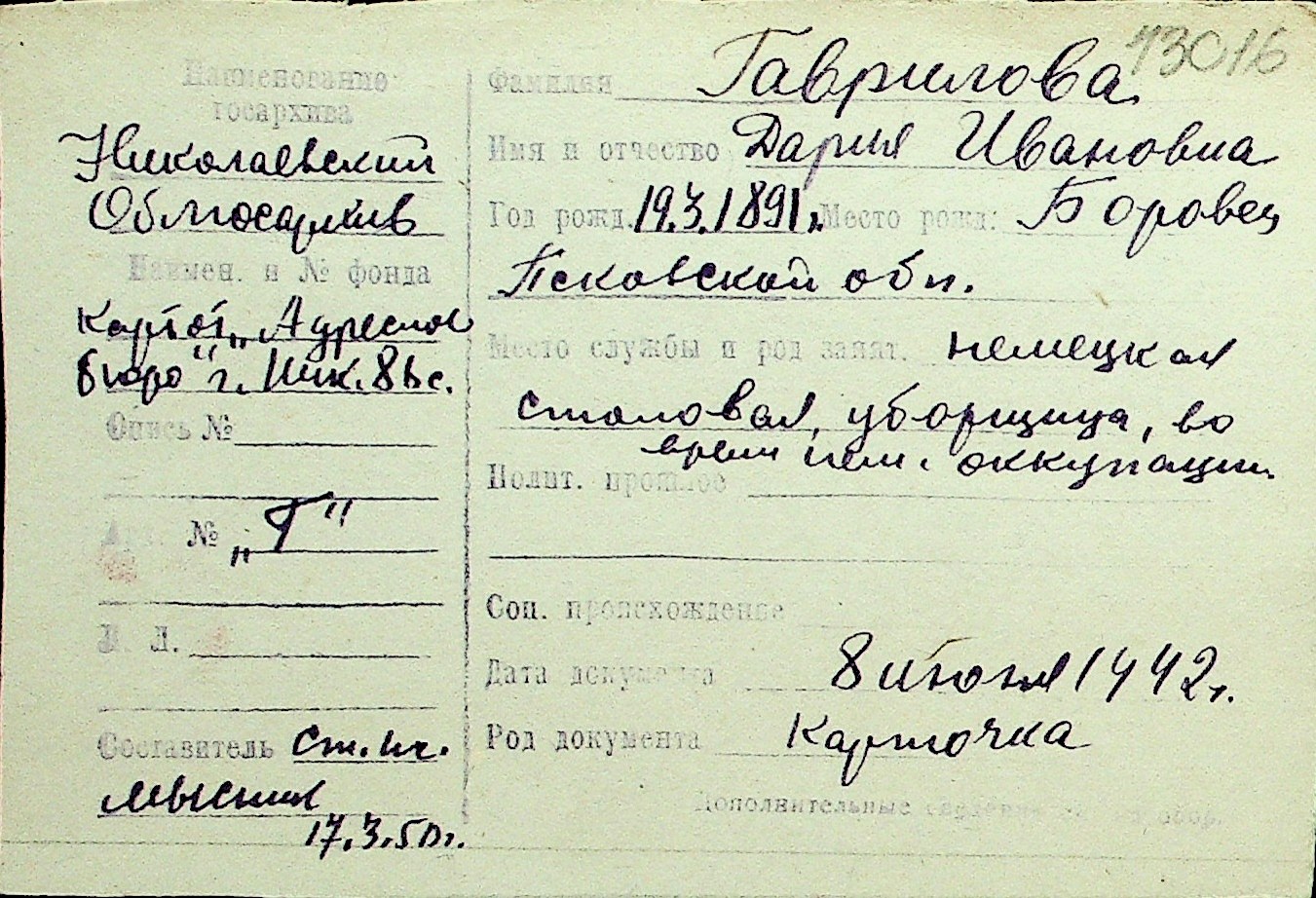 • • Перелік карток до фонду № Н-1016