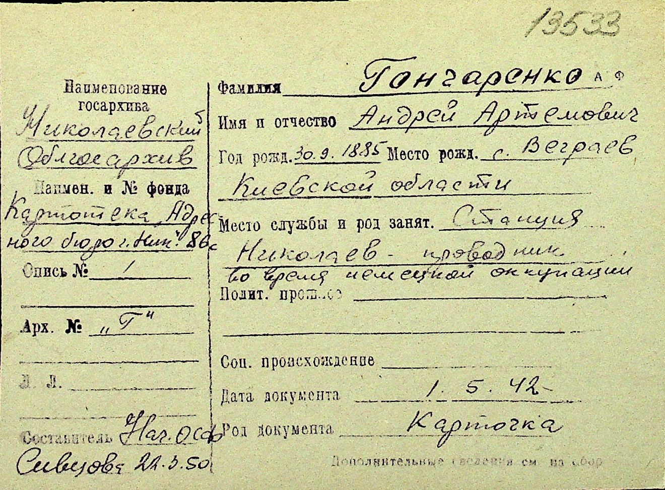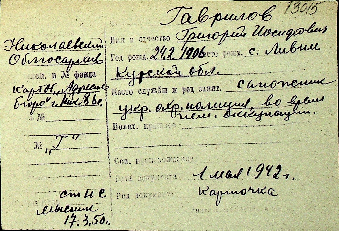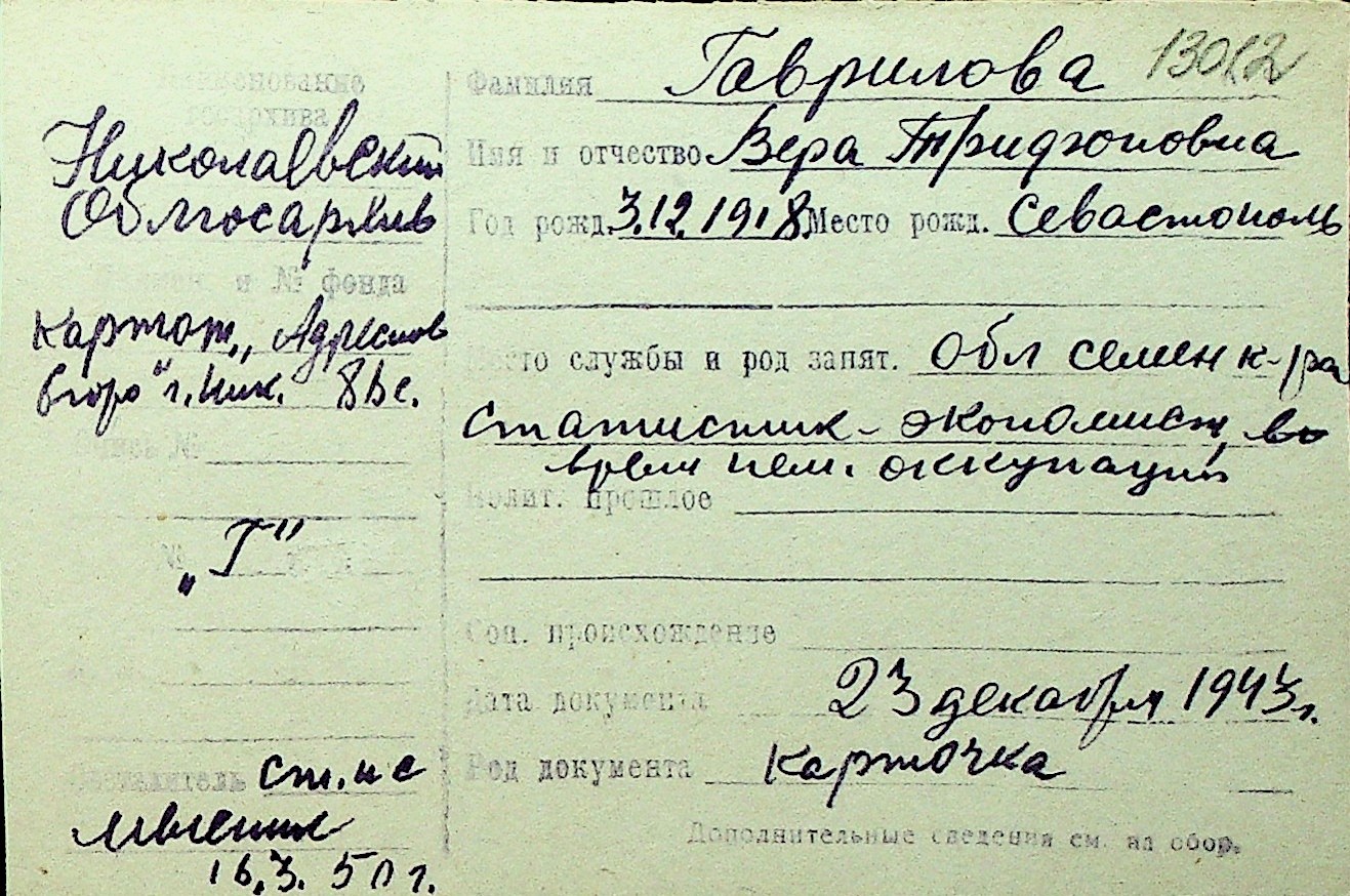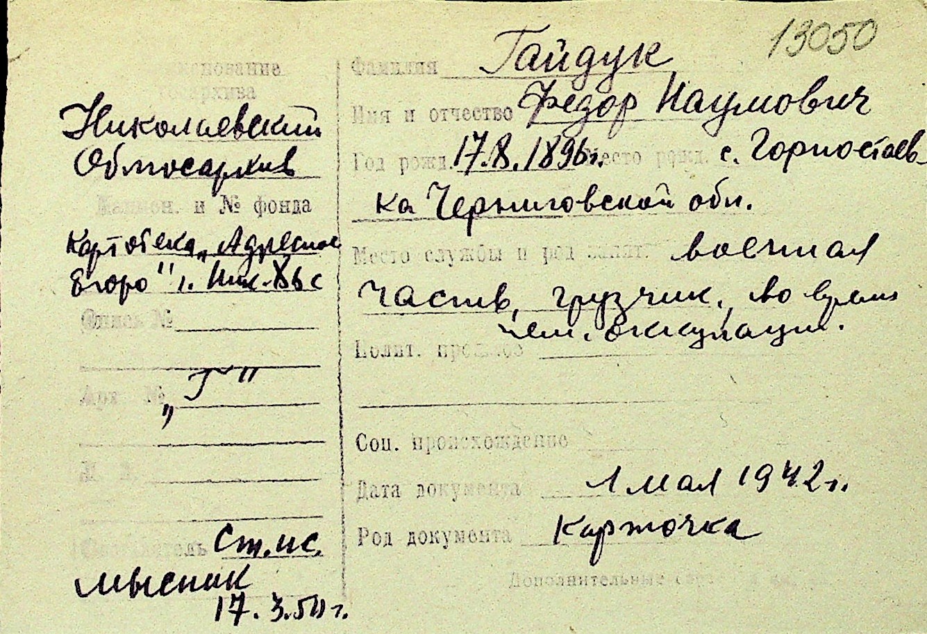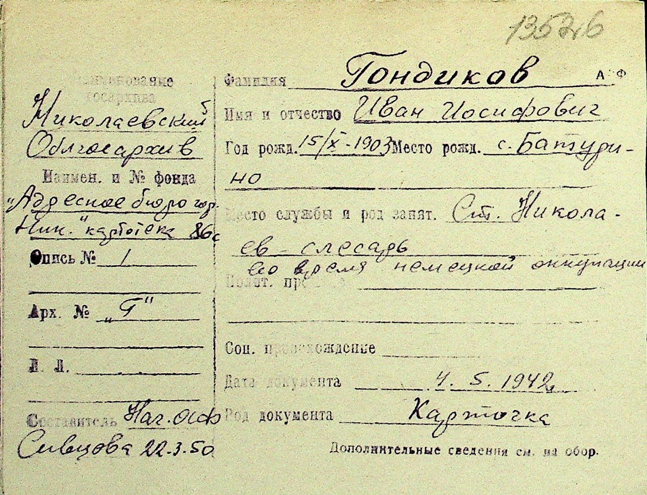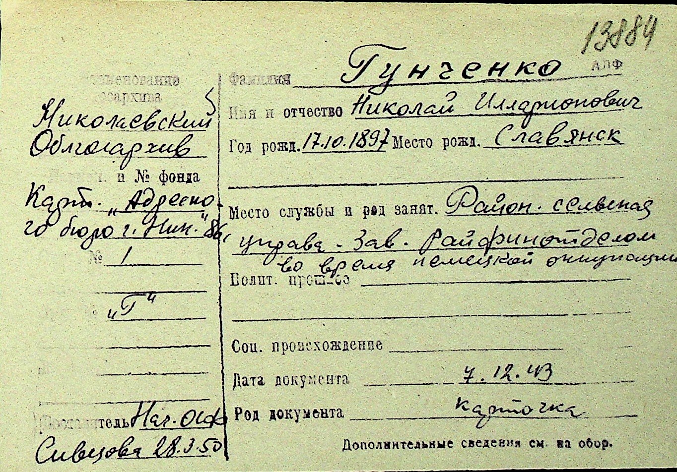 • • Перелік карток до фонду № Н-1016