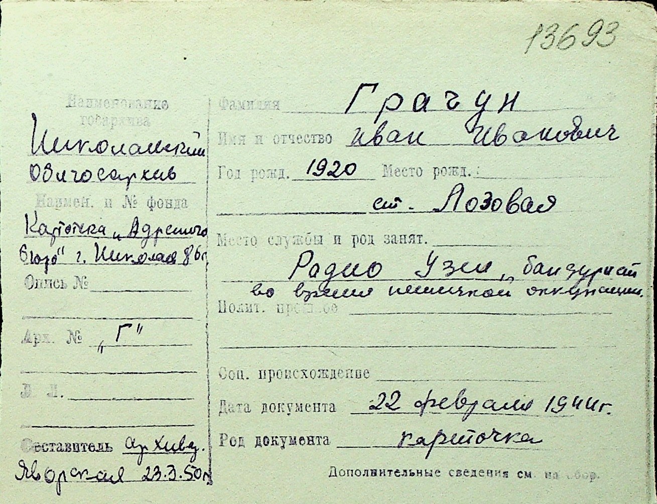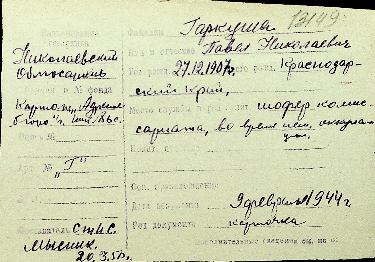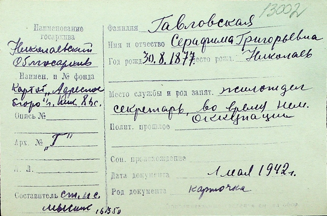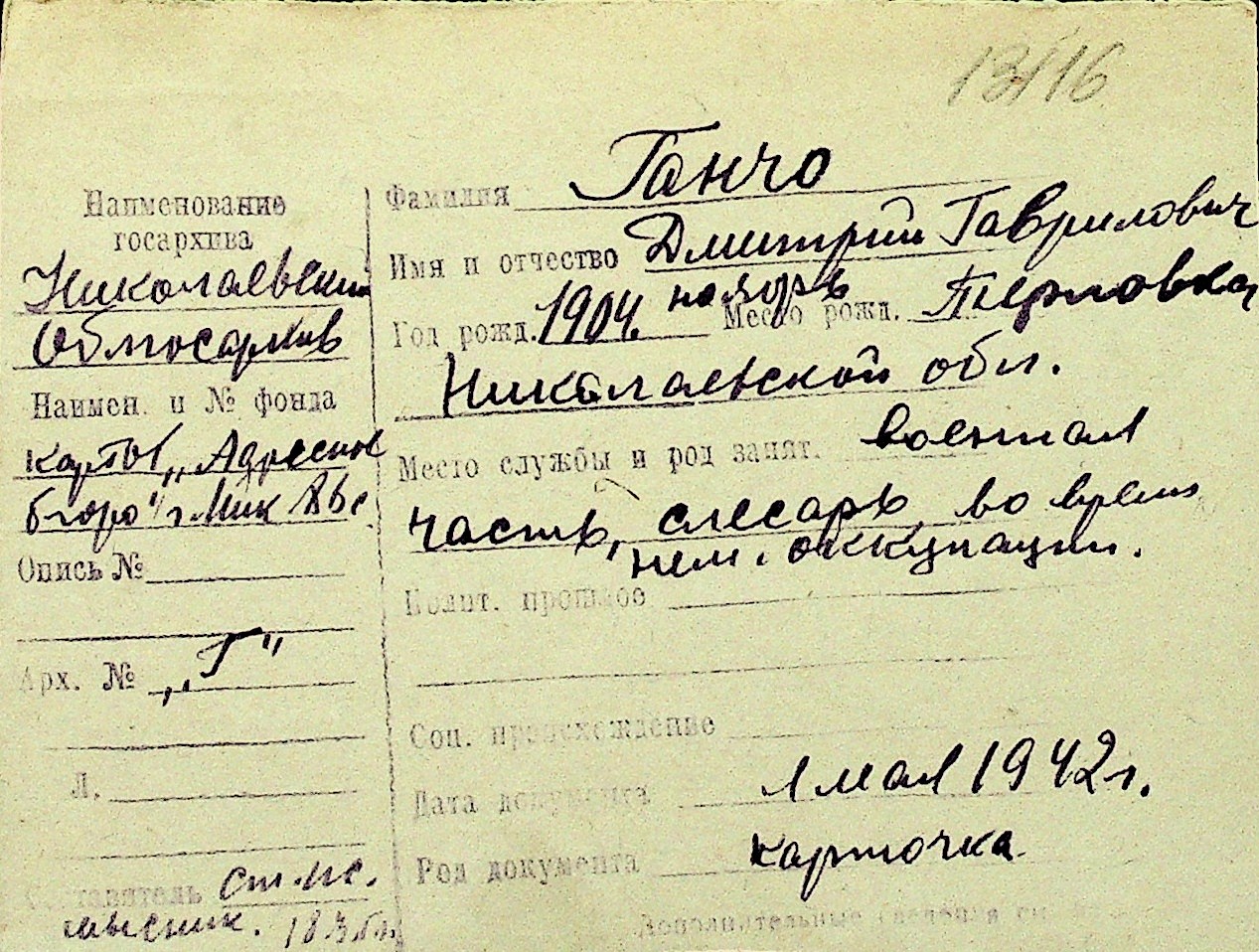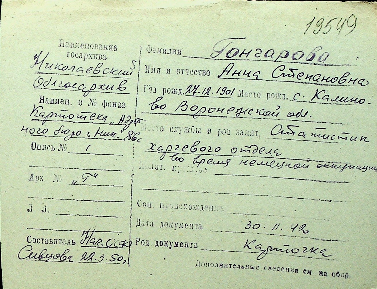 • • Перелік карток до фонду № Н-1016