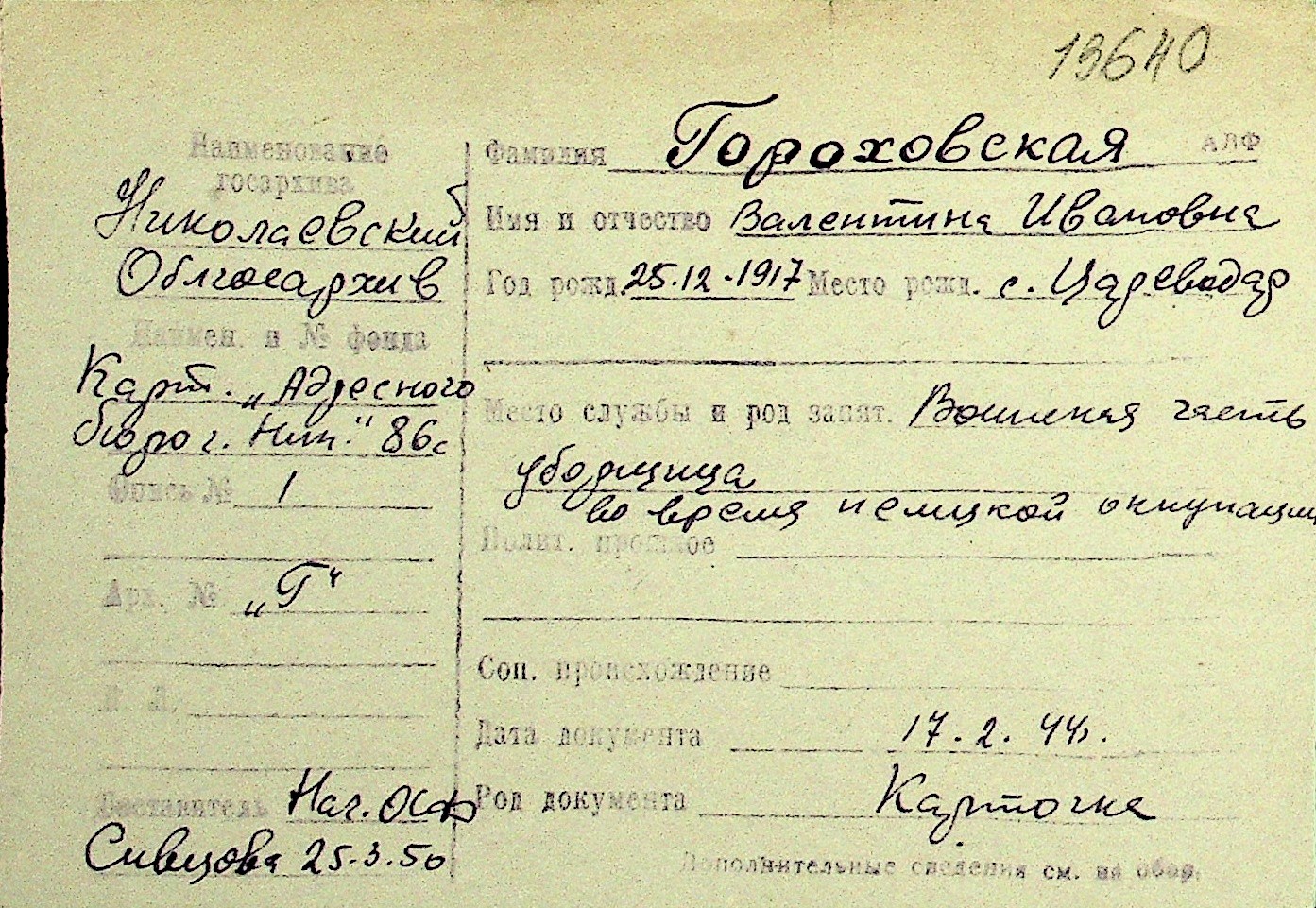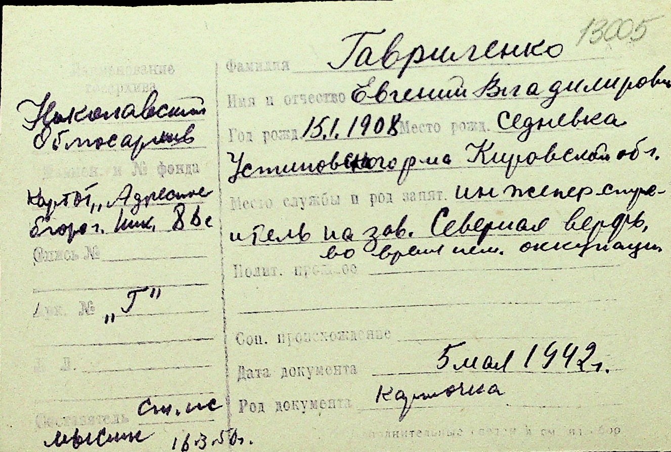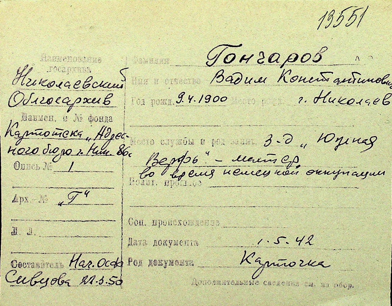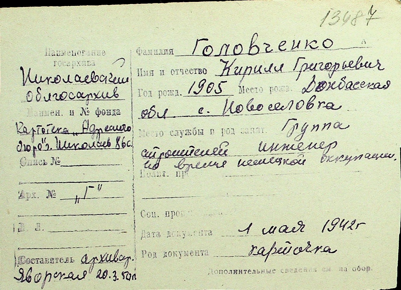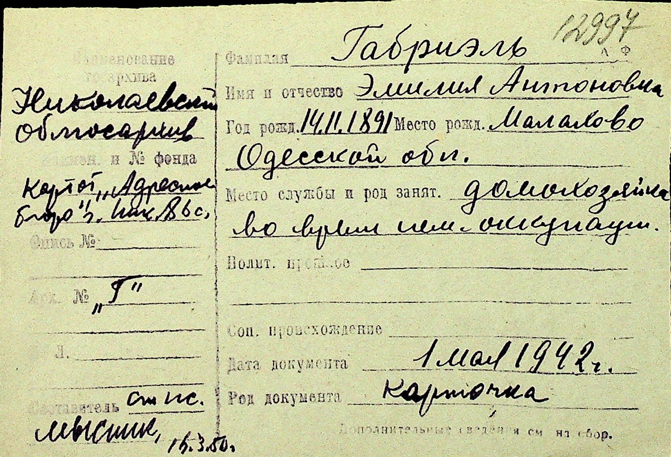 • • Перелік карток до фонду № Н-1016
