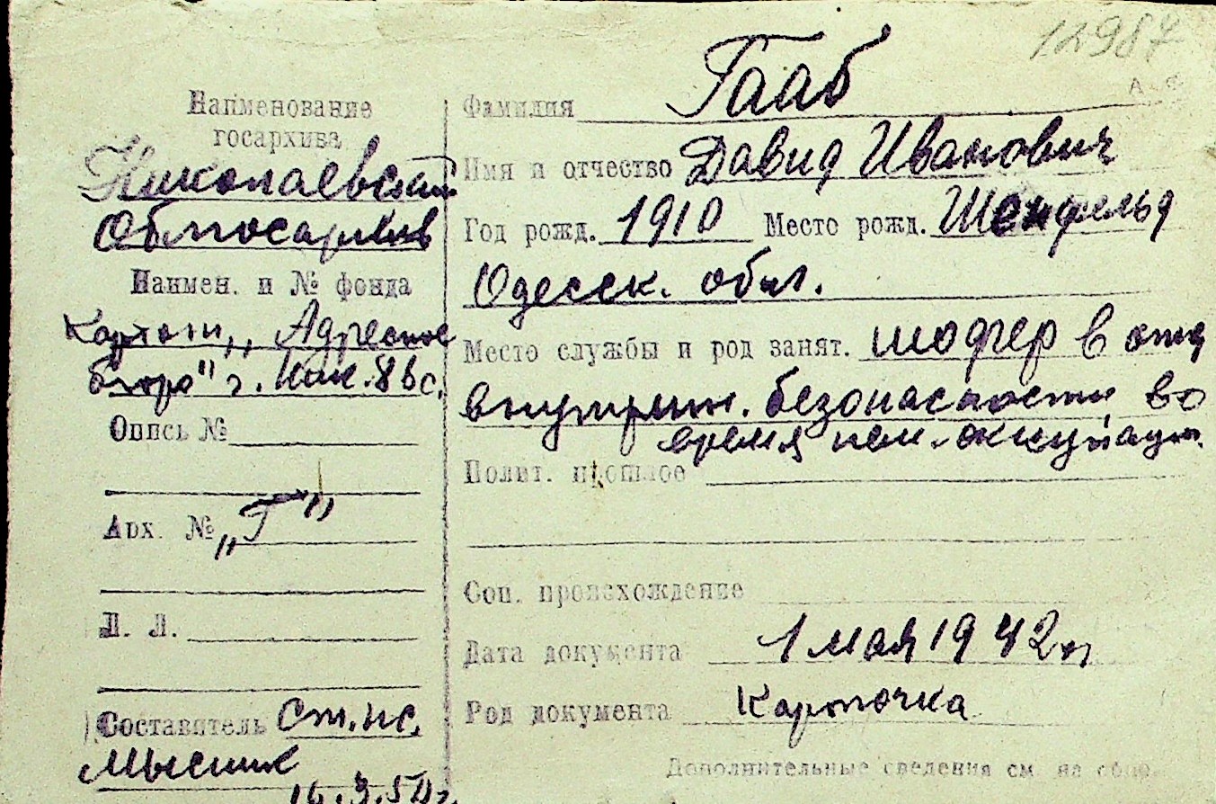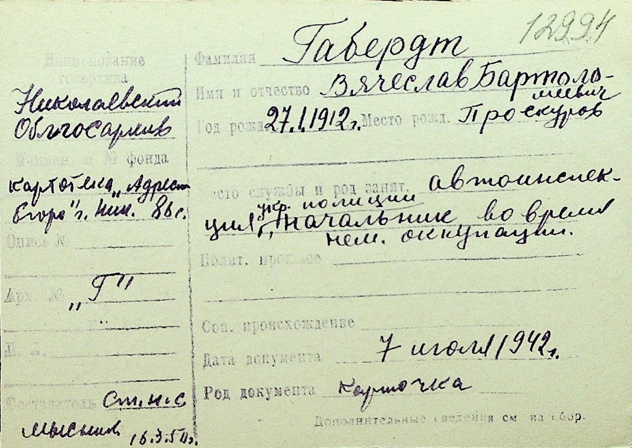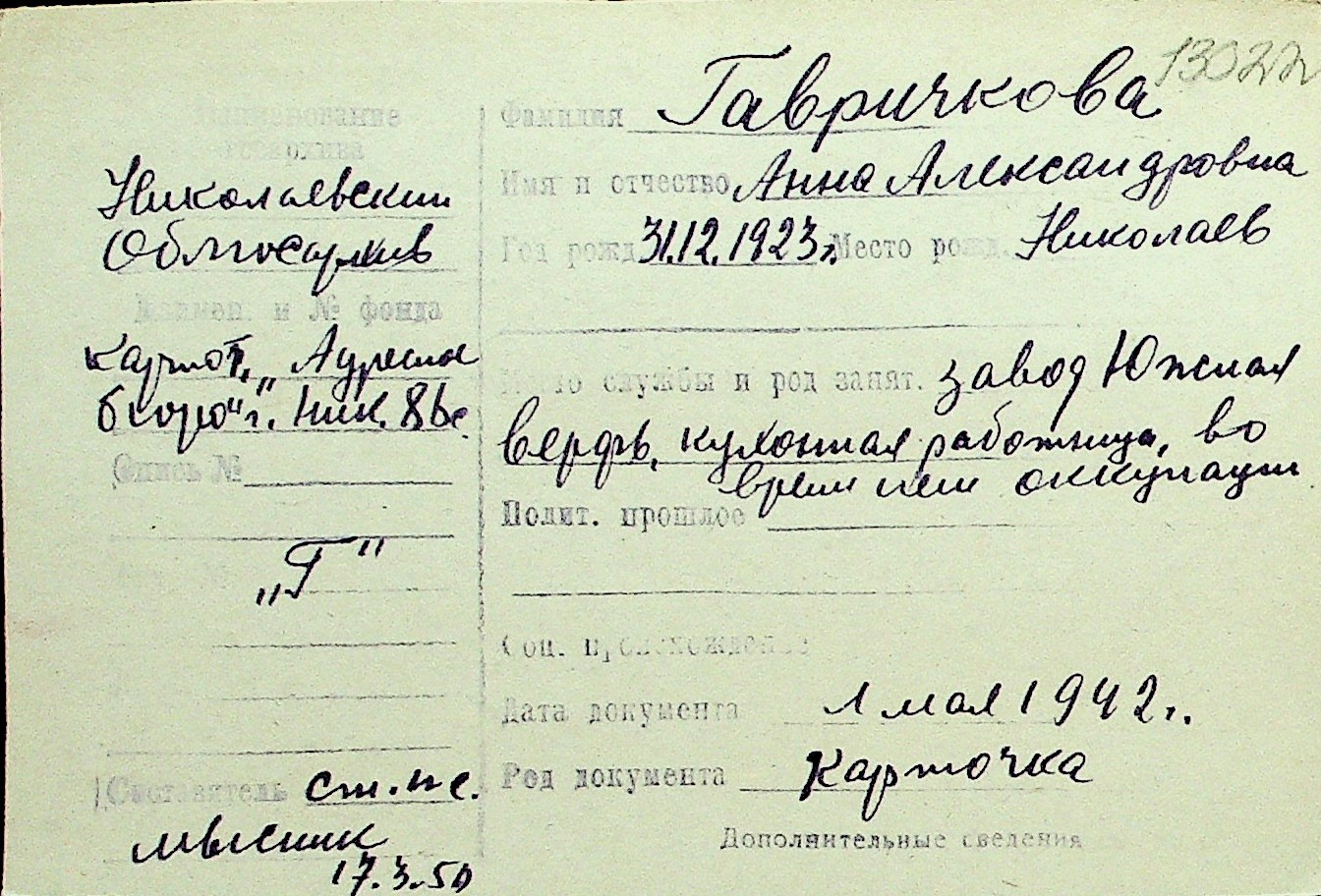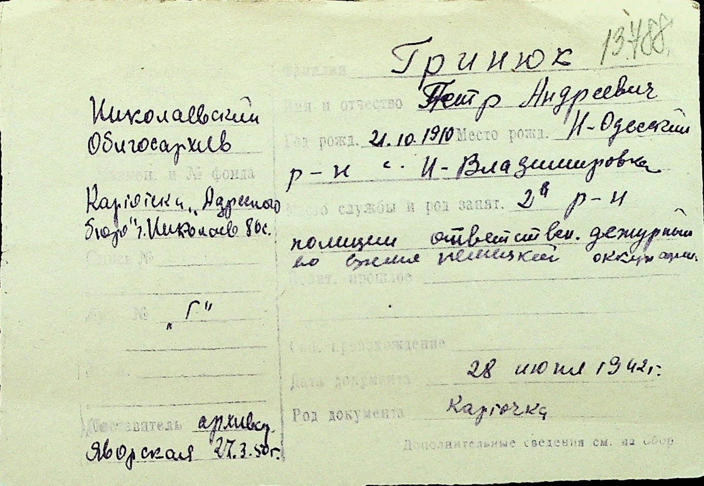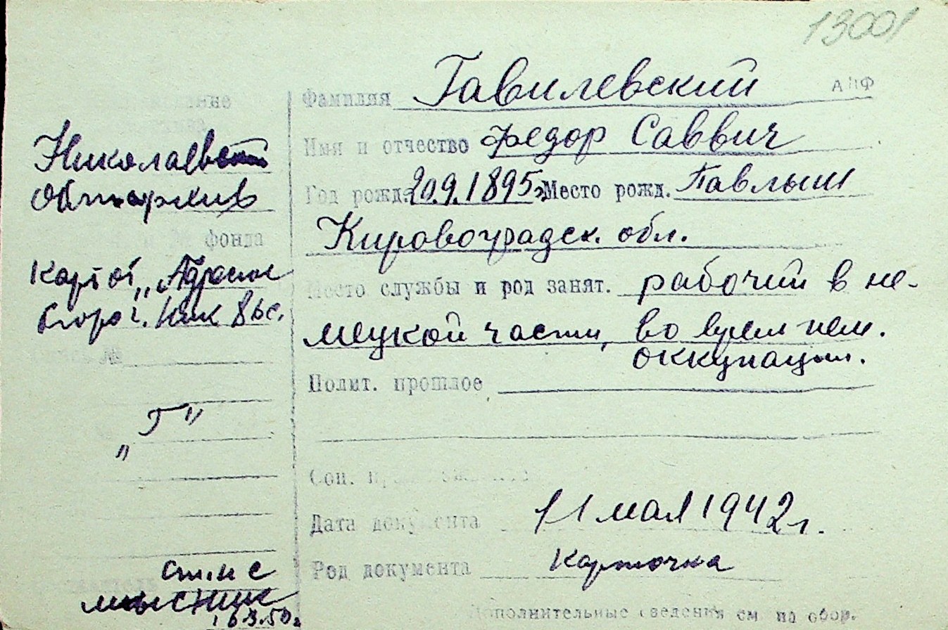 • • Перелік карток до фонду № Н-1016