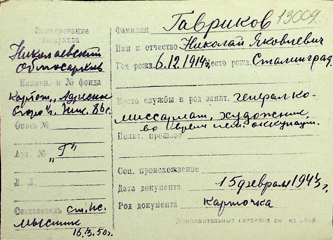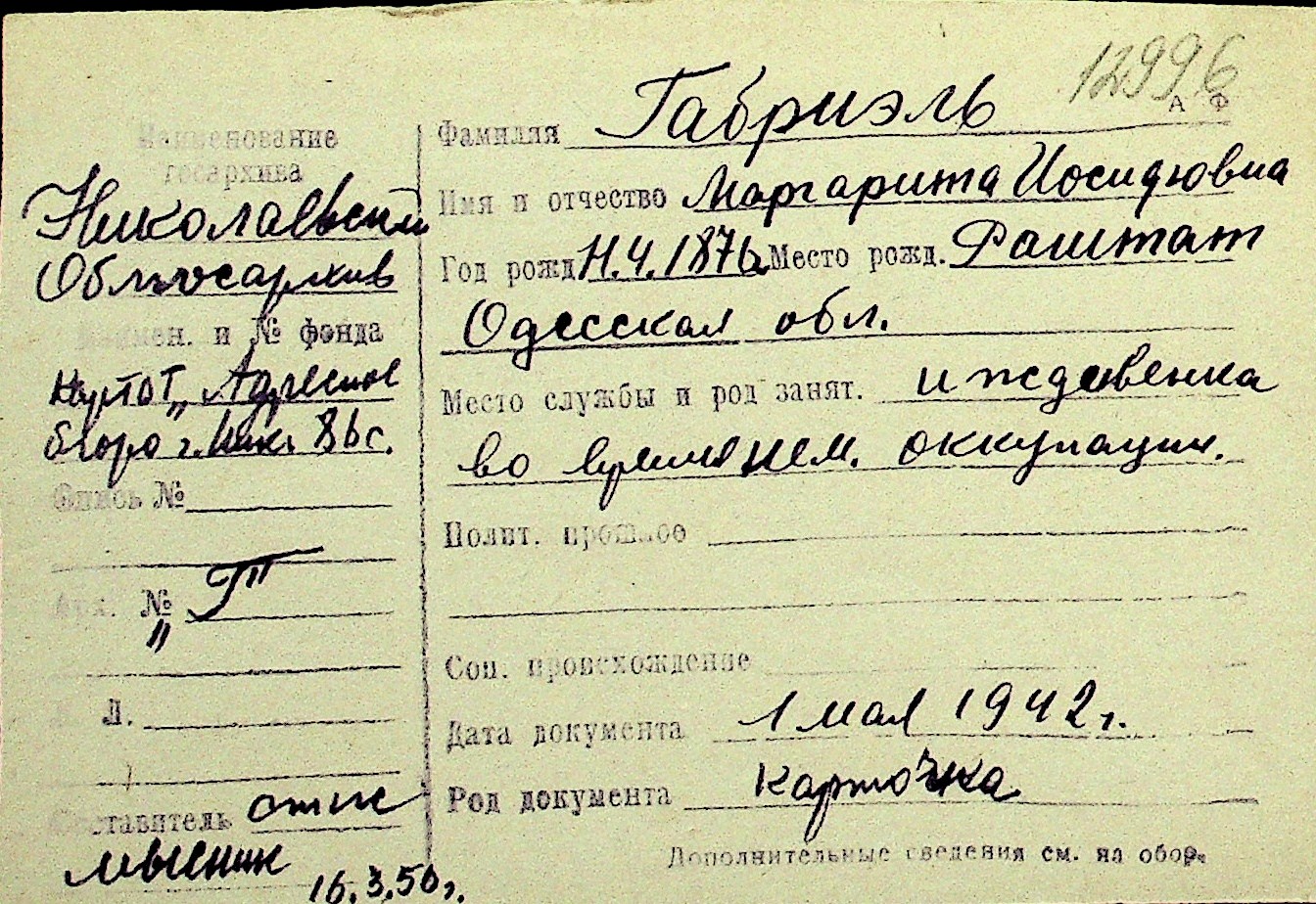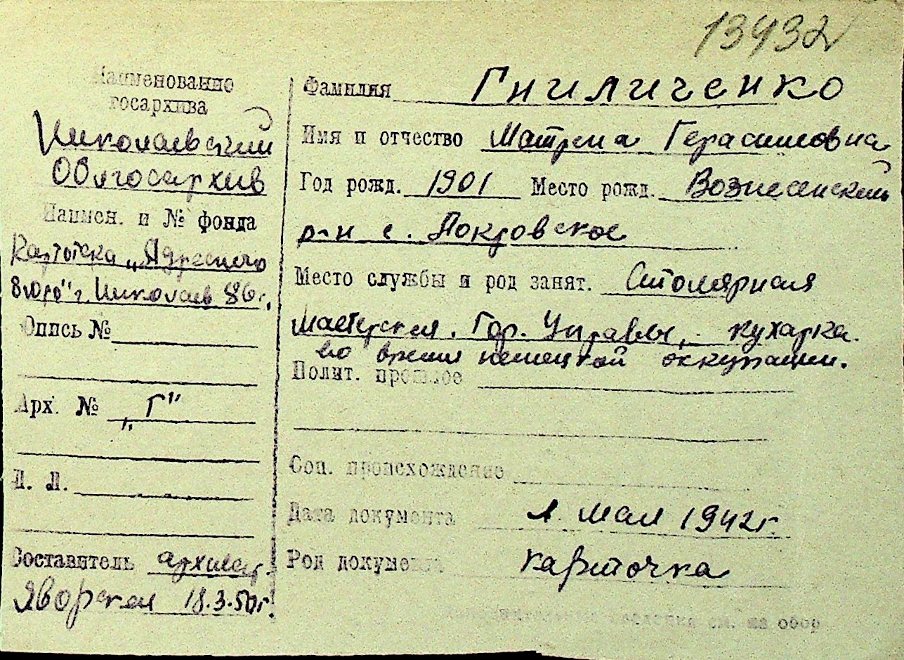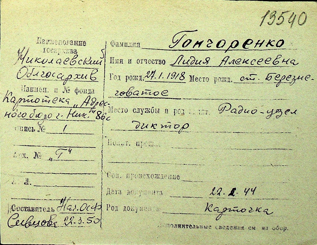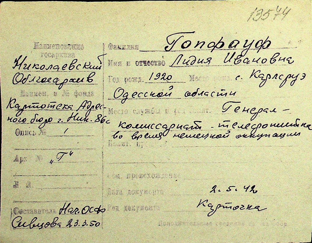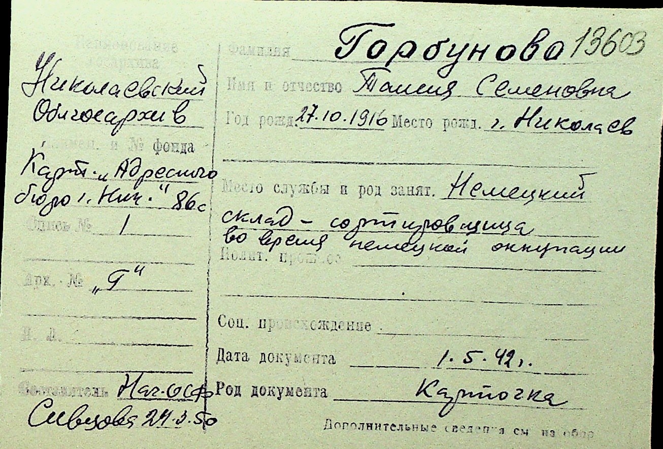 • • Перелік карток до фонду № Н-1016