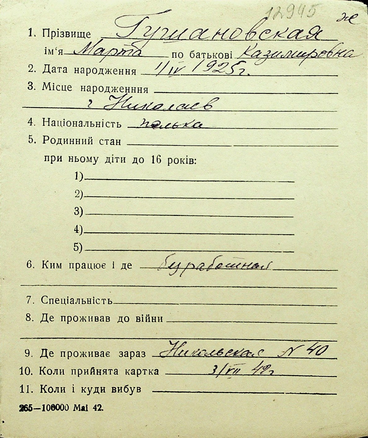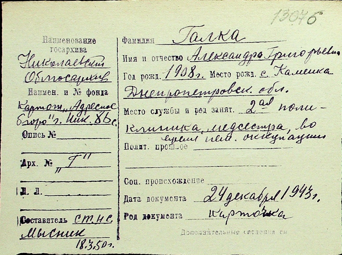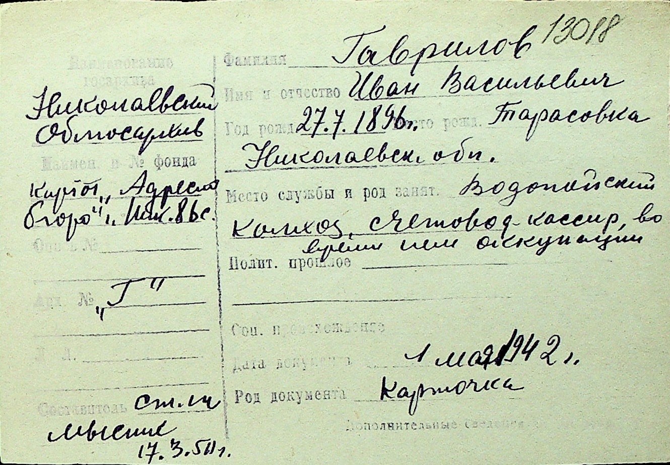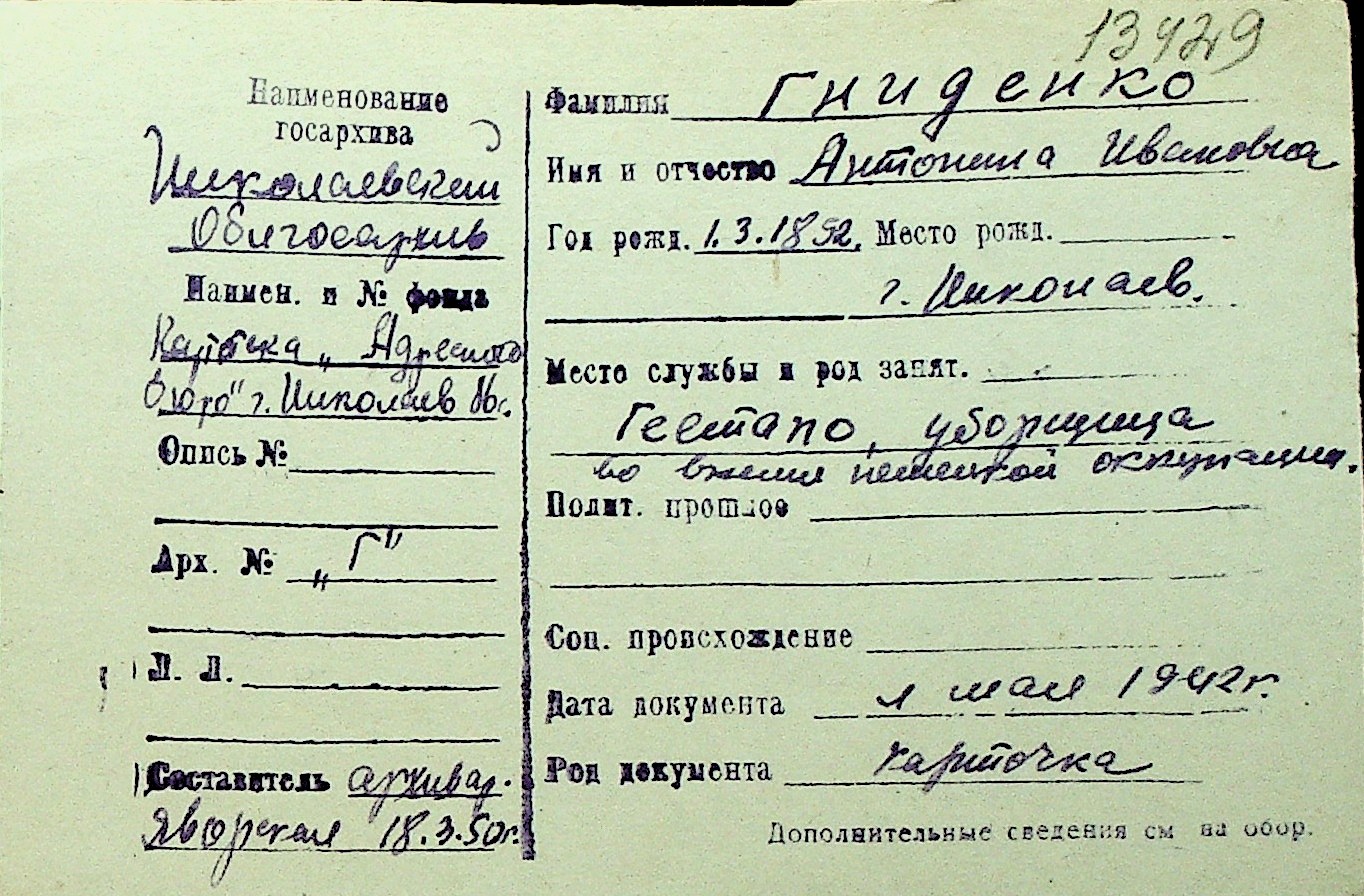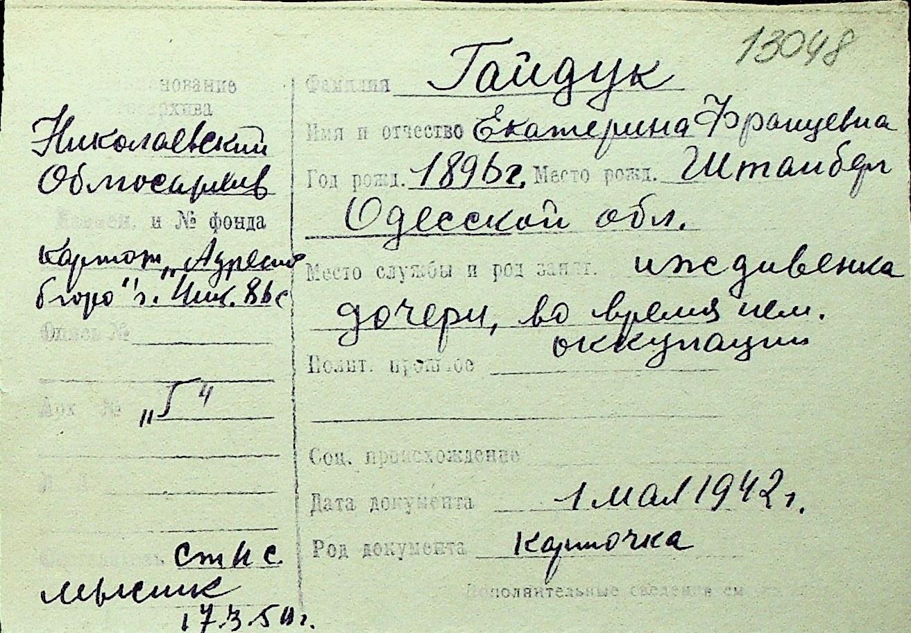 • • Перелік карток до фонду № Н-1016