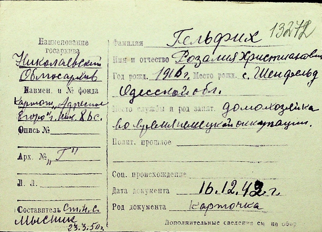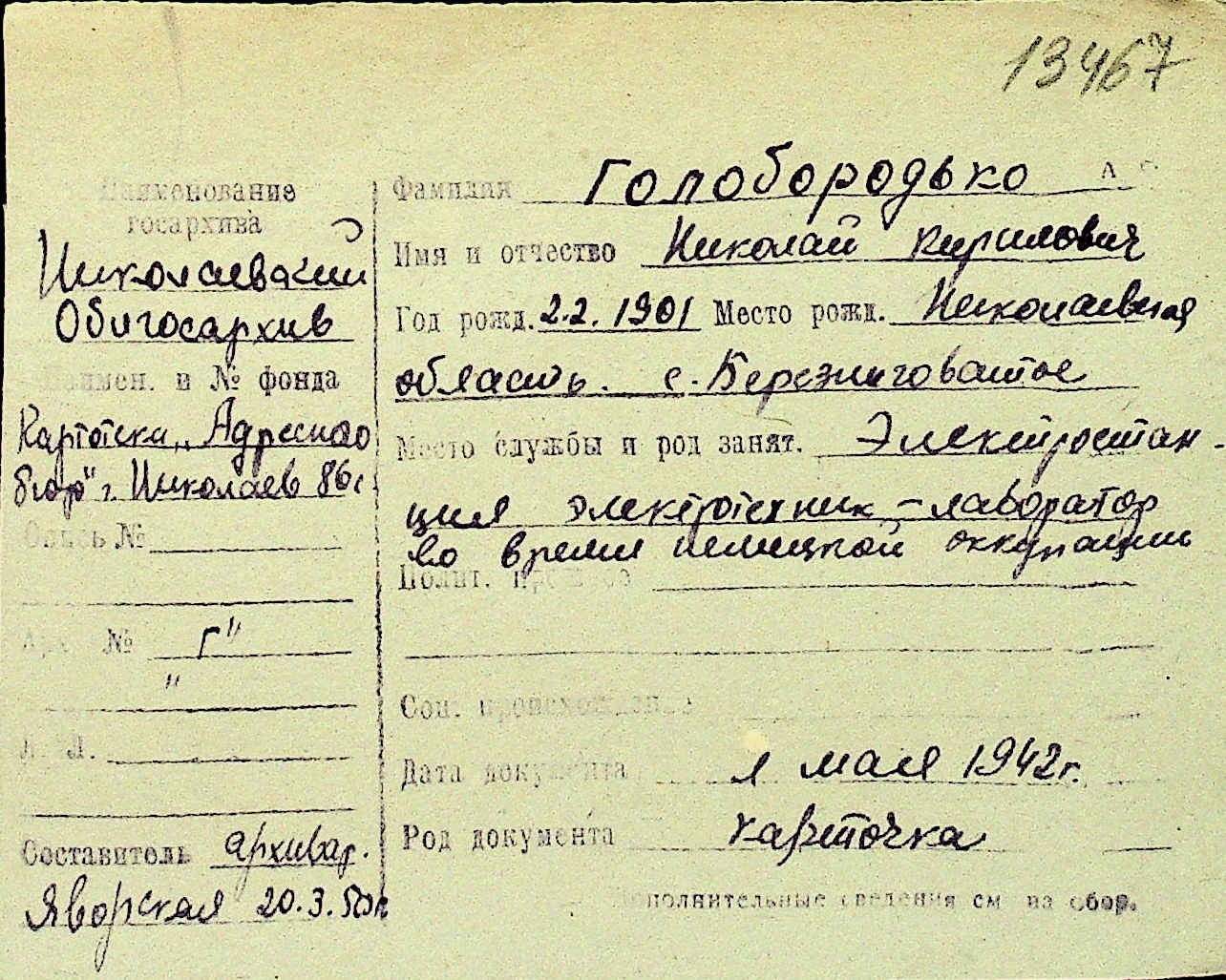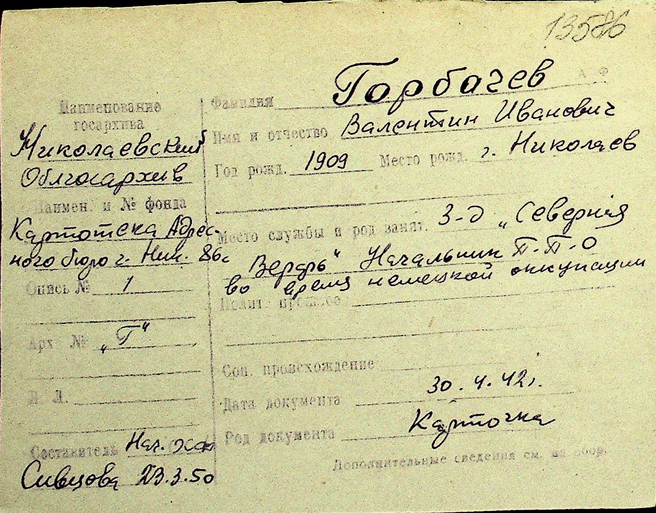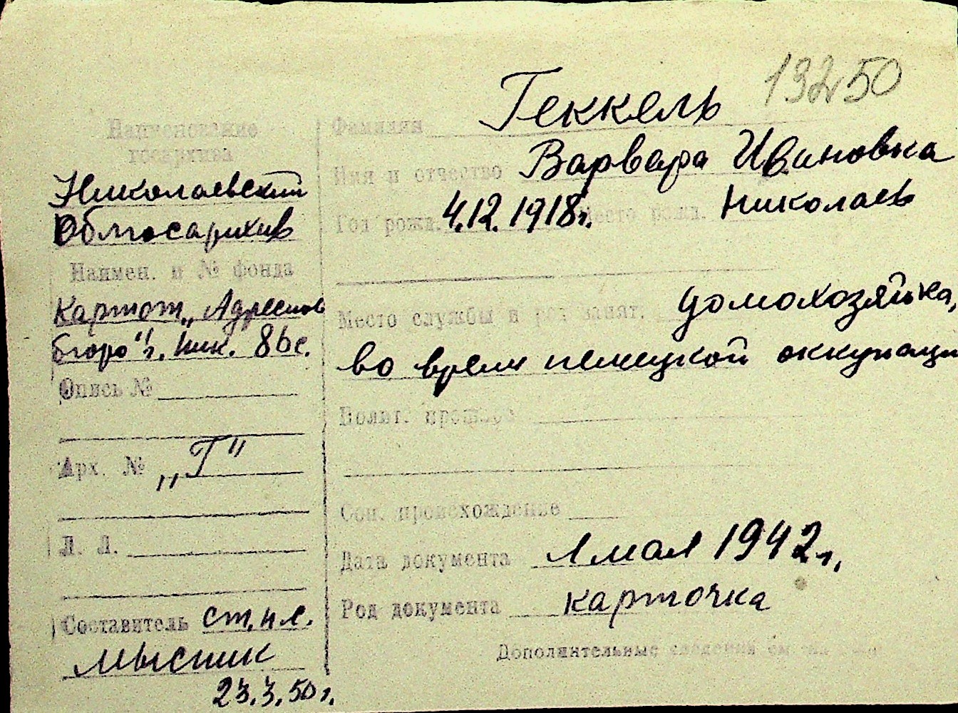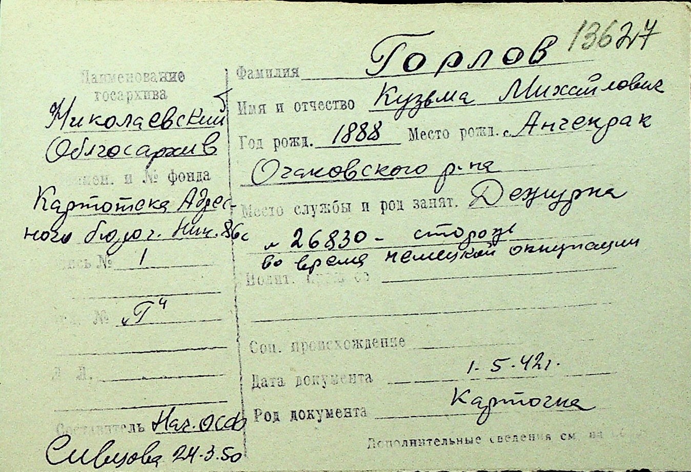 • • Перелік карток до фонду № Н-1016