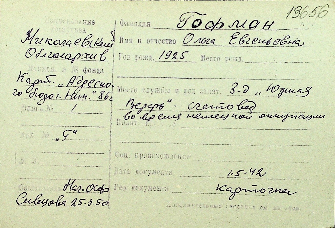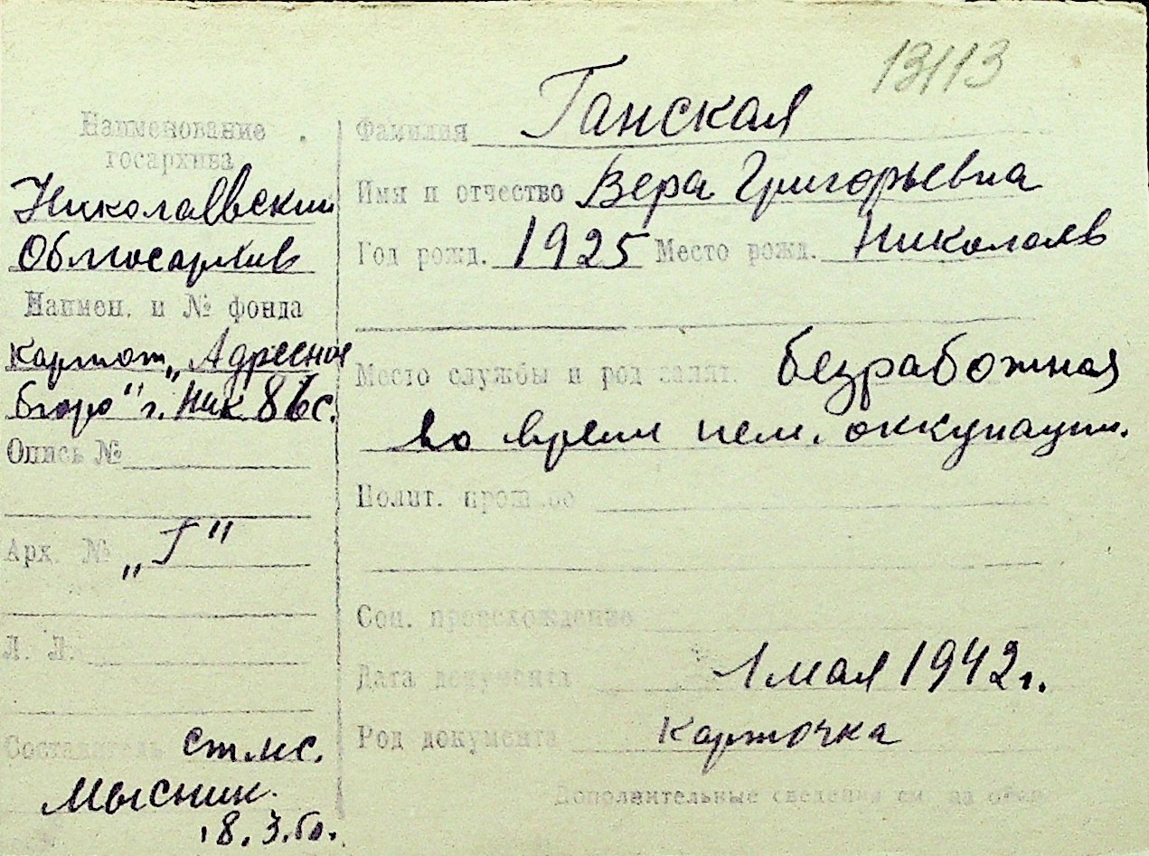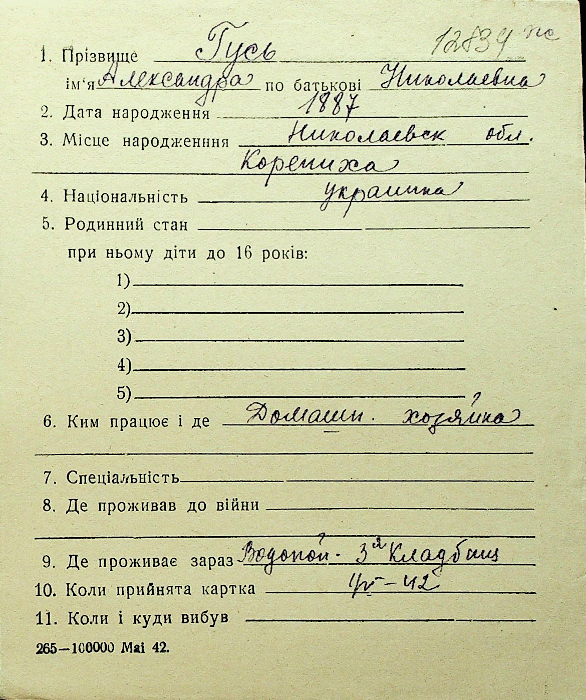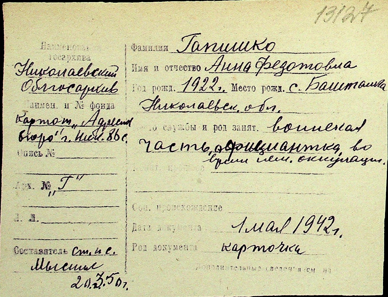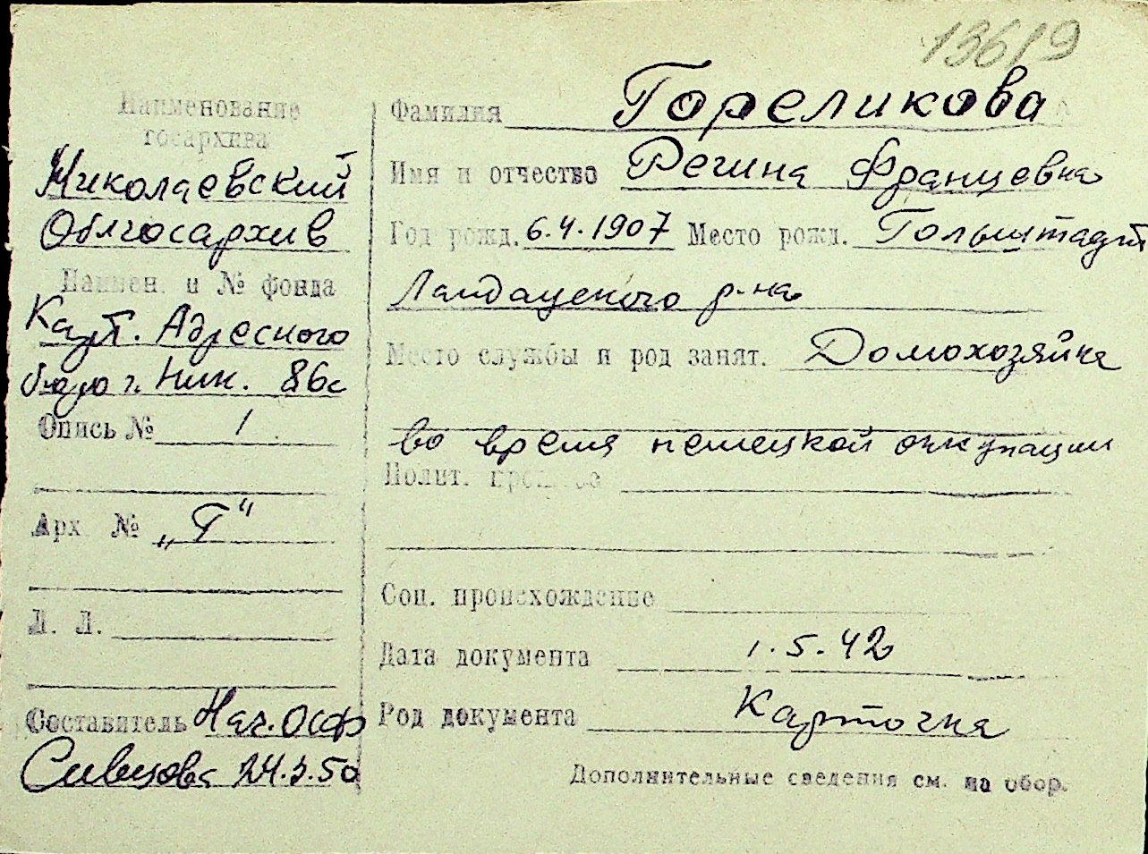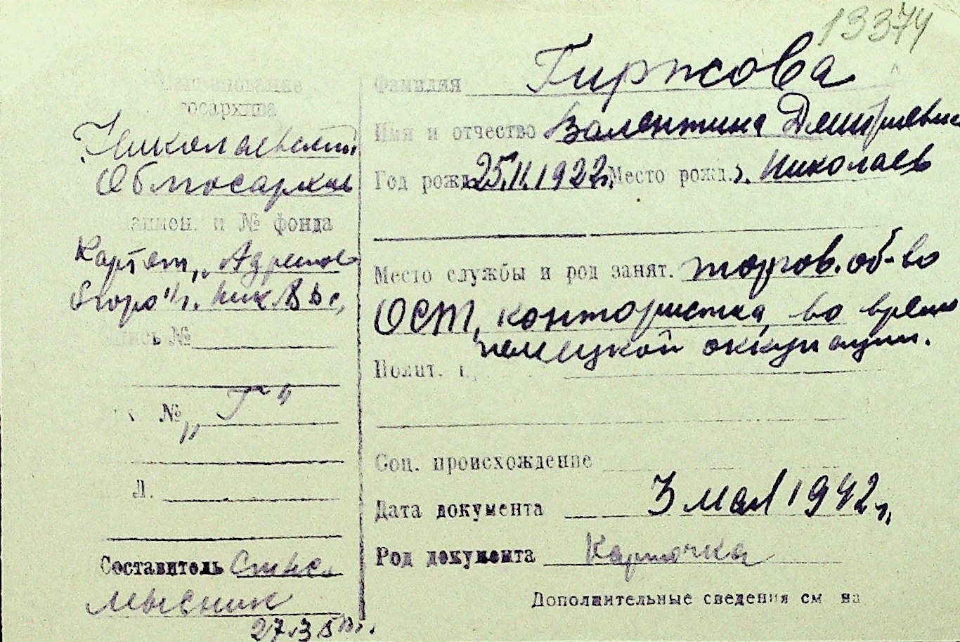 • • Перелік карток до фонду № Н-1016