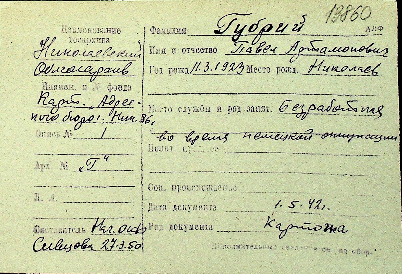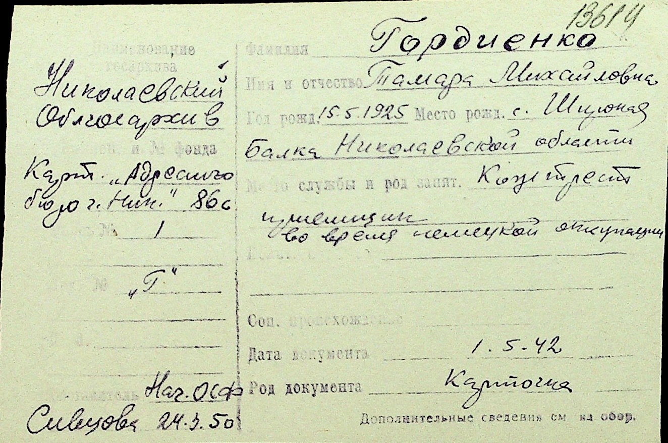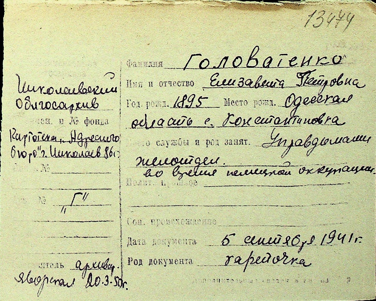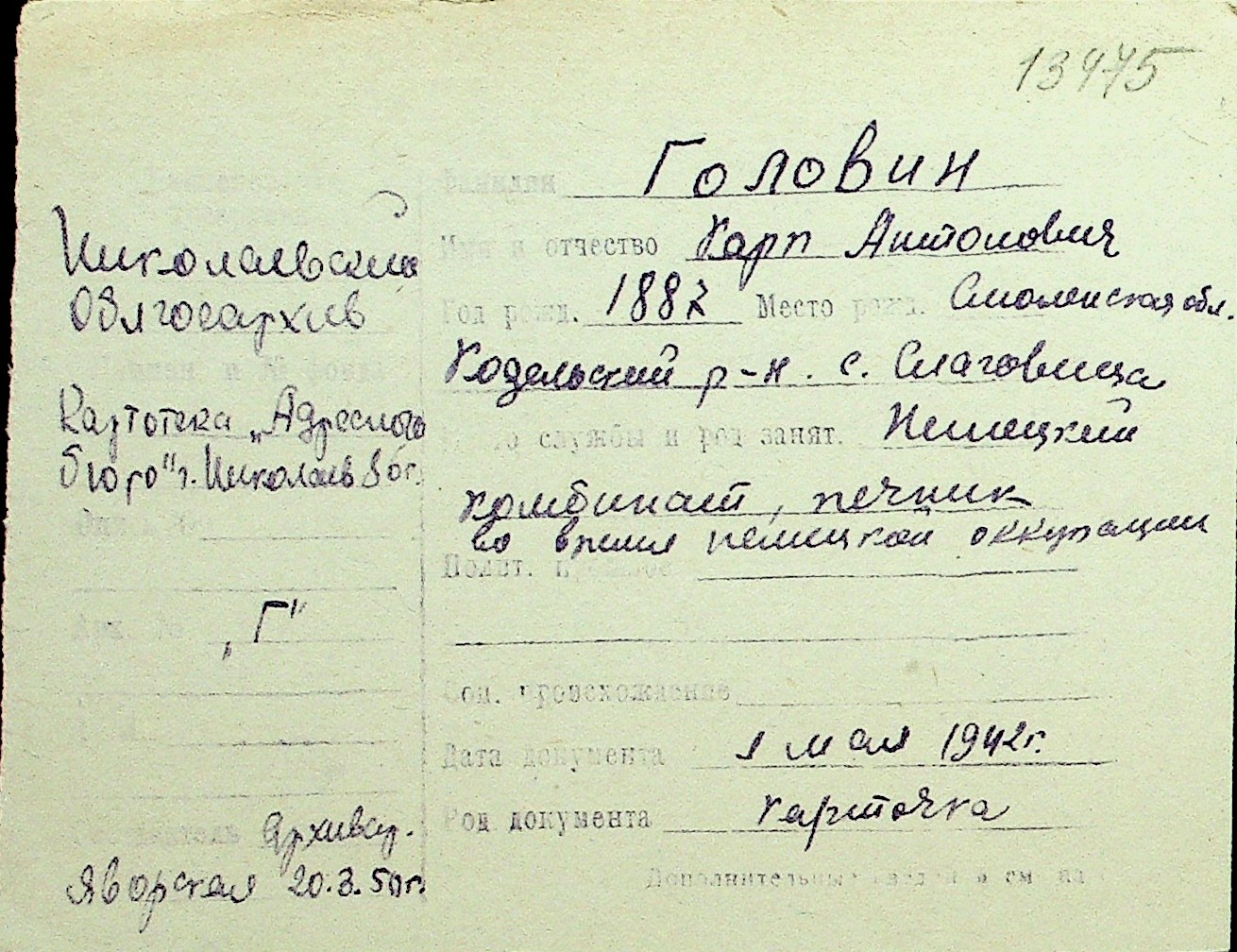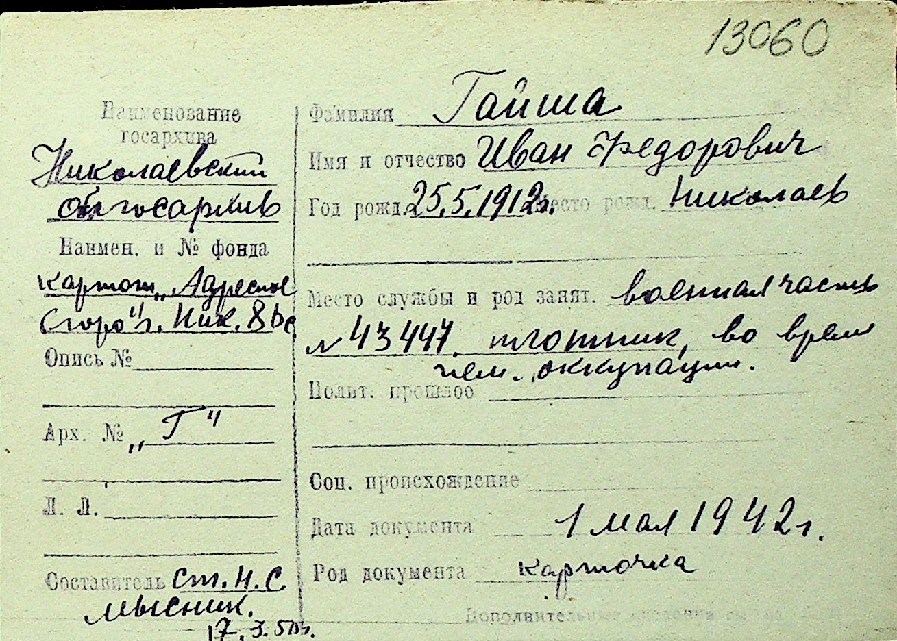 • • Перелік карток до фонду № Н-1016