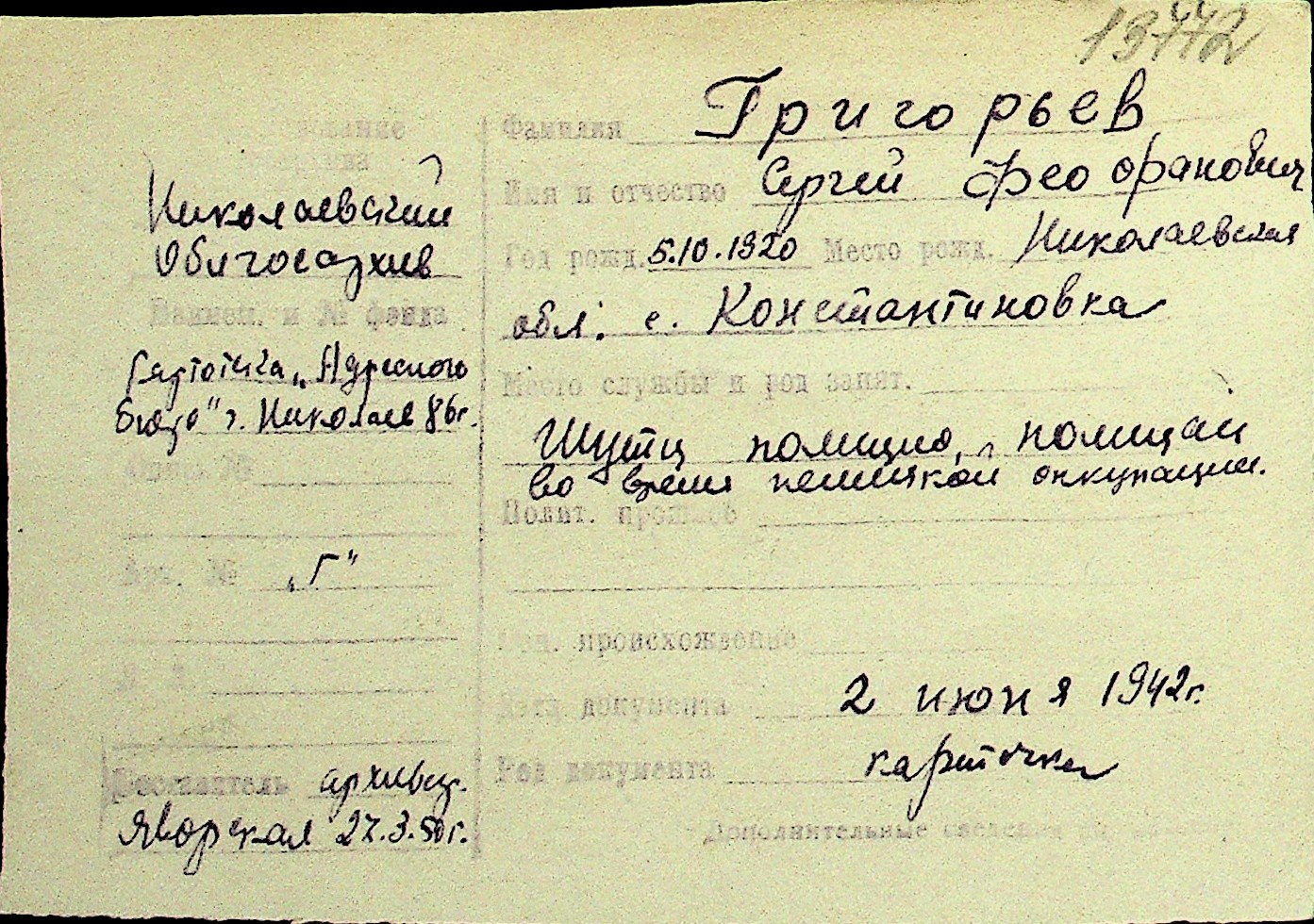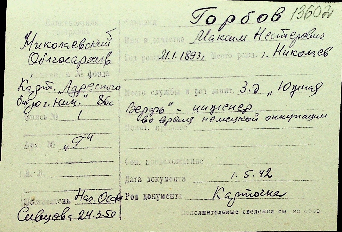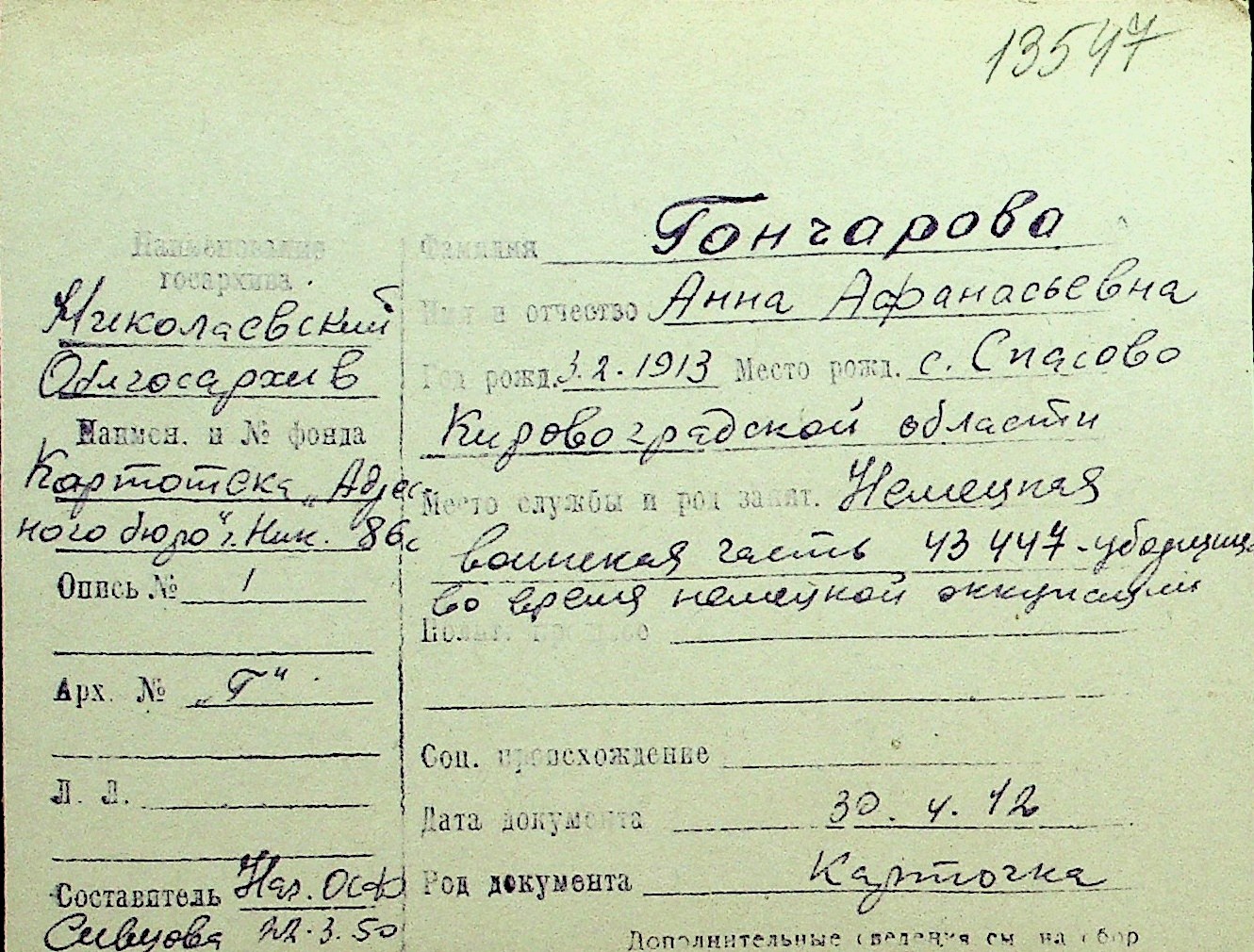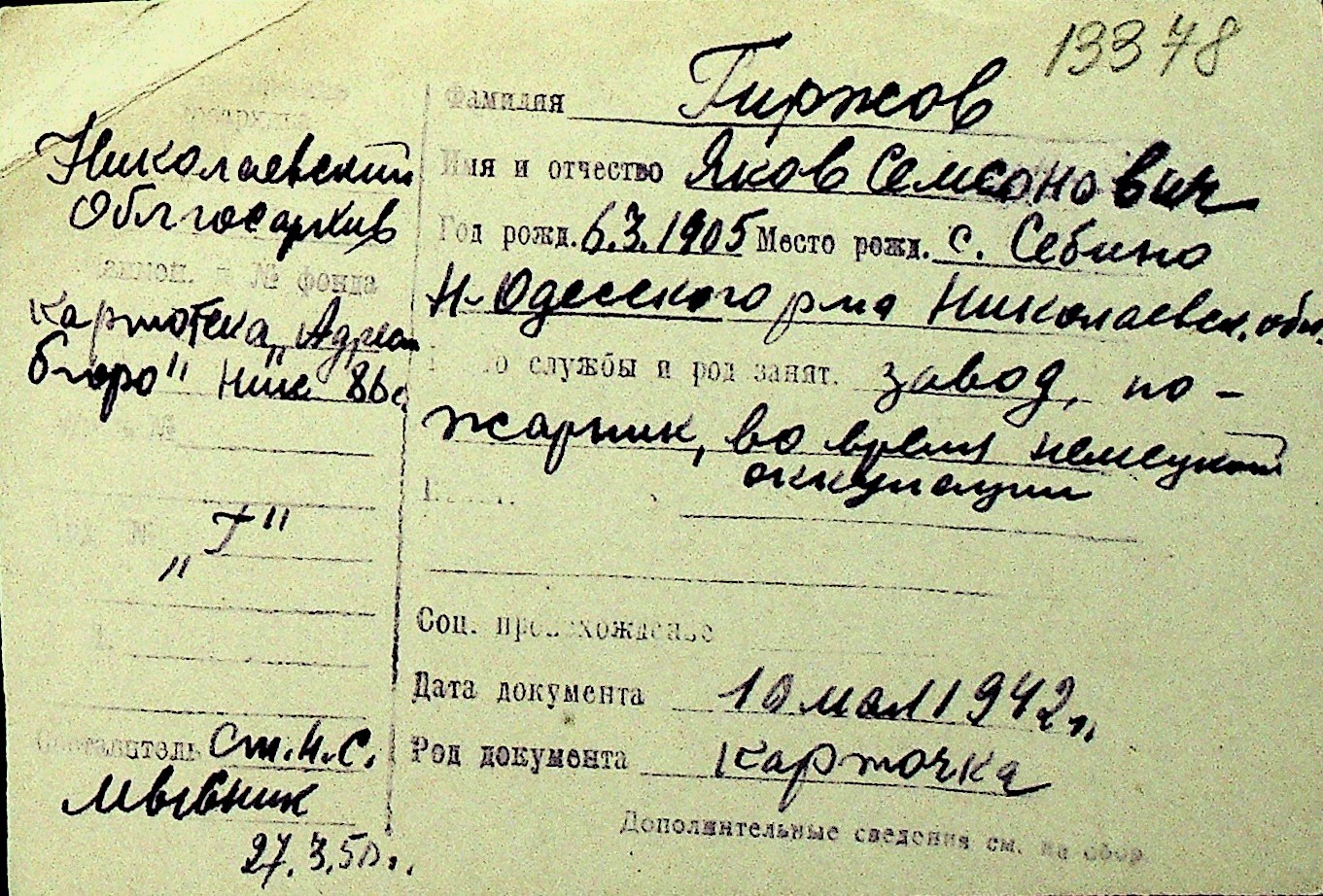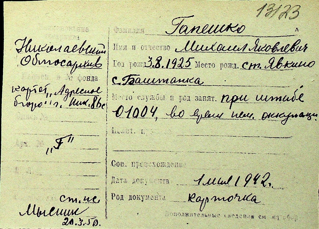 • • Перелік карток до фонду № Н-1016