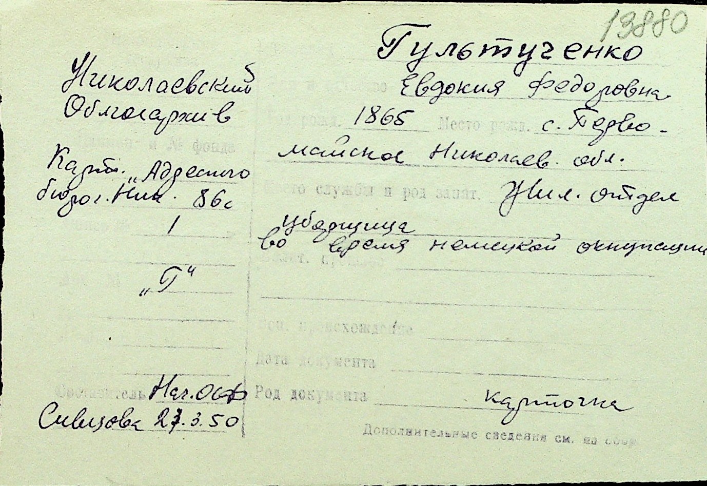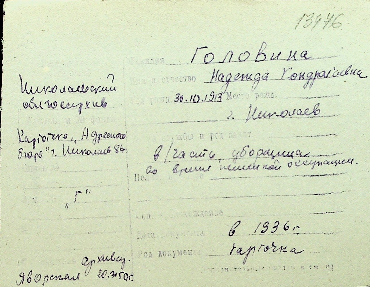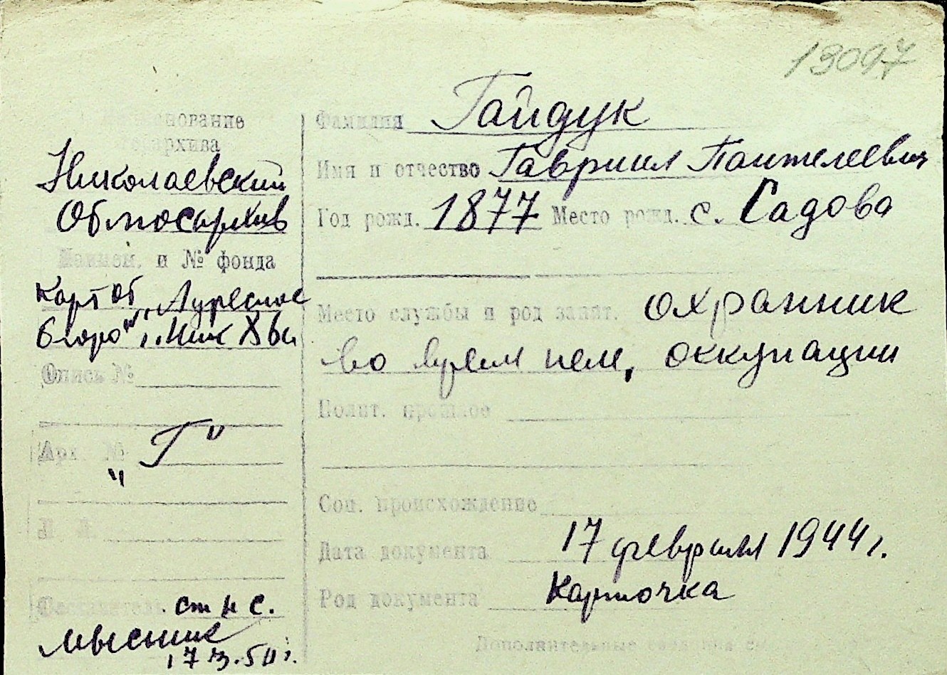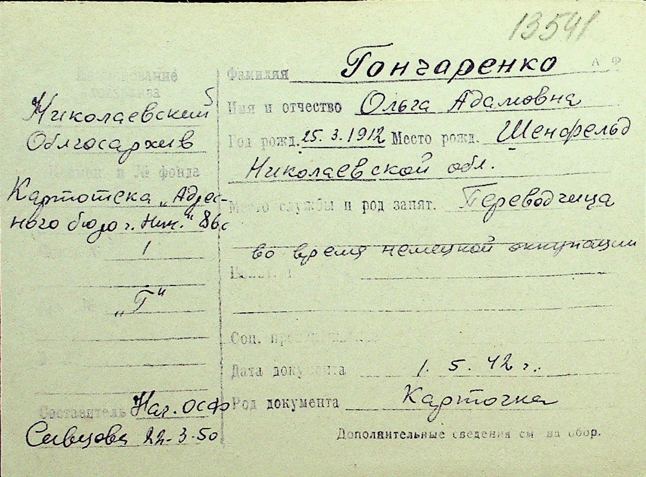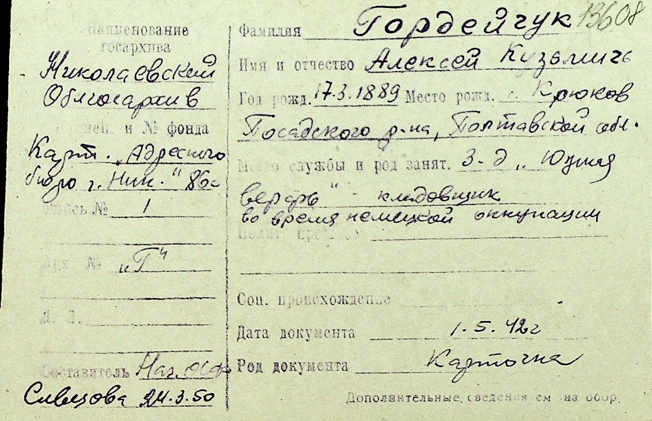 • • Перелік карток до фонду № Н-1016