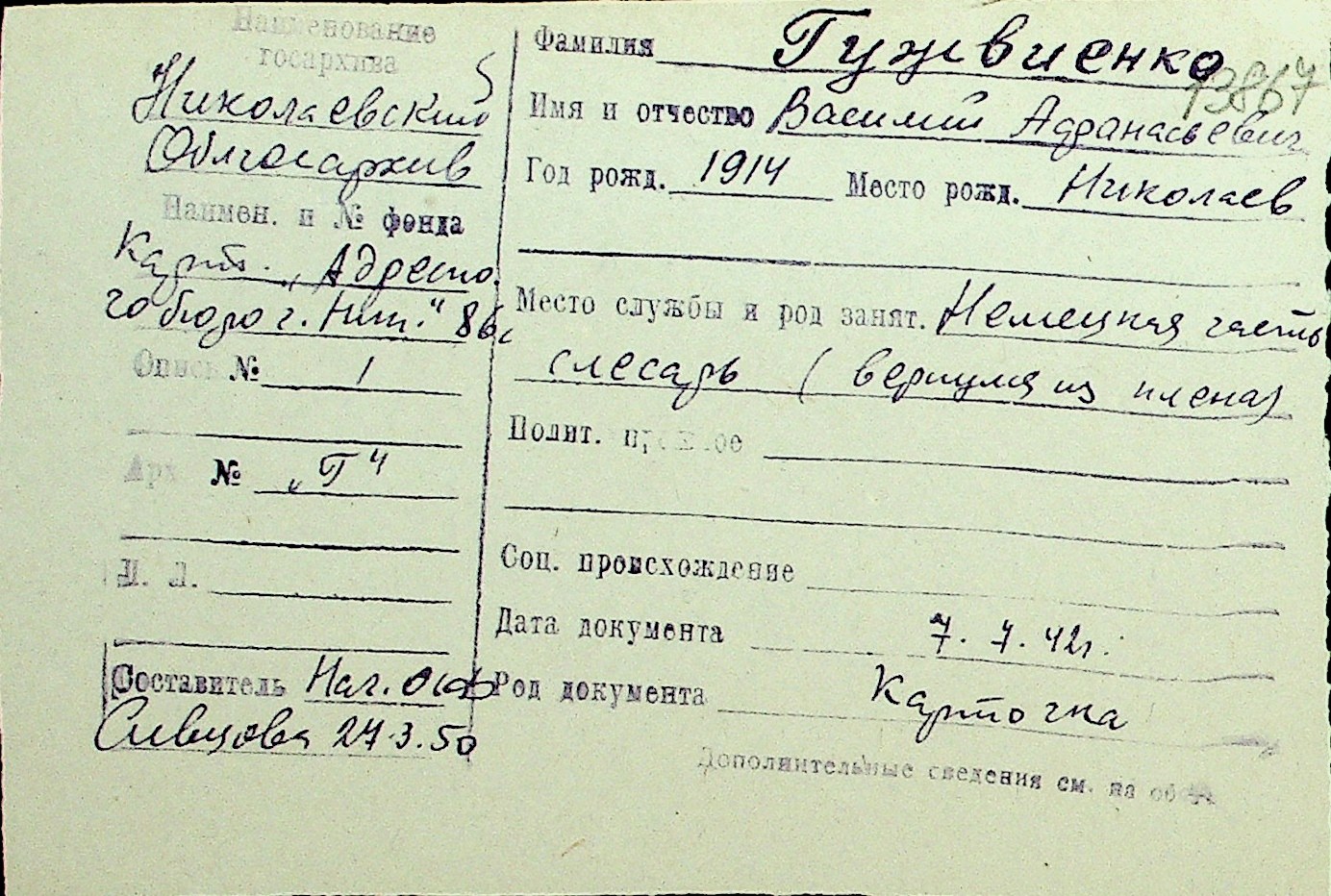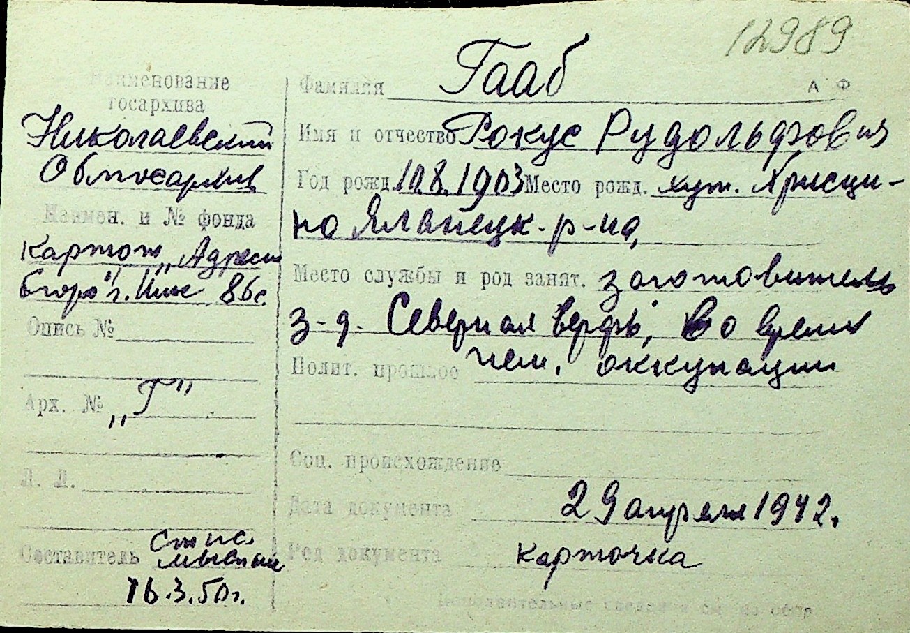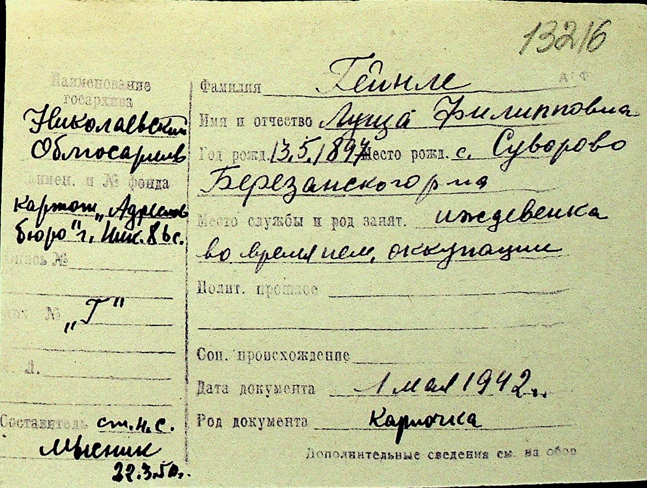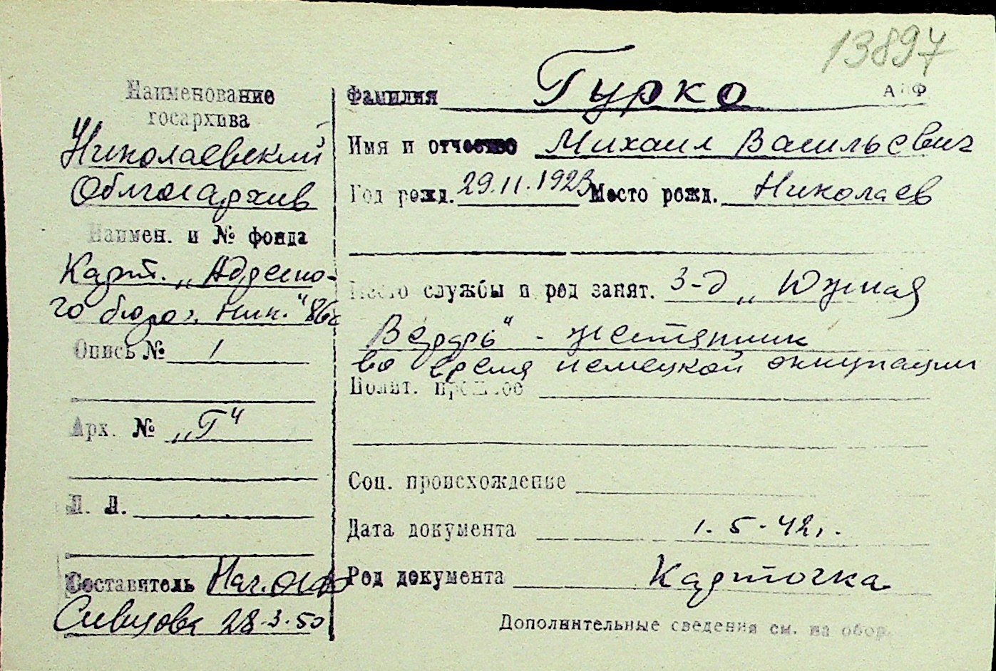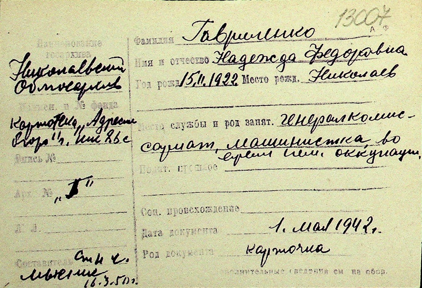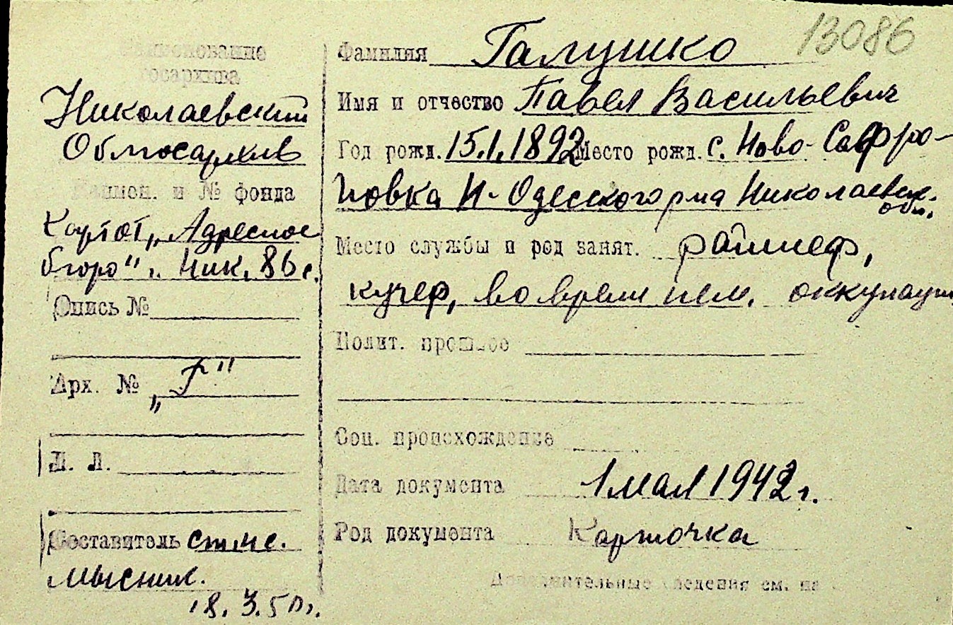 • • Перелік карток до фонду № Н-1016