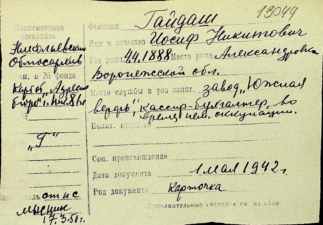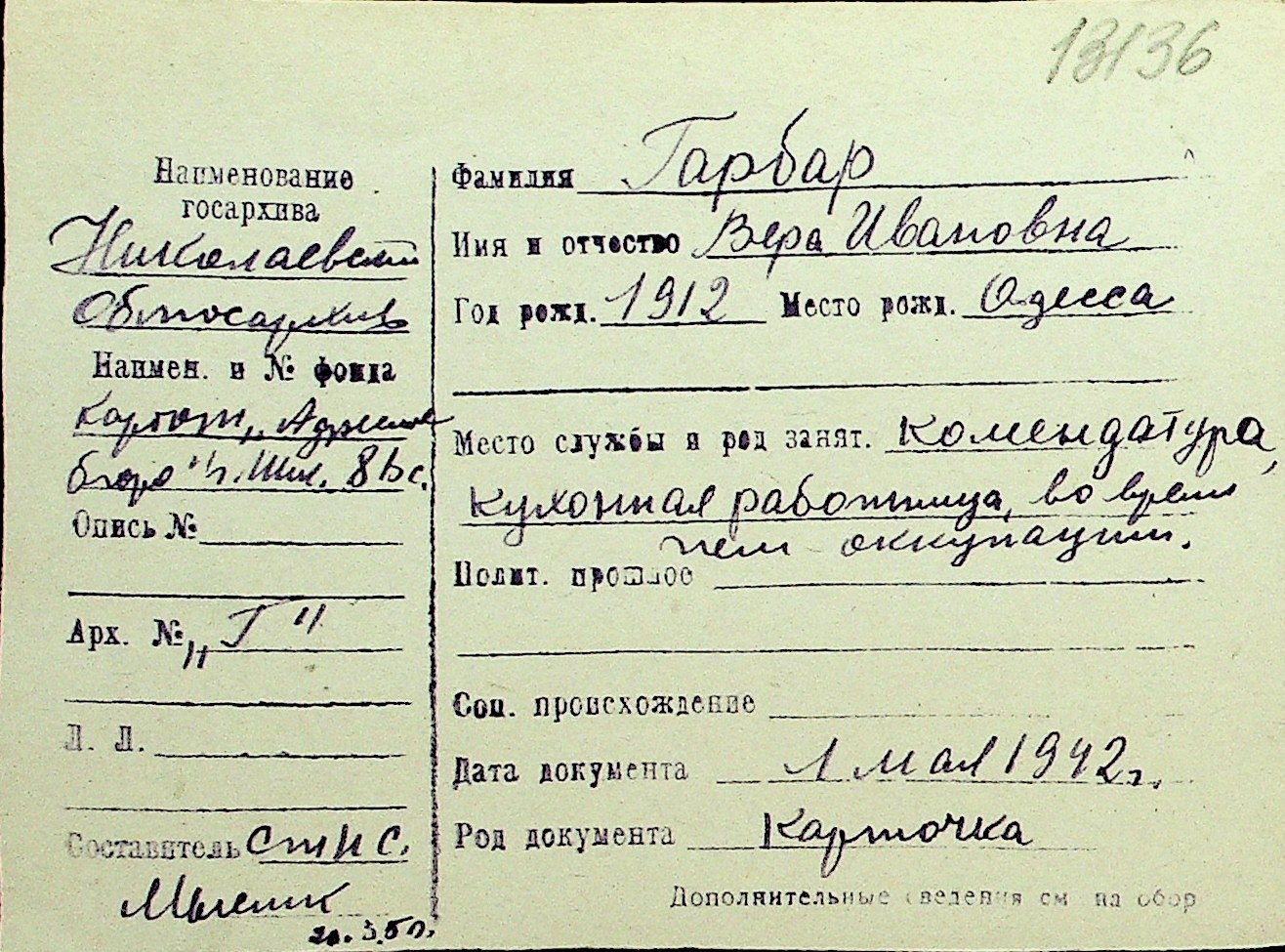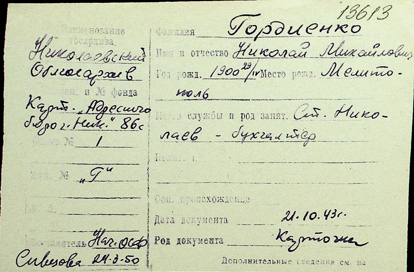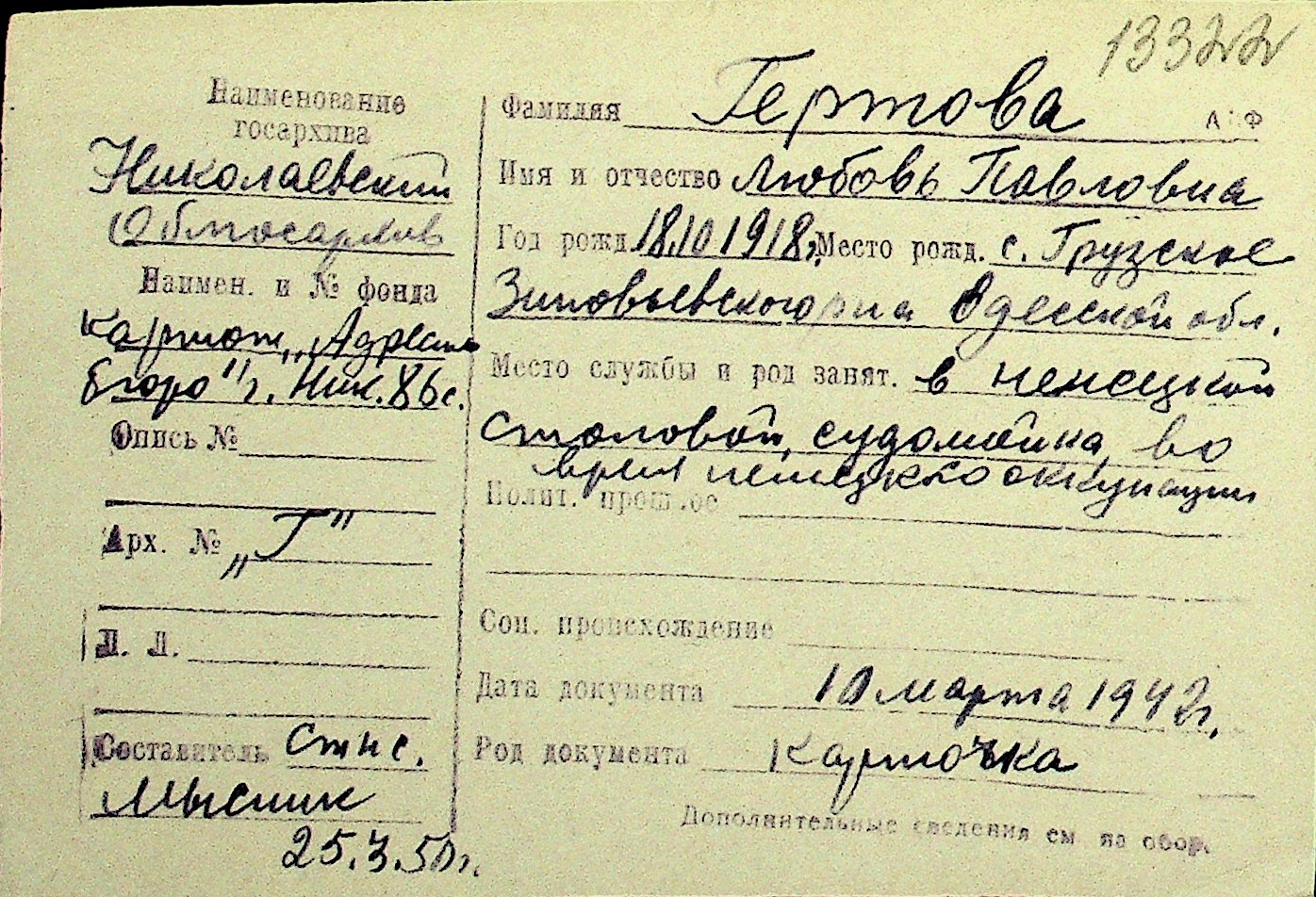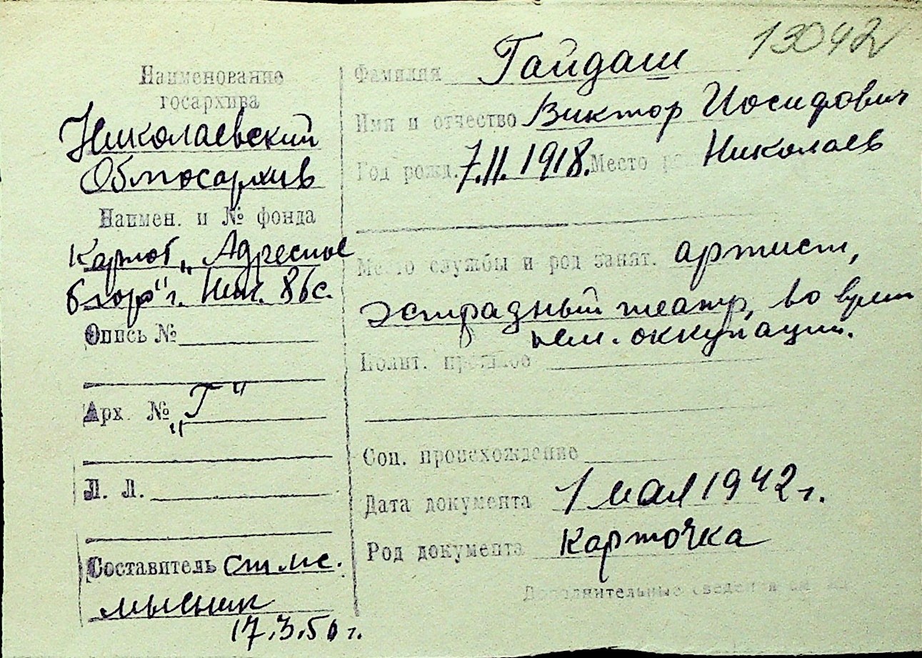 • • Перелік карток до фонду № Н-1016
