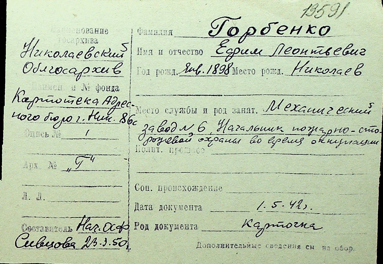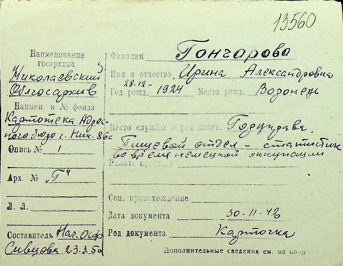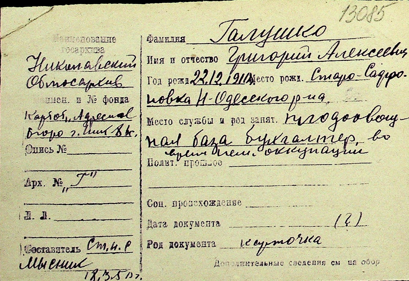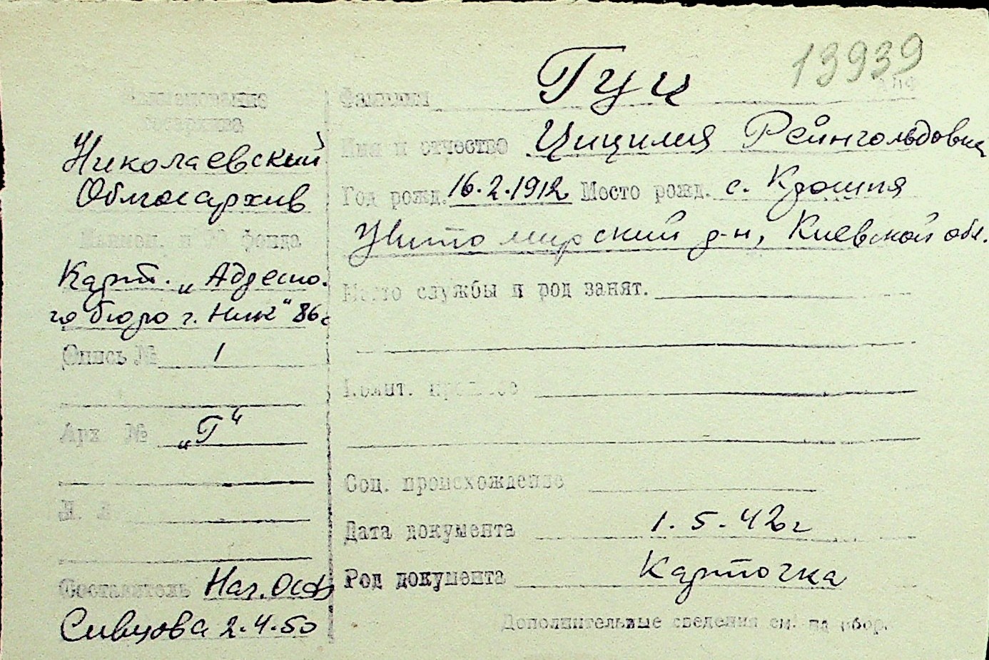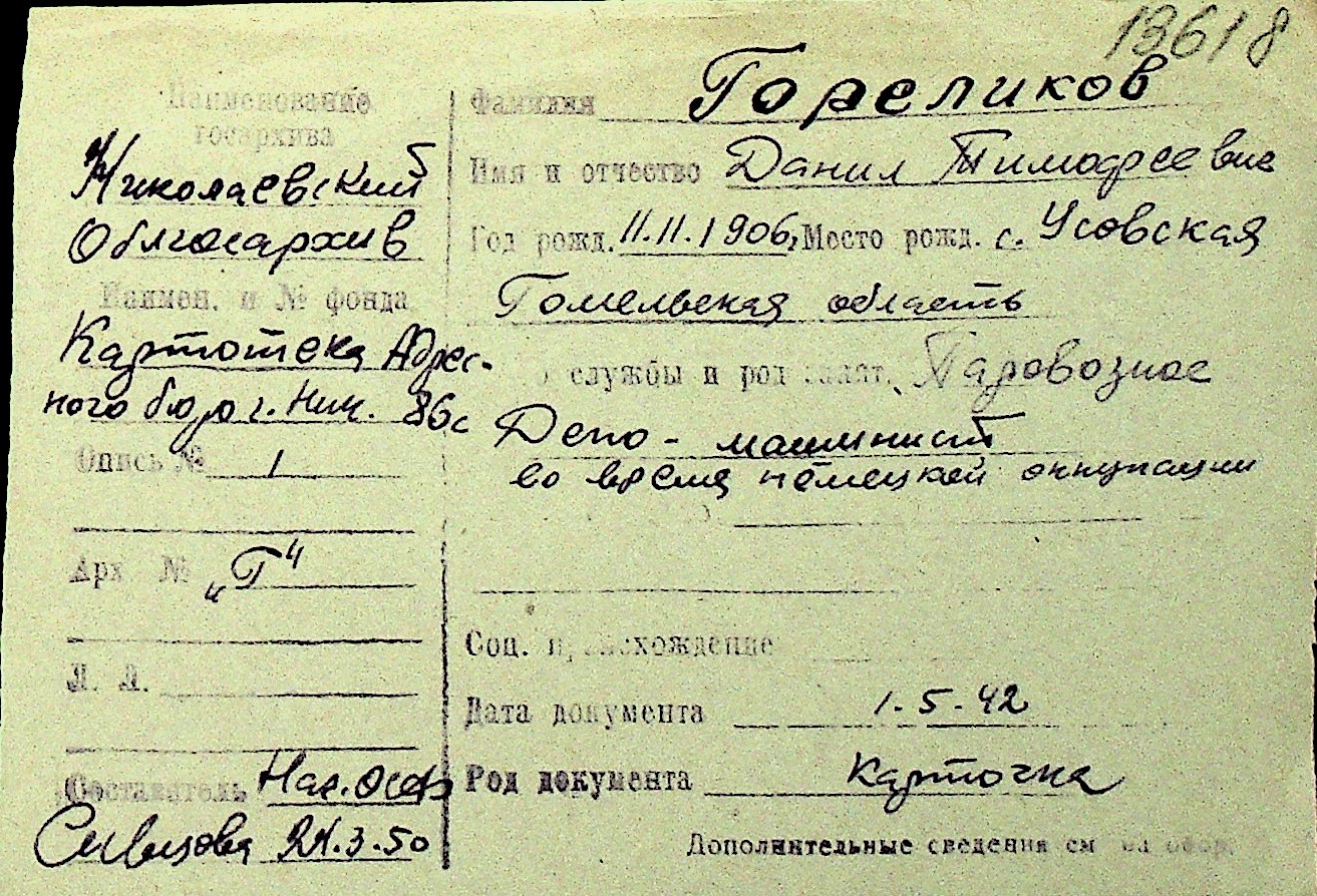 • • Перелік карток до фонду № Н-1016