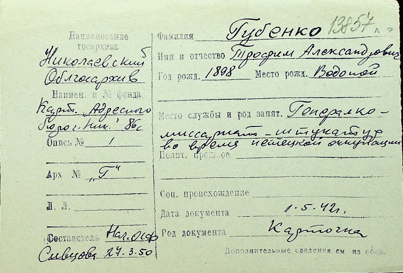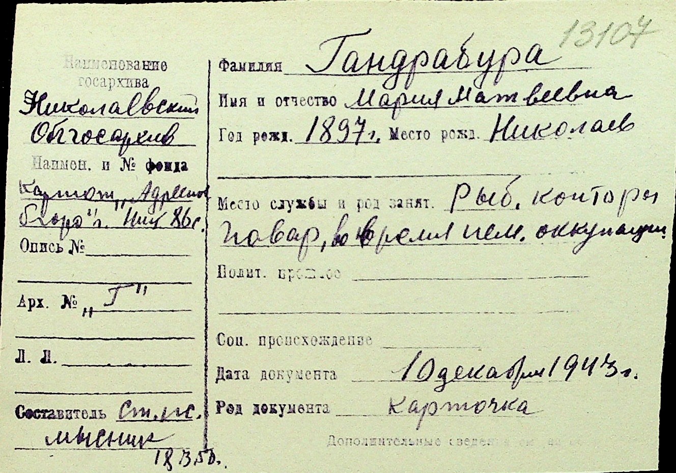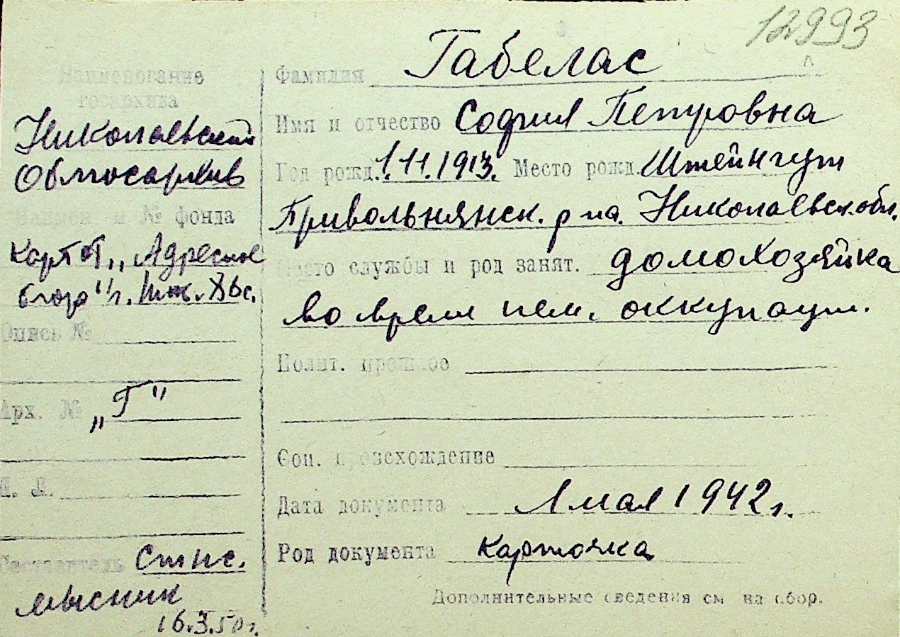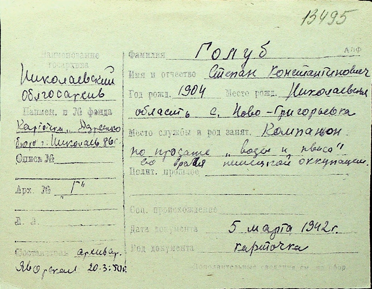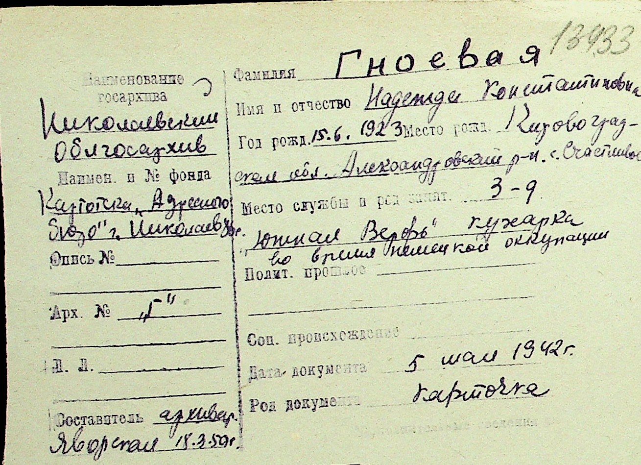 • • Перелік карток до фонду № Н-1016