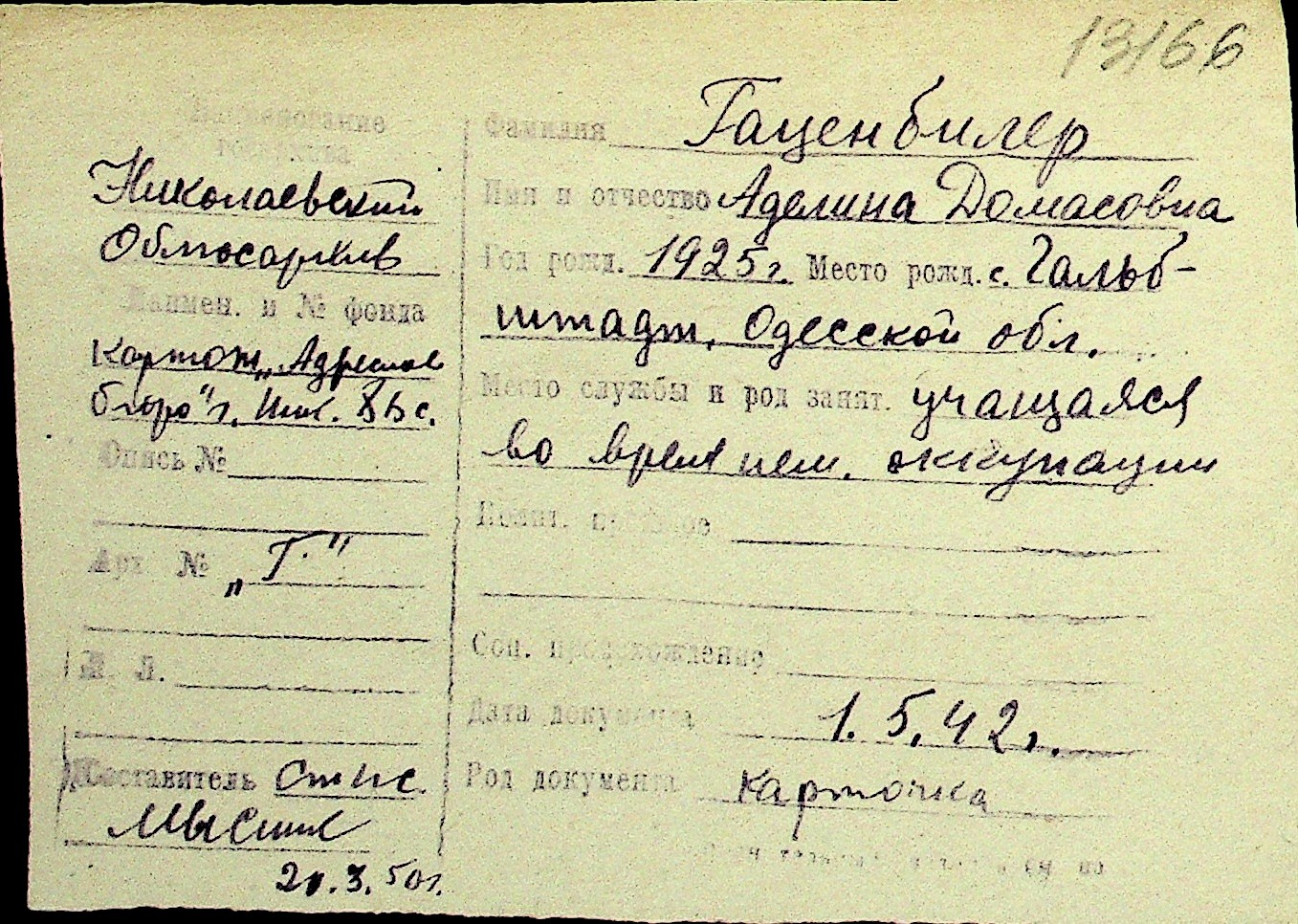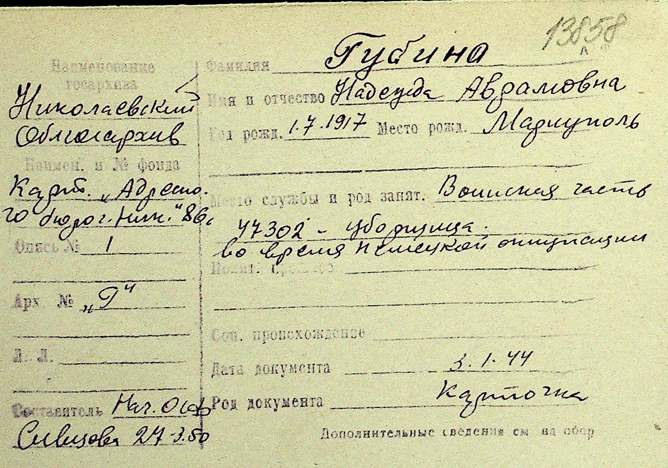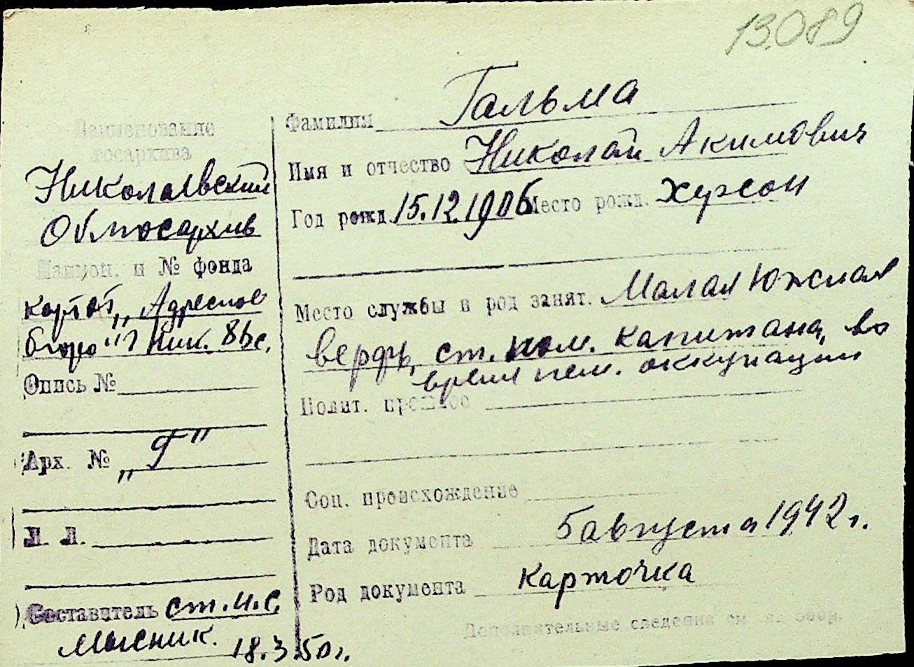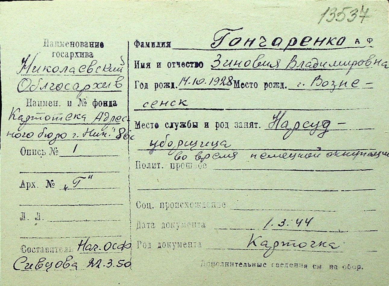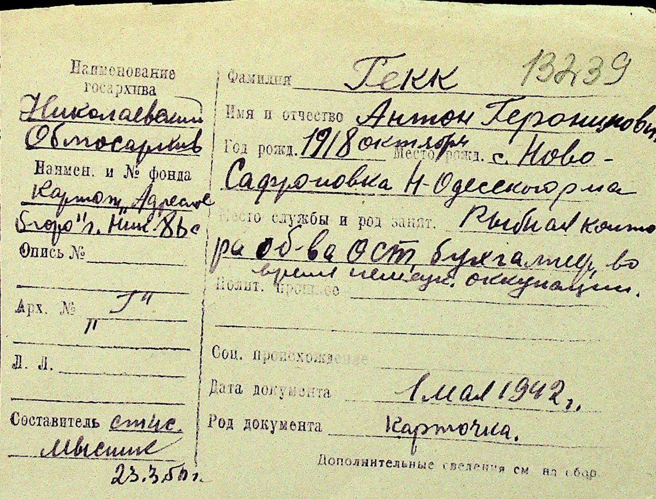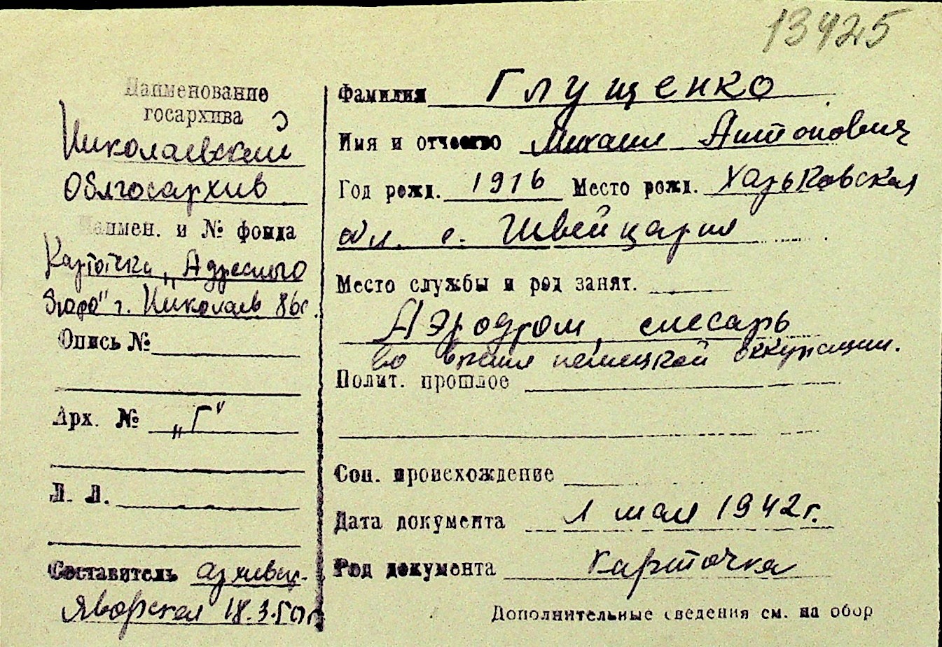 • • Перелік карток до фонду № Н-1016