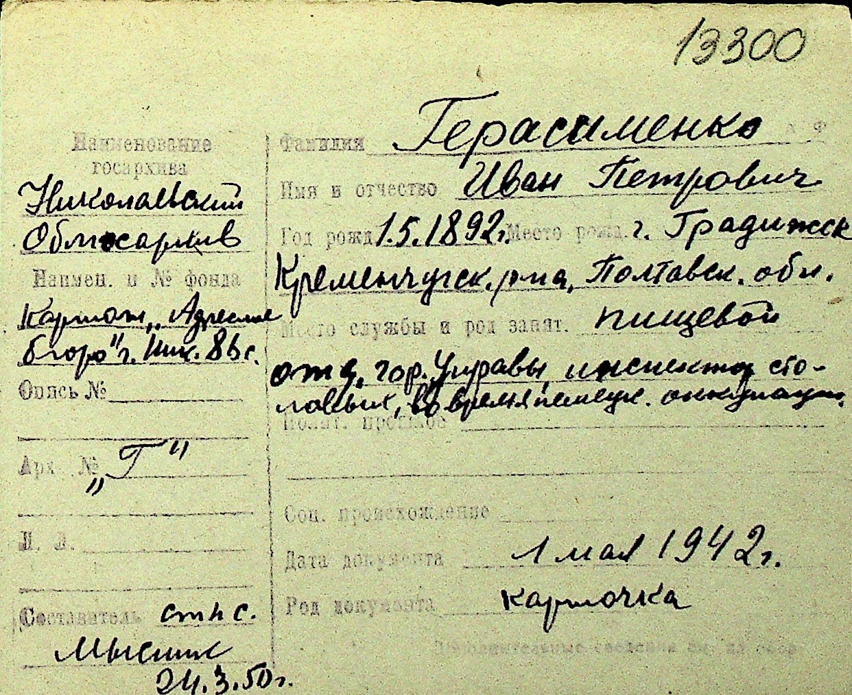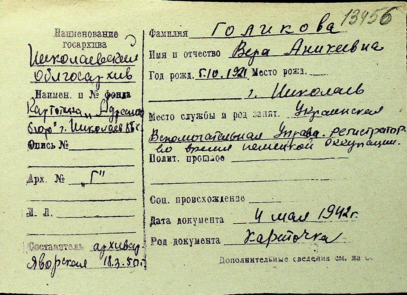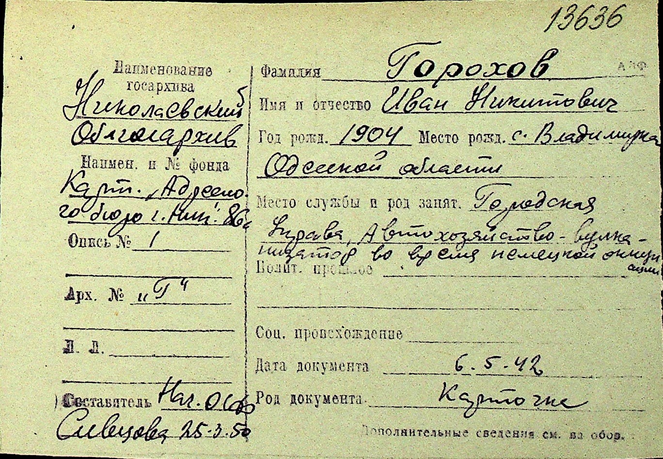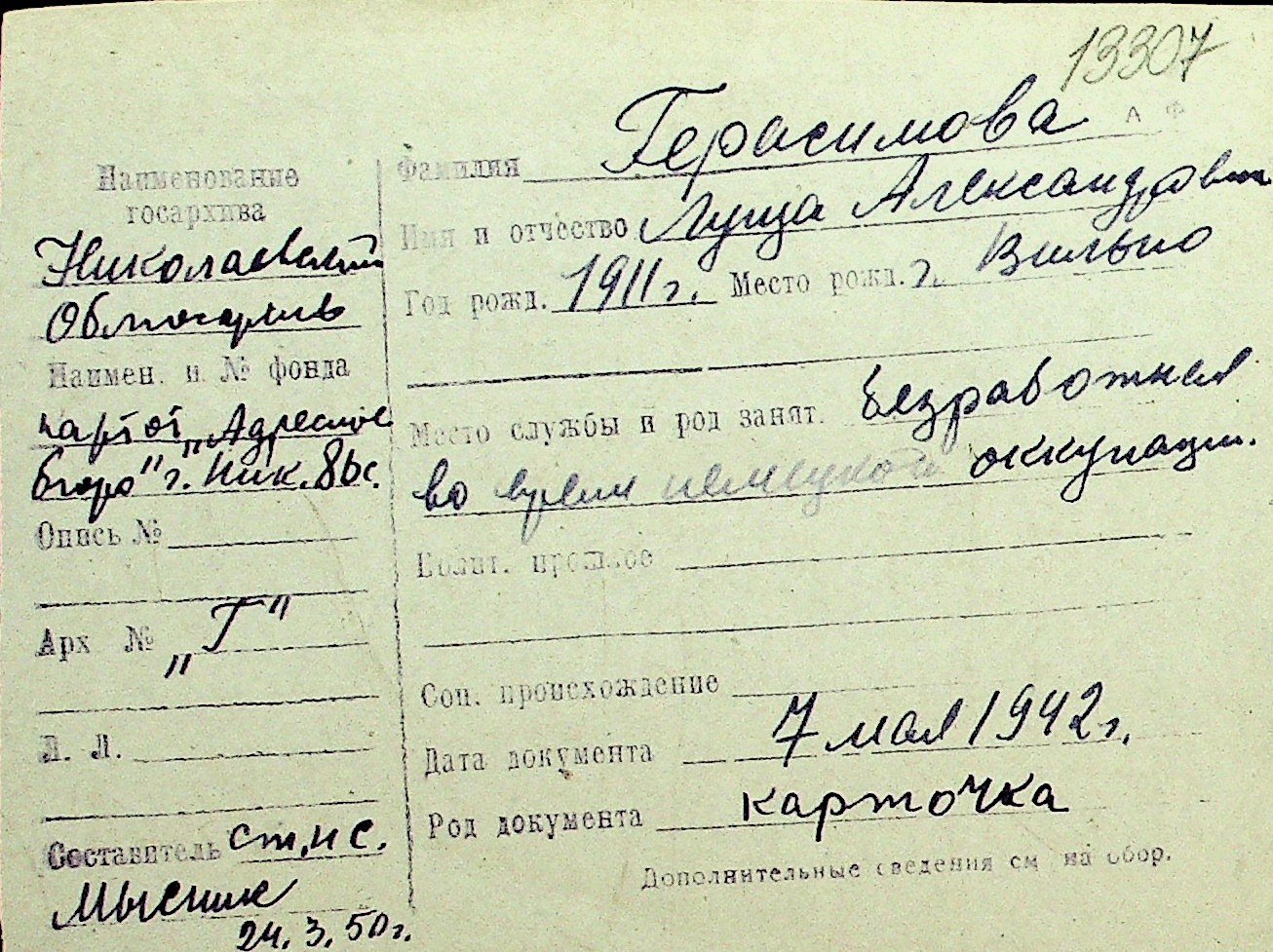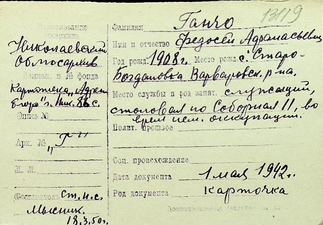 • • Перелік карток до фонду № Н-1016