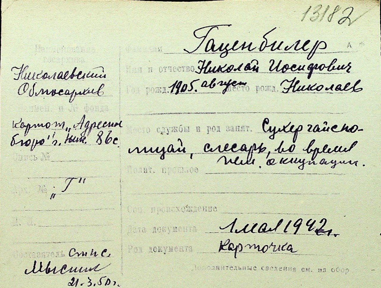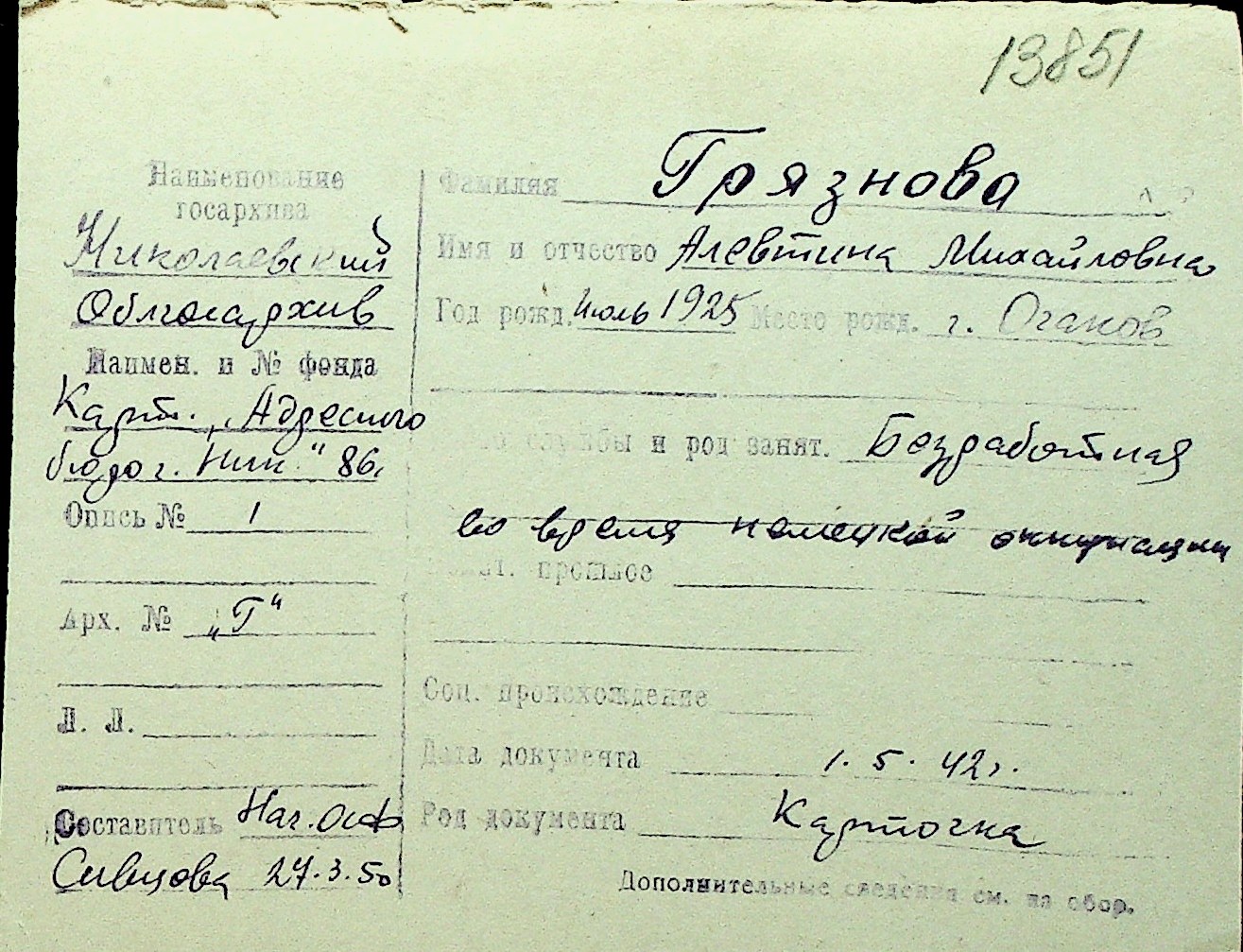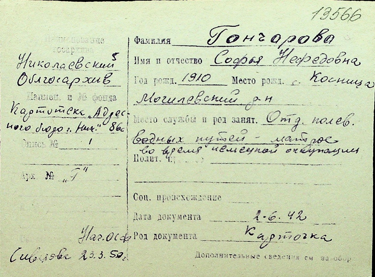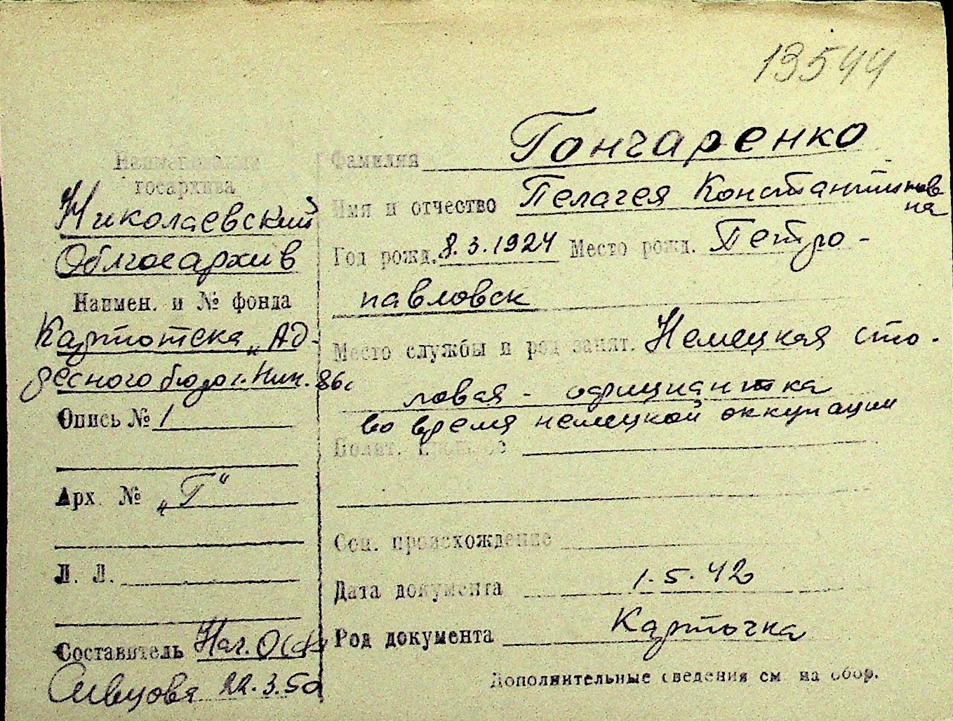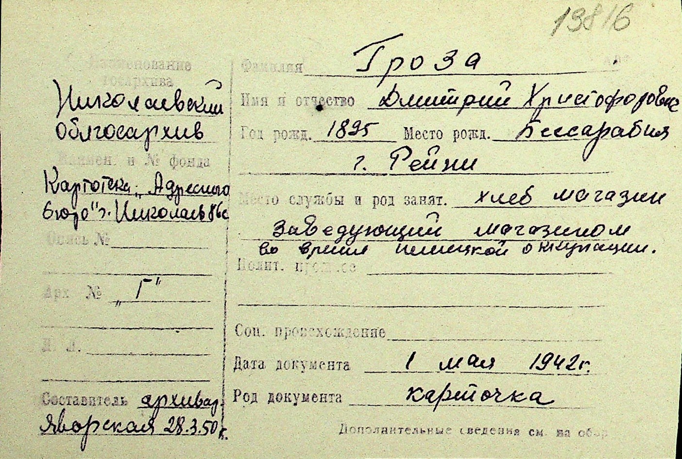 • • Перелік карток до фонду № Н-1016
