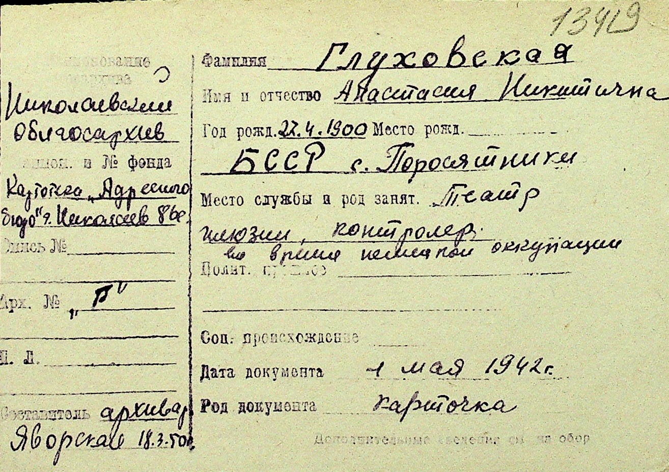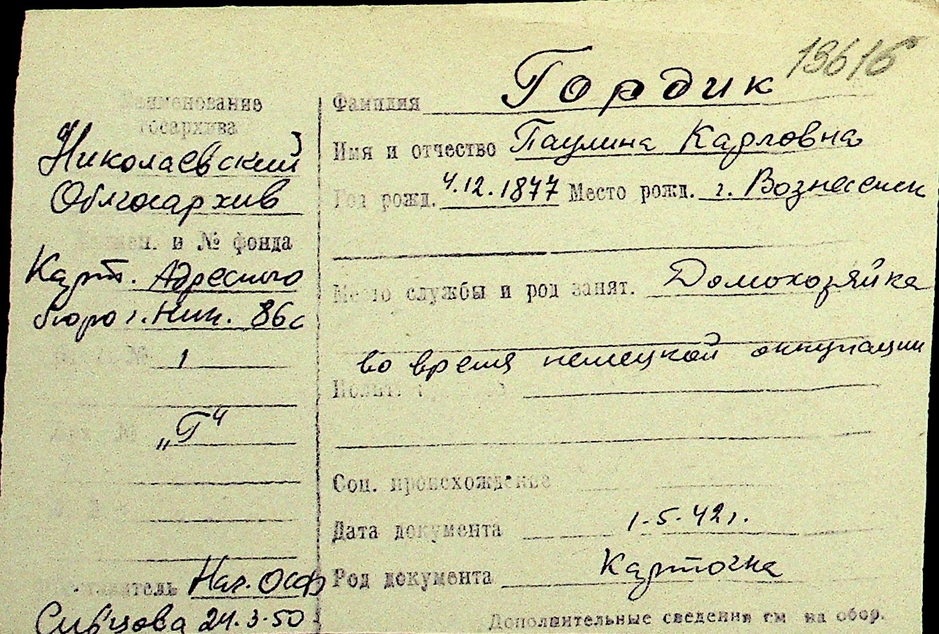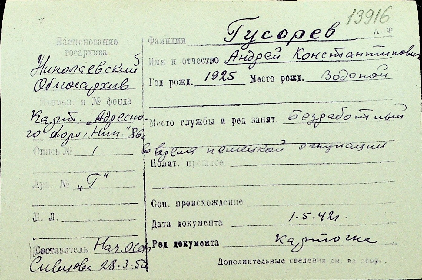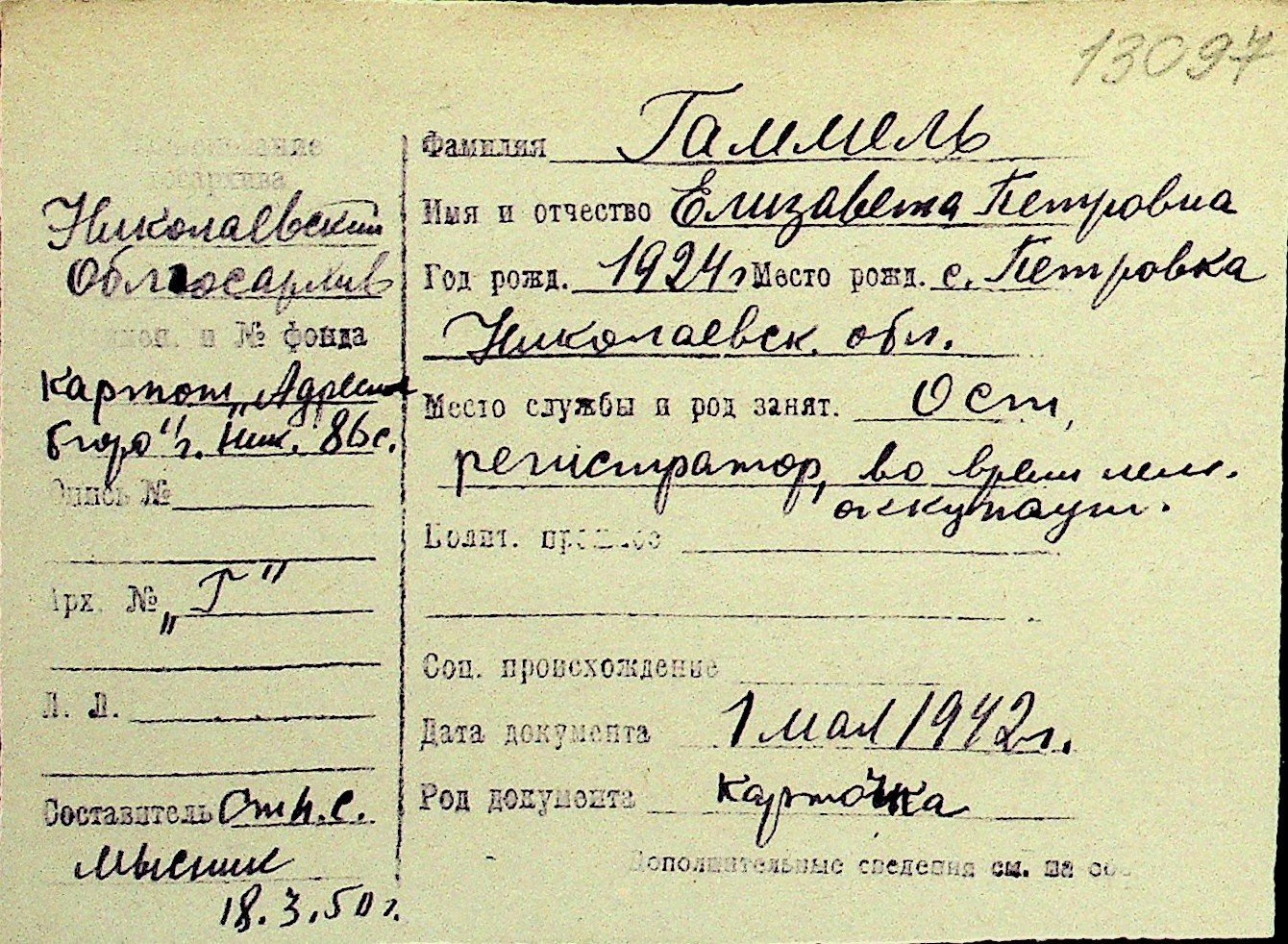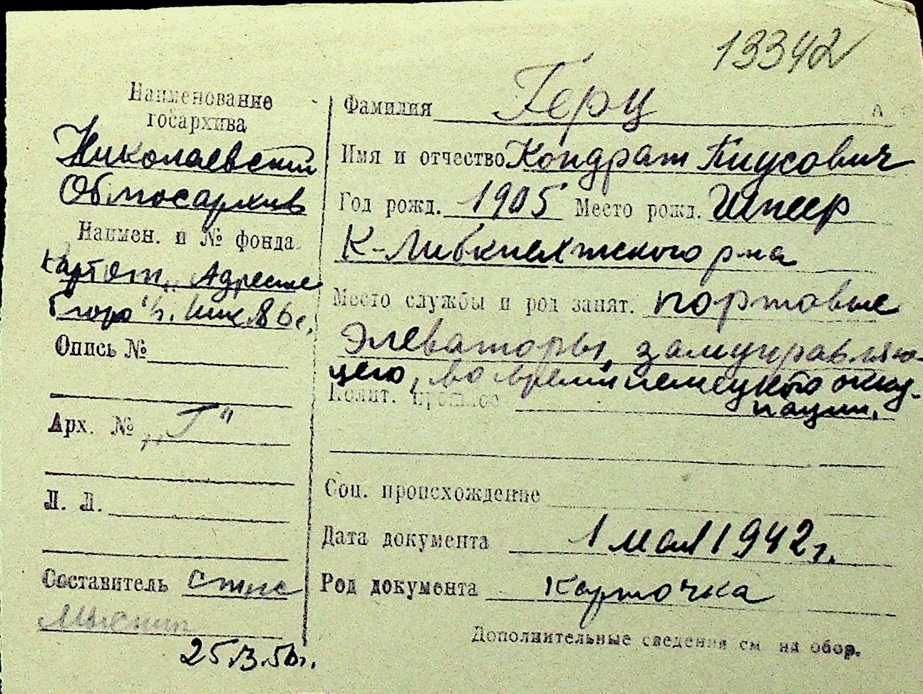 • • Перелік карток до фонду № Н-1016