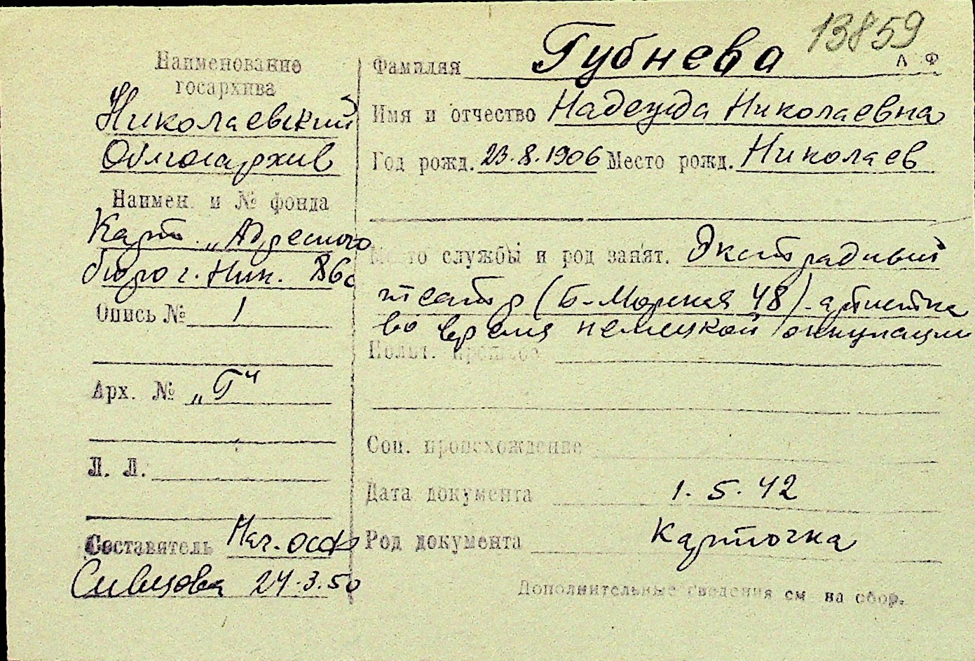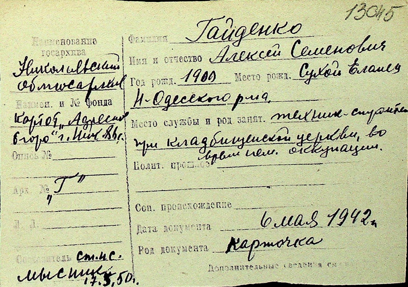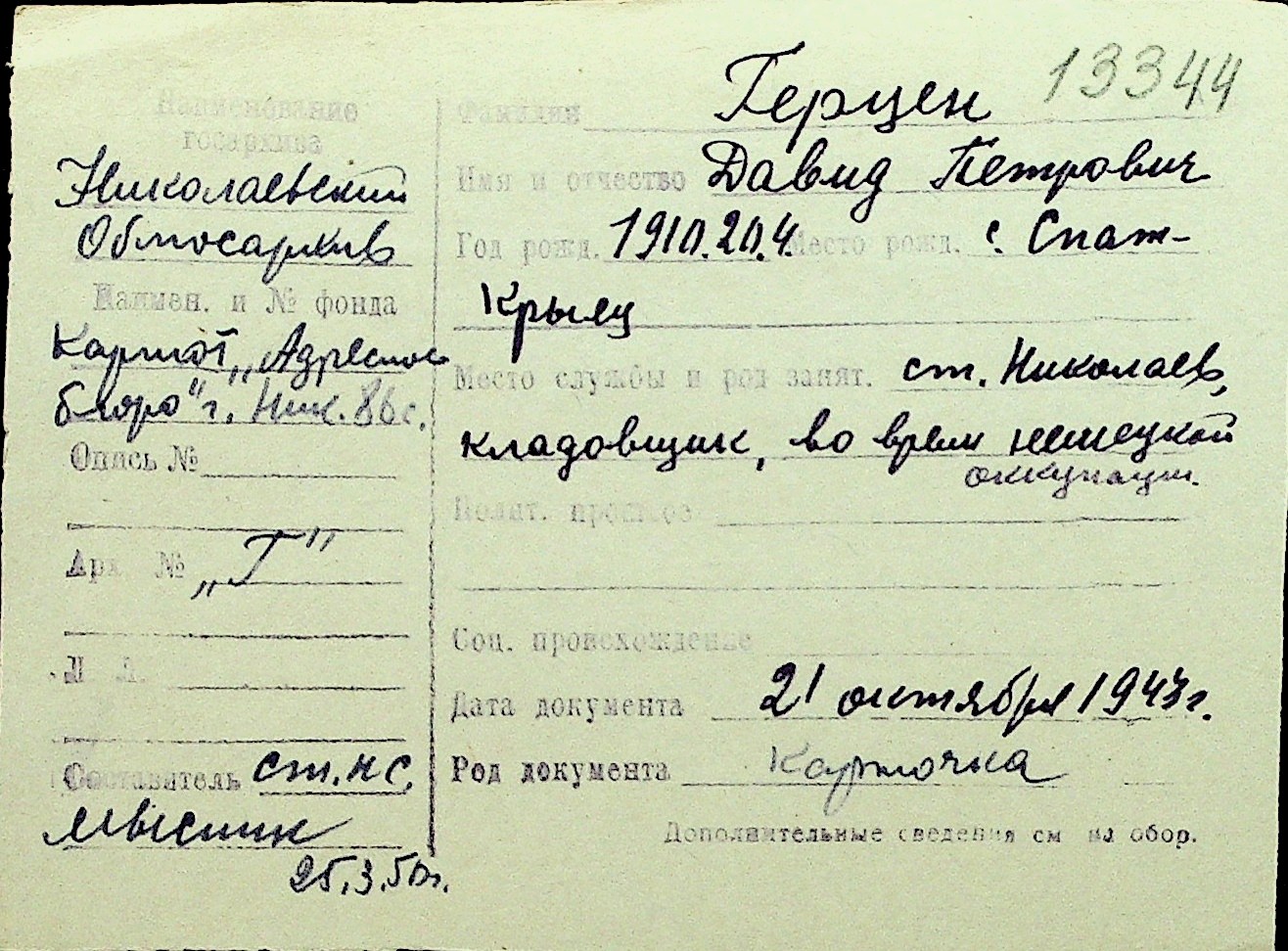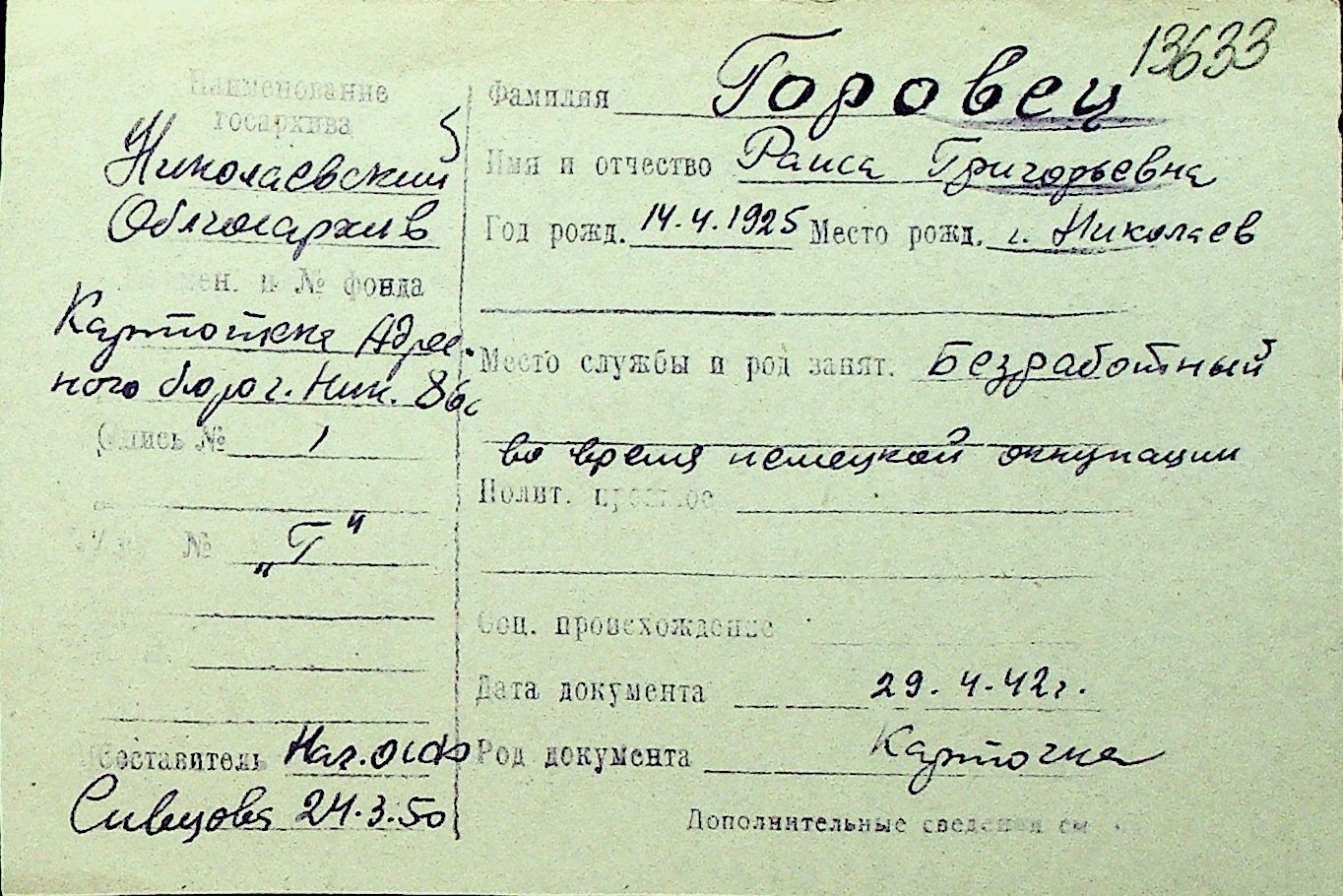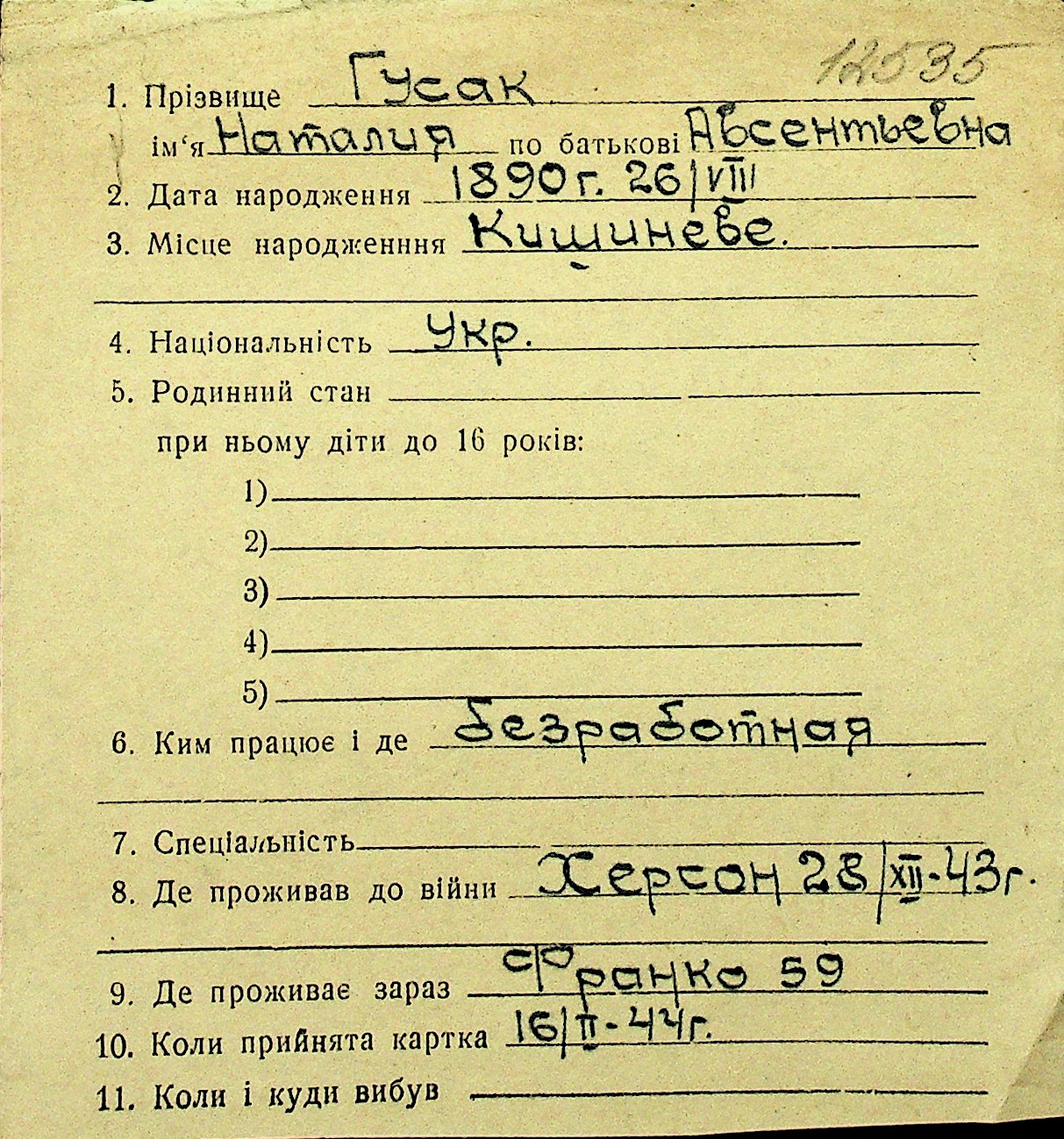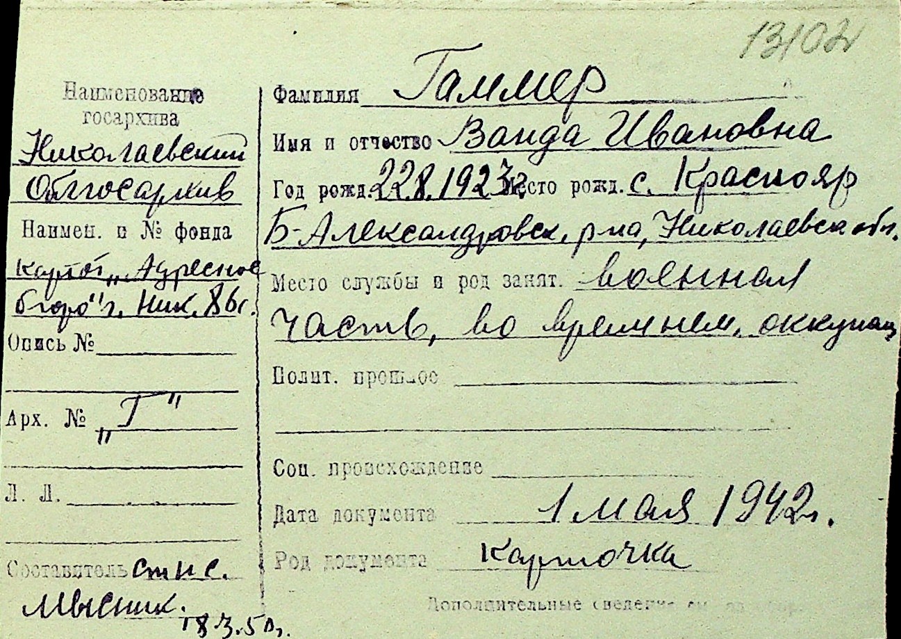 • • Перелік карток до фонду № Н-1016