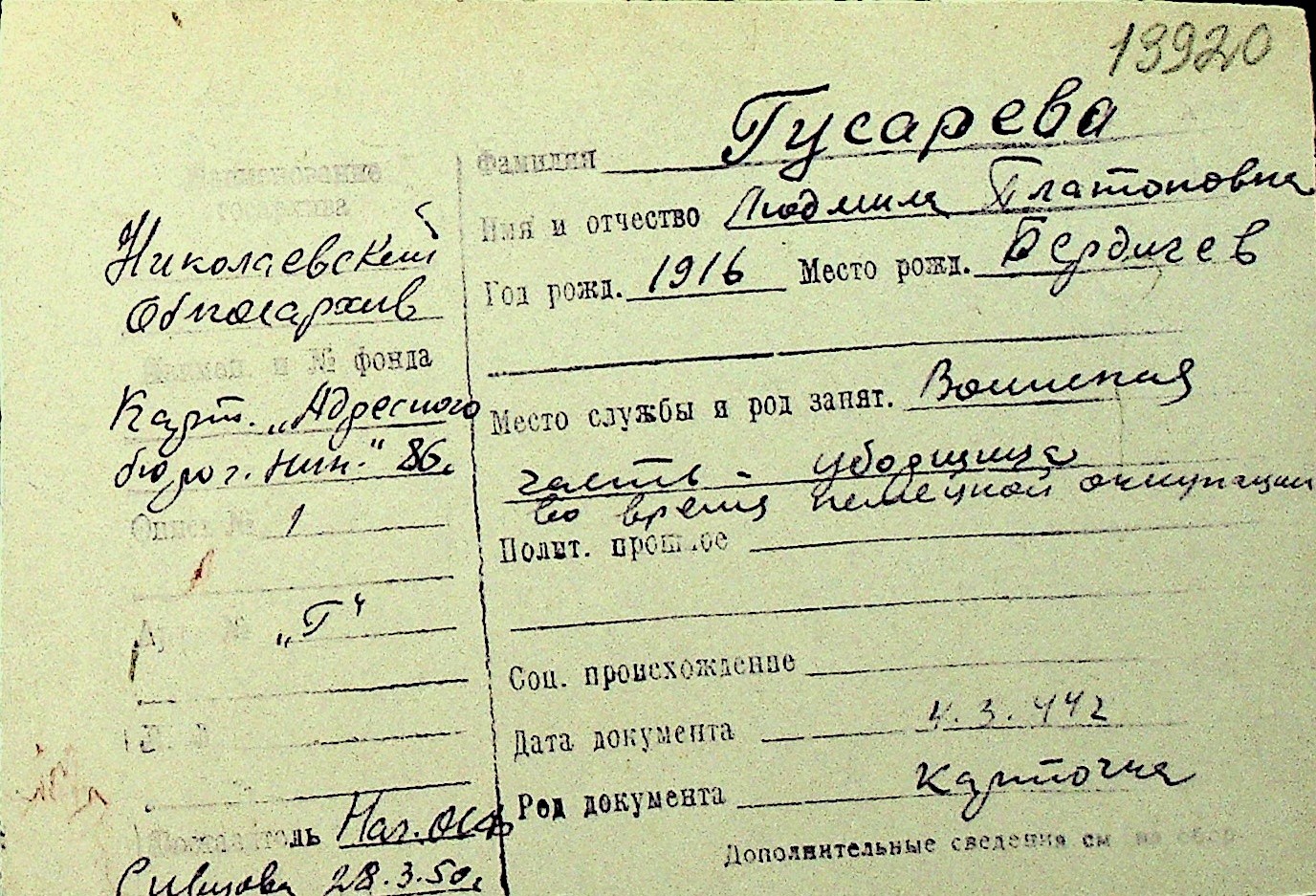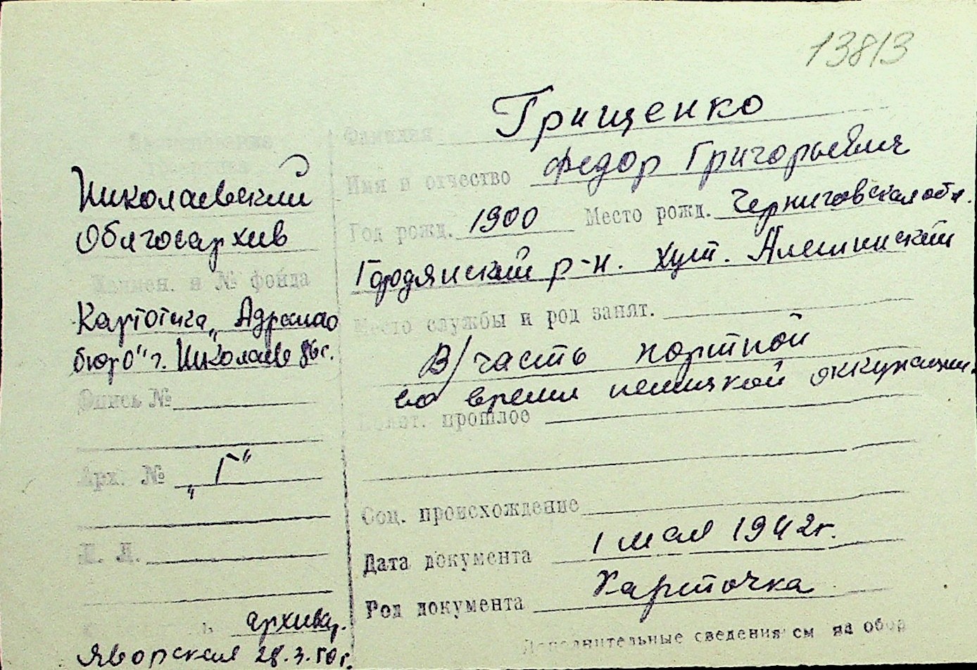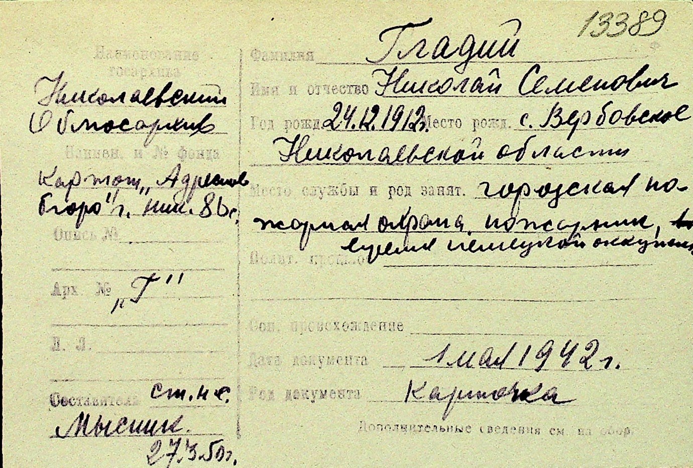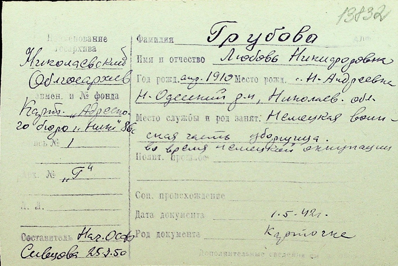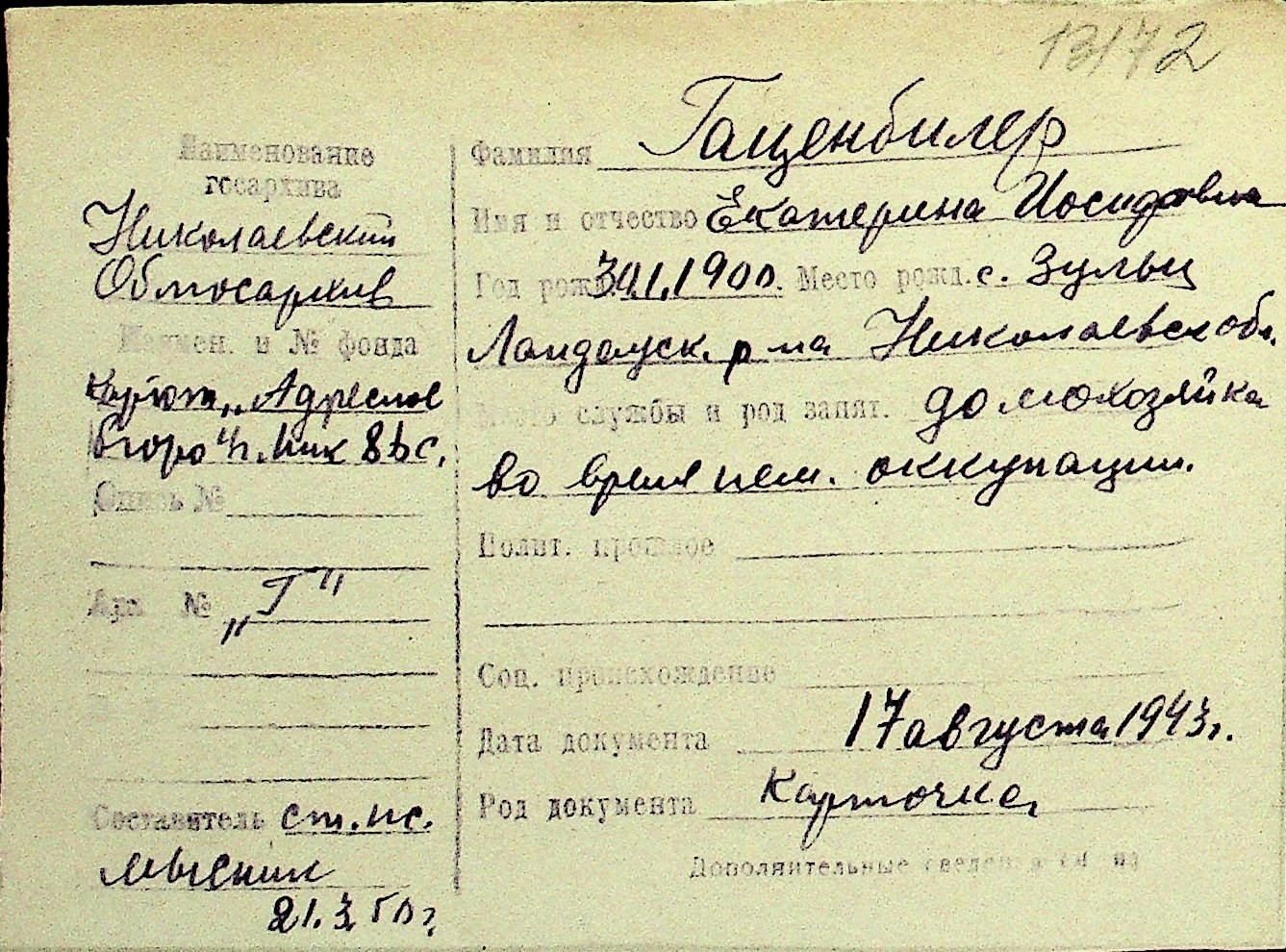 • • Перелік карток до фонду № Н-1016