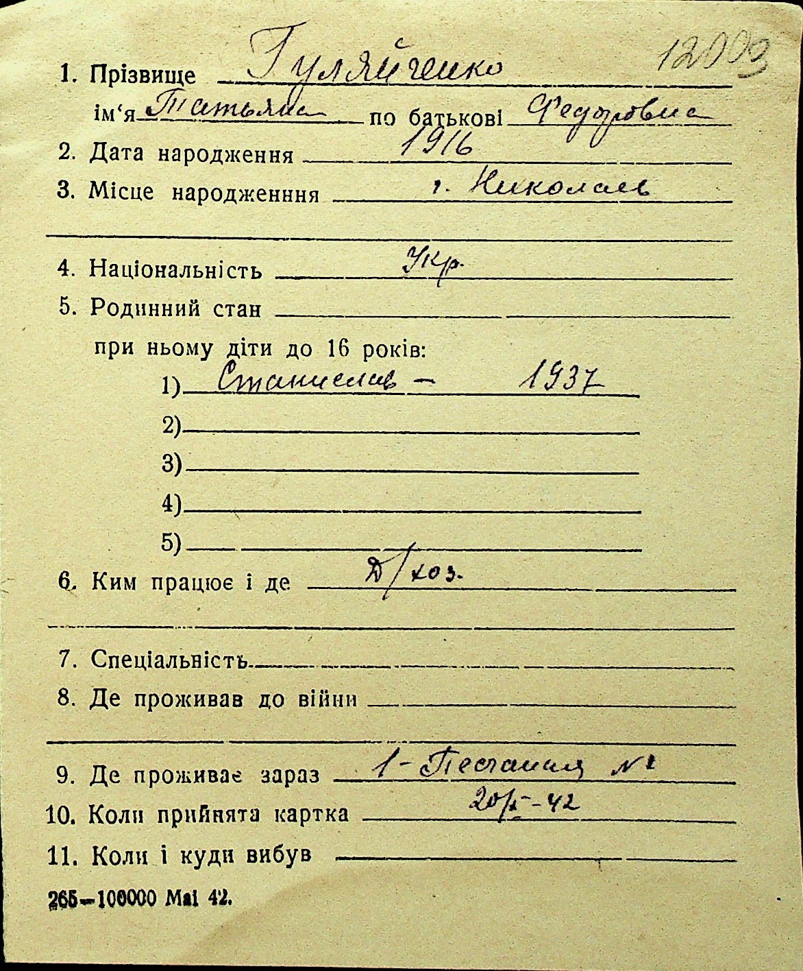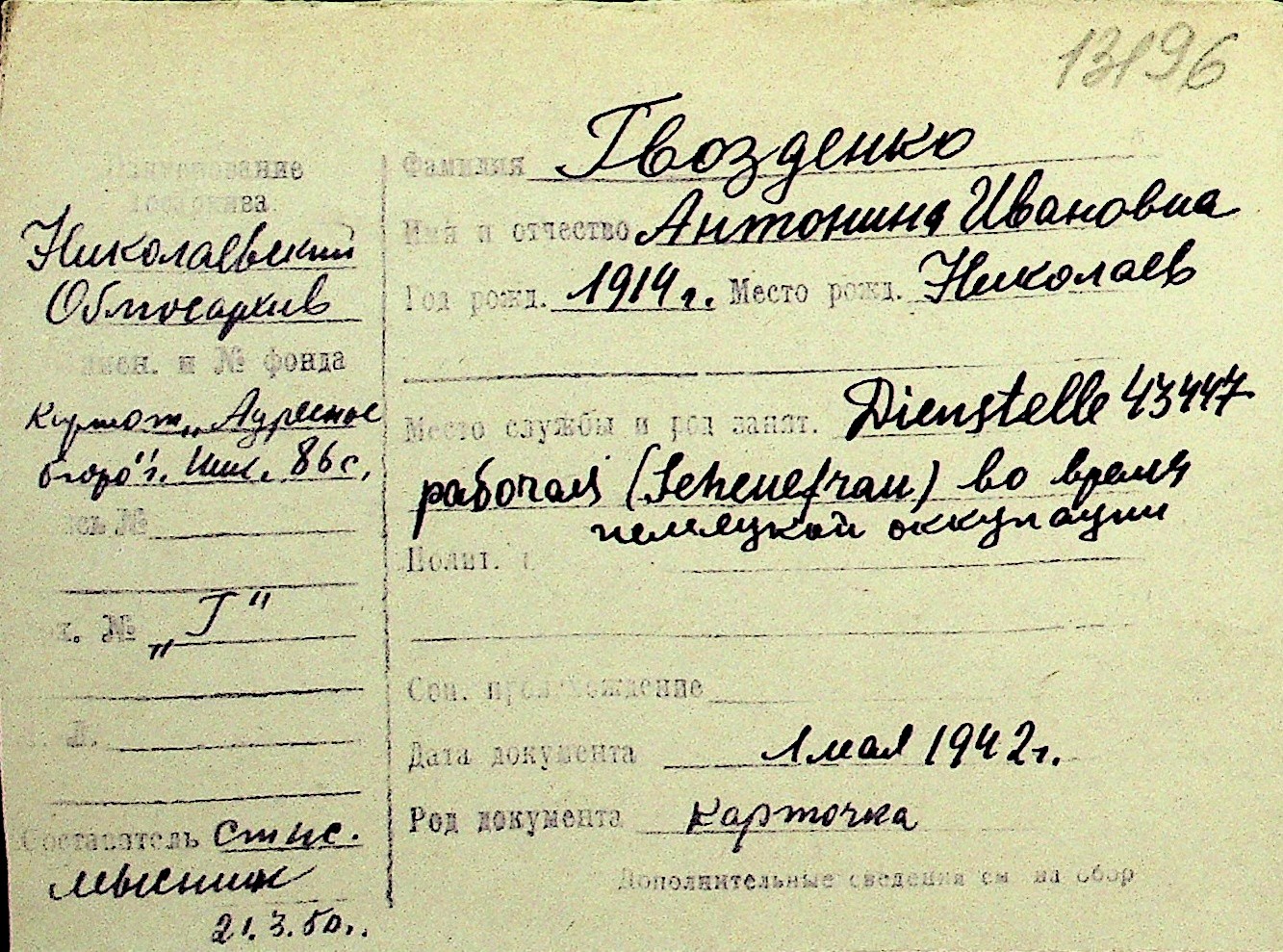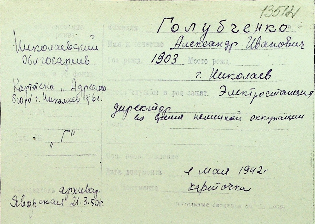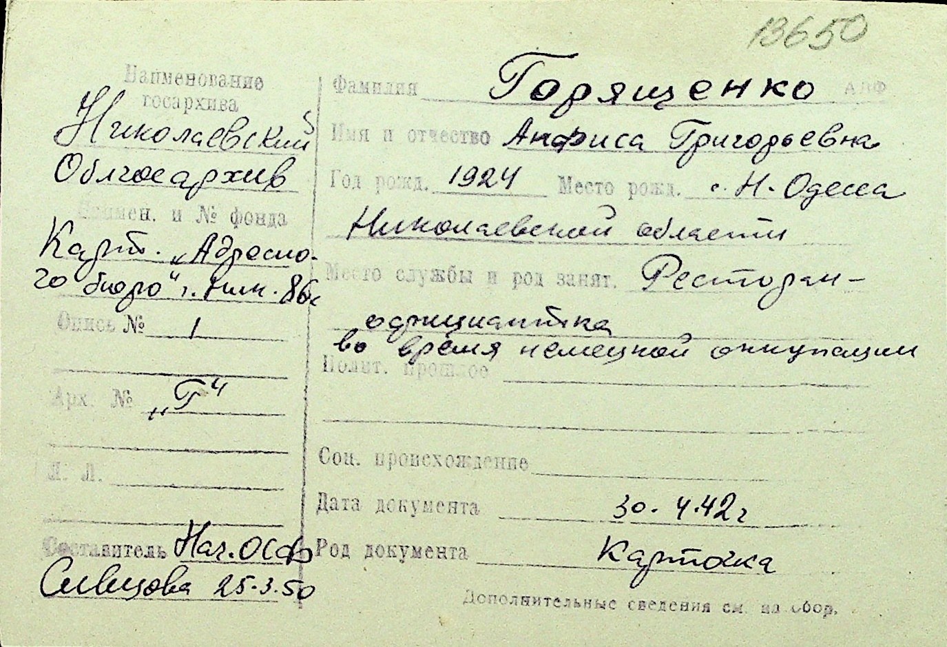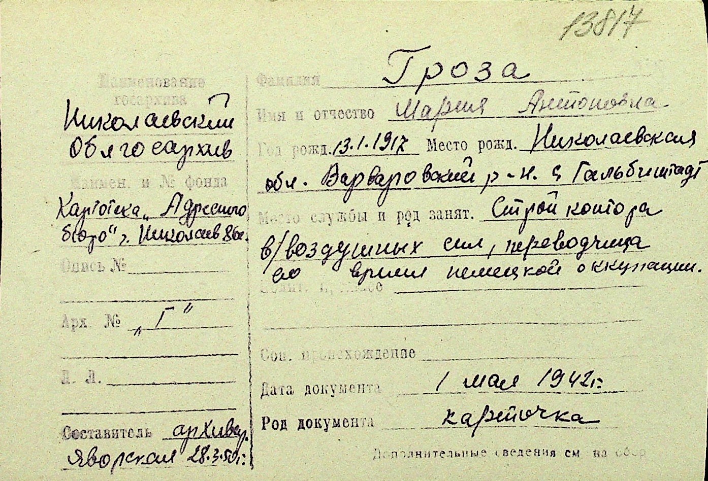 • • Перелік карток до фонду № Н-1016