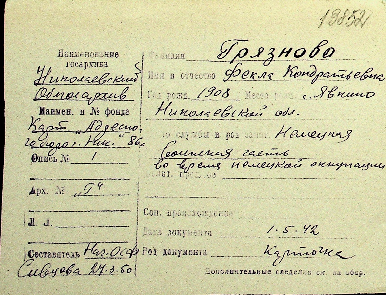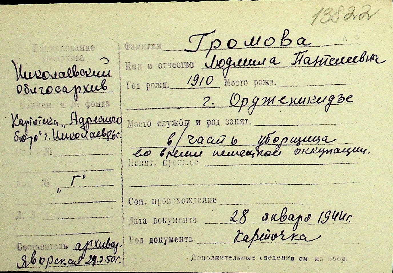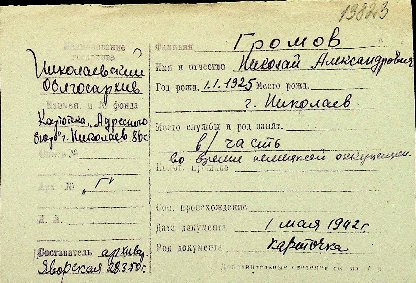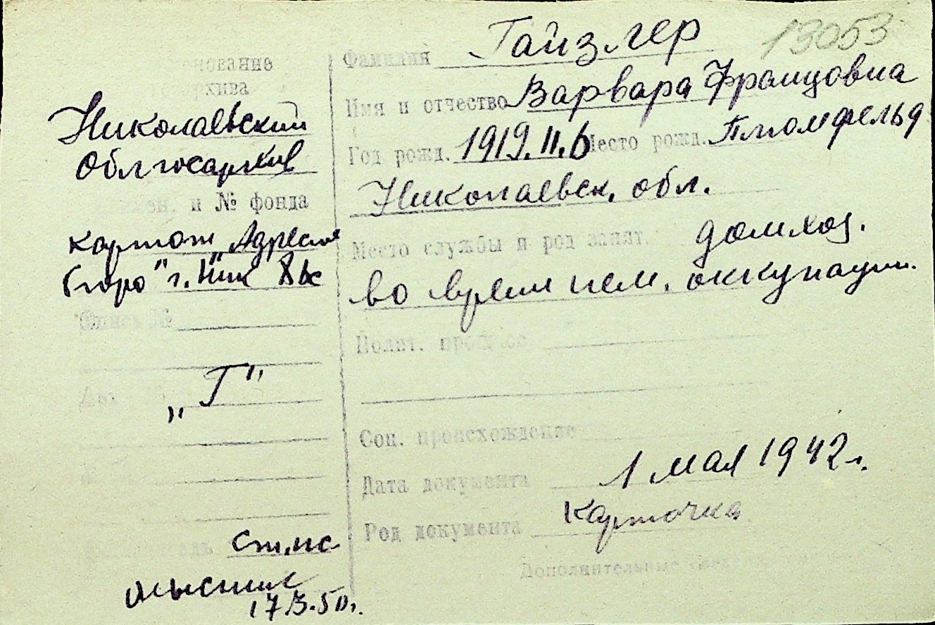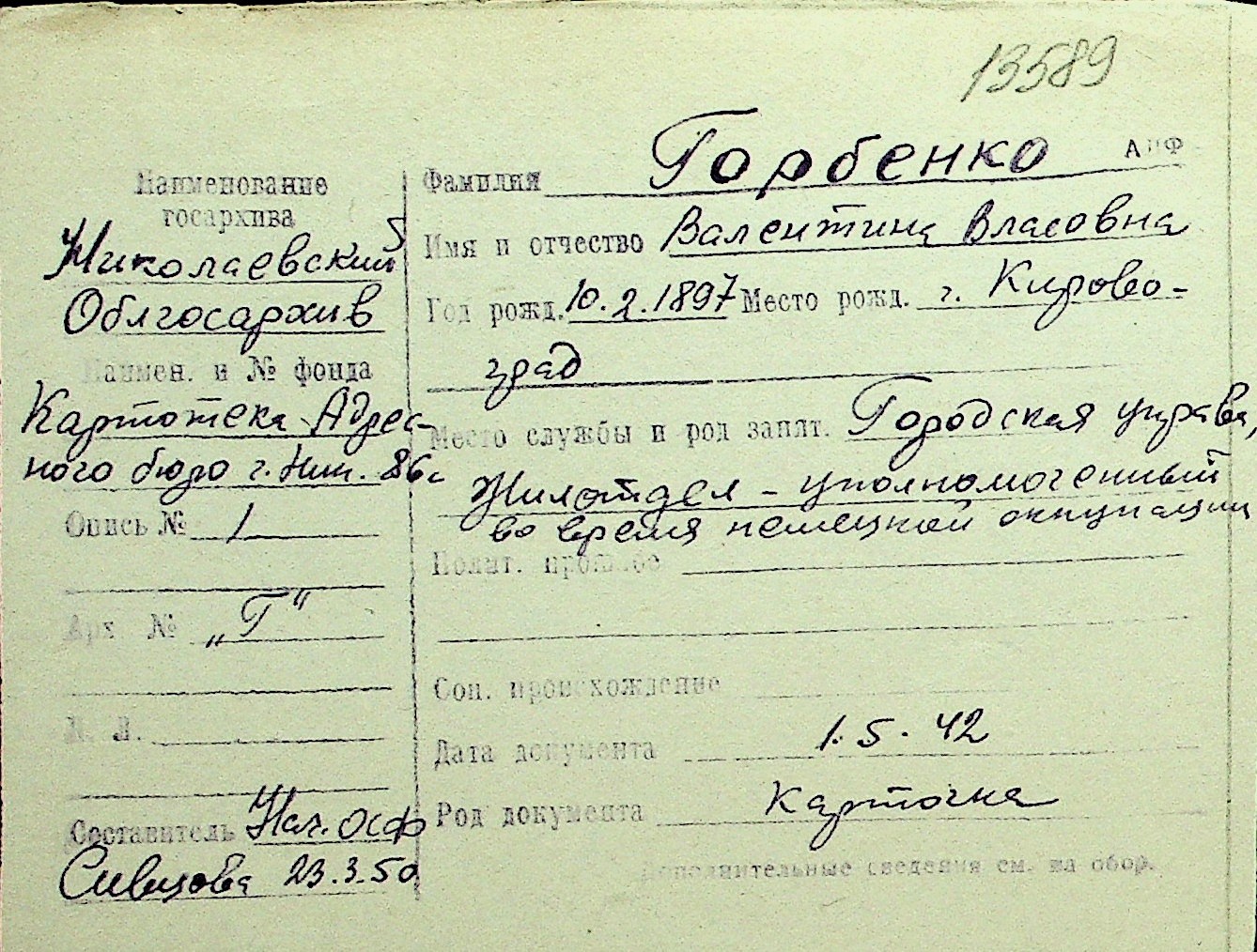 • • Перелік карток до фонду № Н-1016