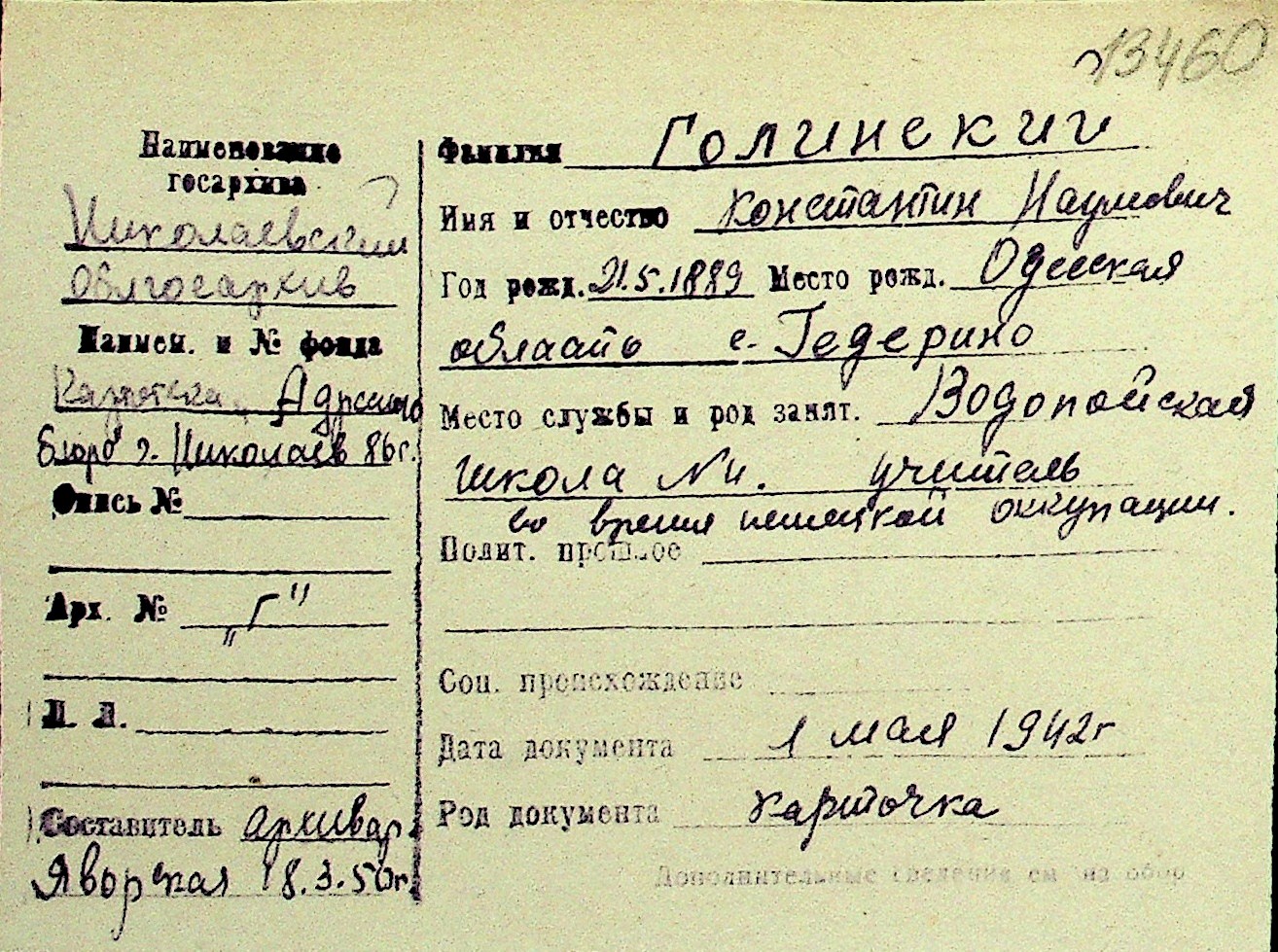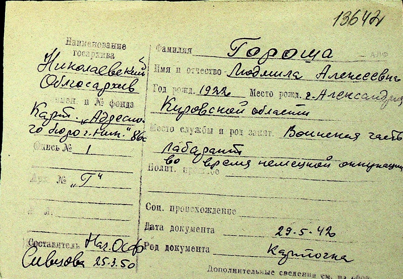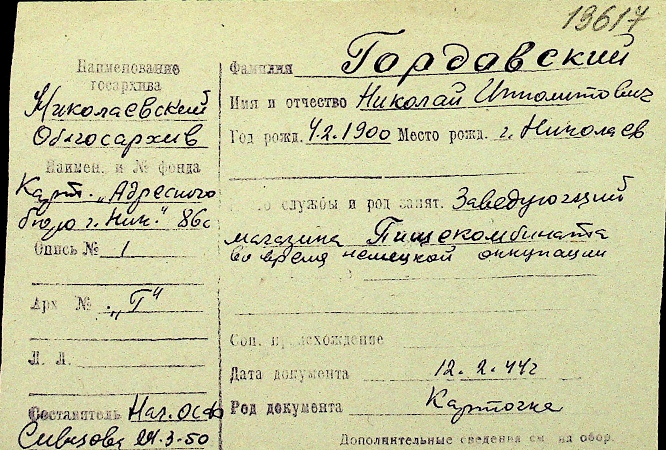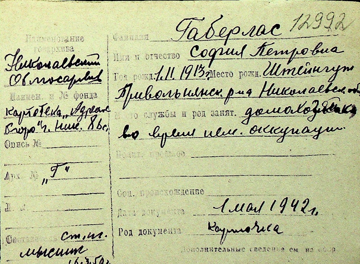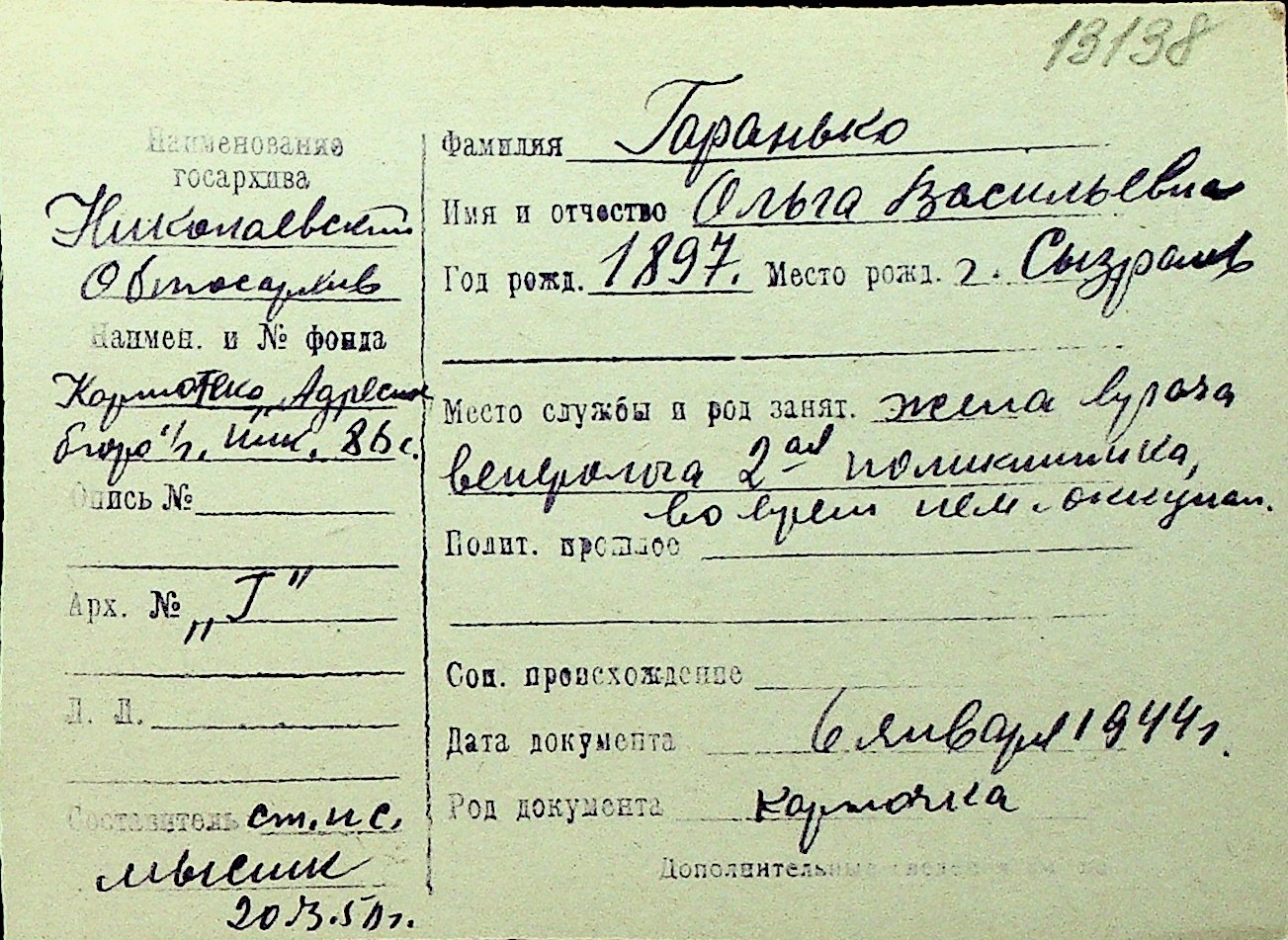 • • Перелік карток до фонду № Н-1016