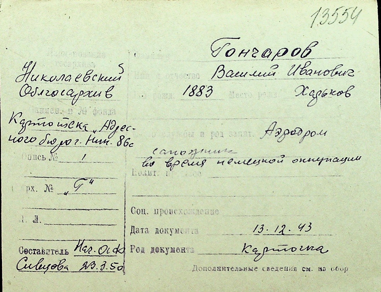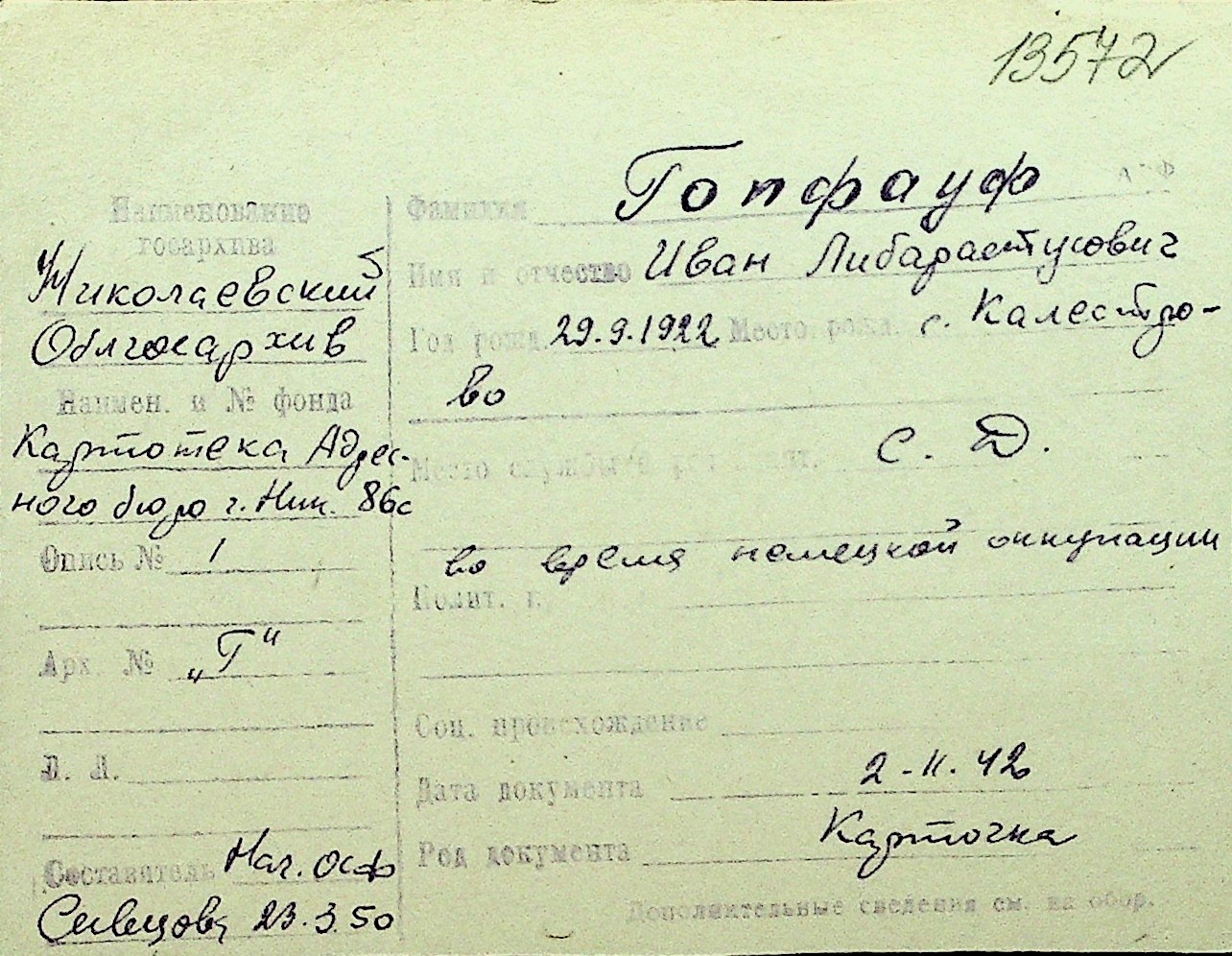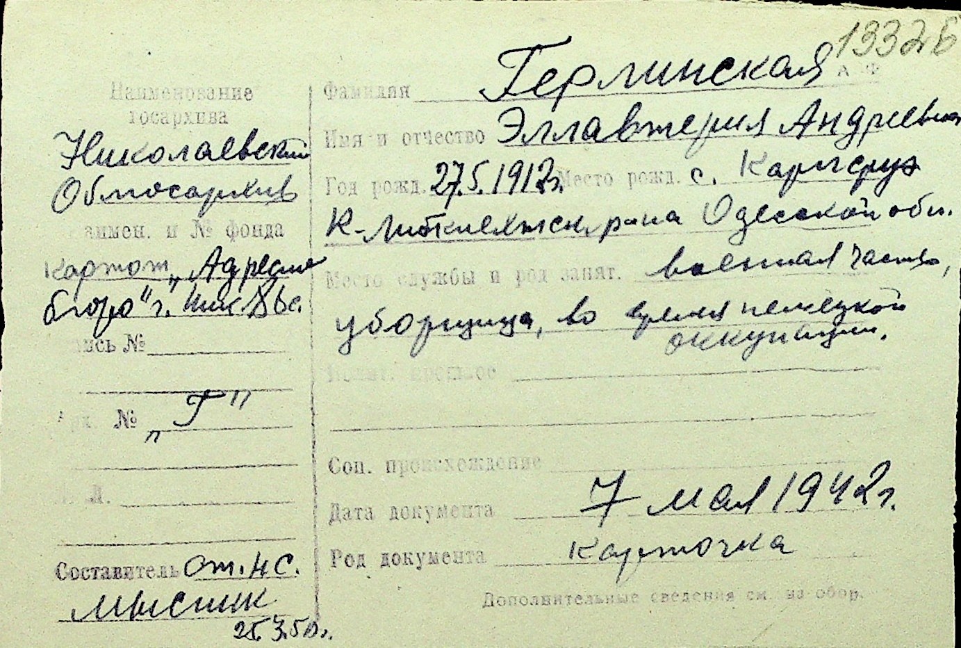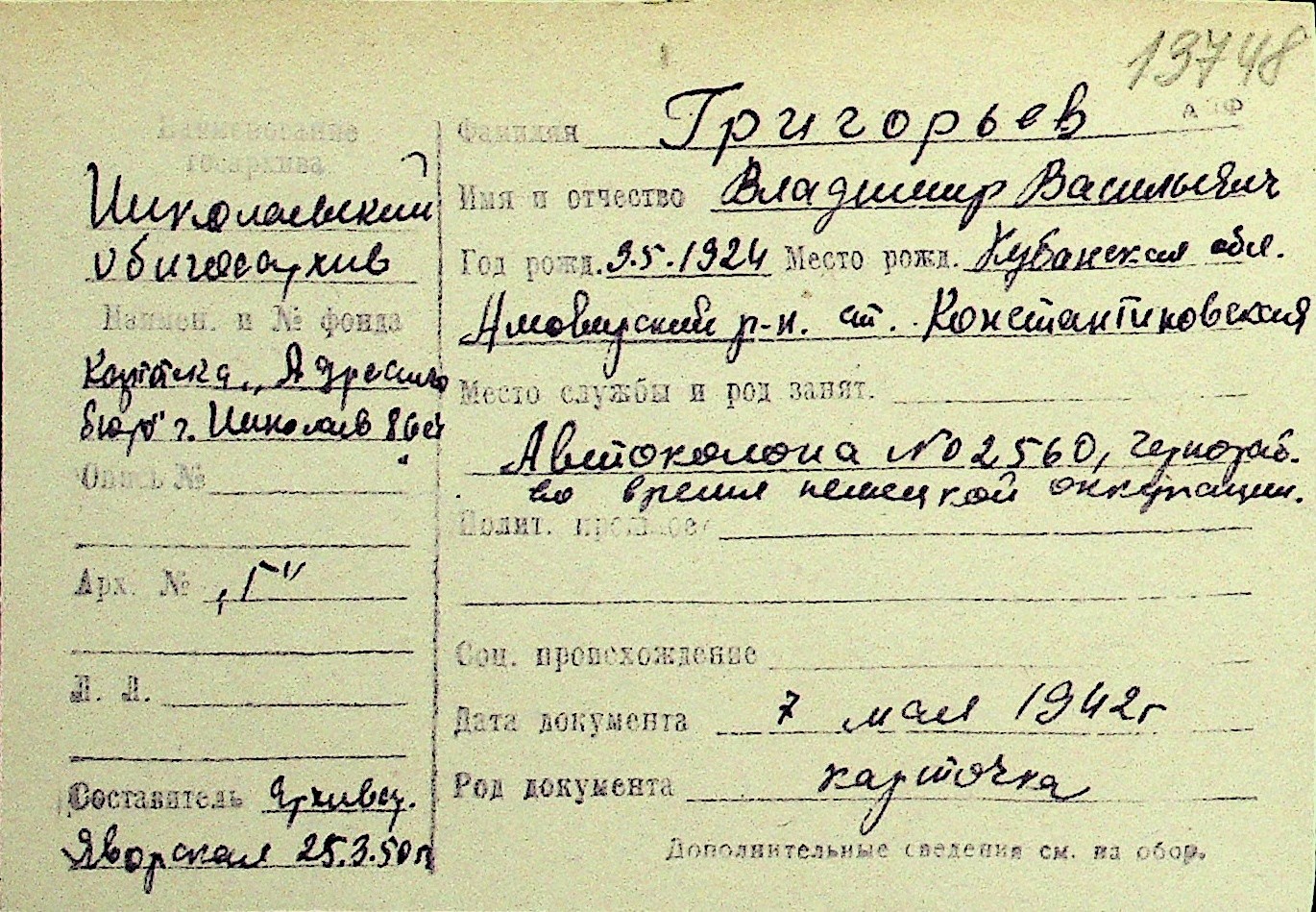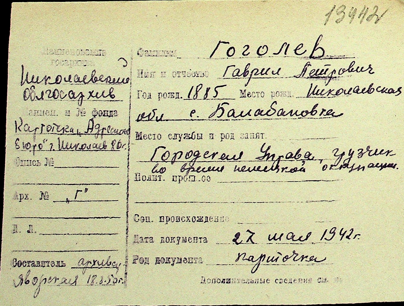 • • Перелік карток до фонду № Н-1016