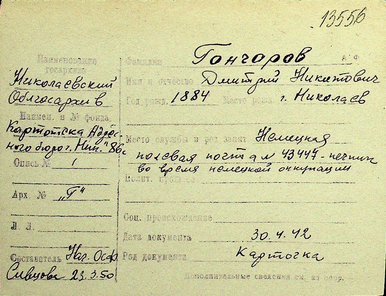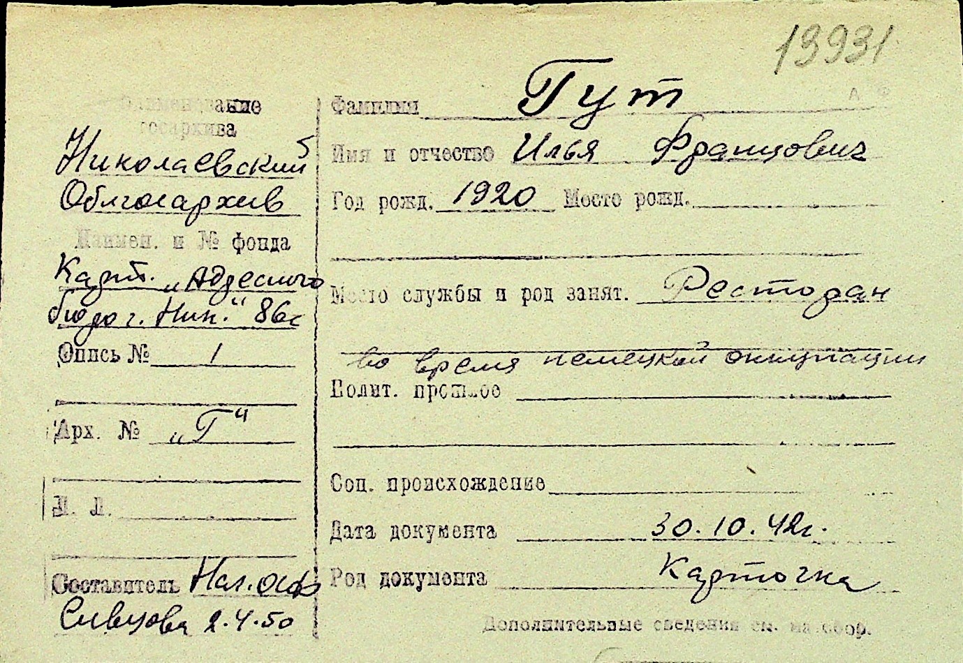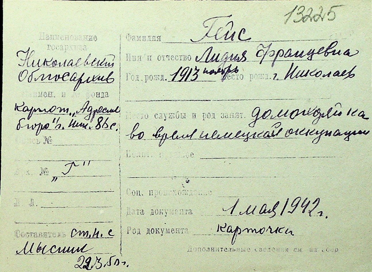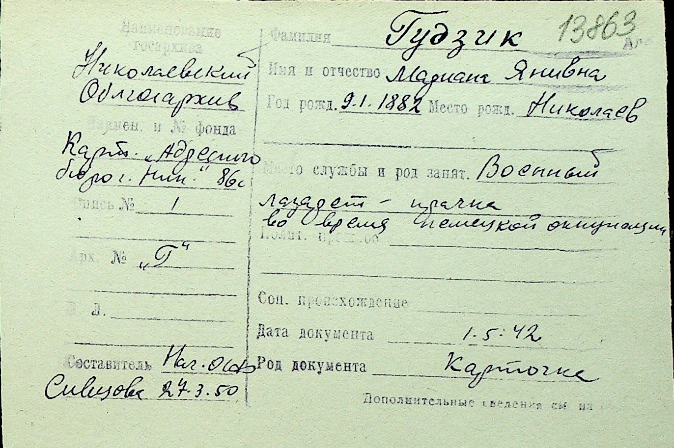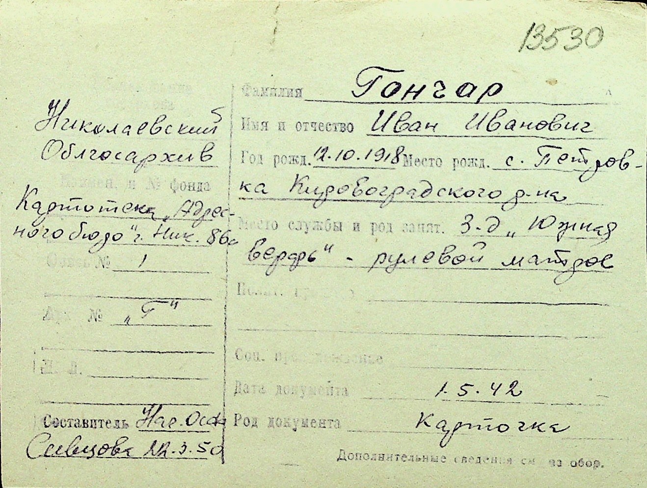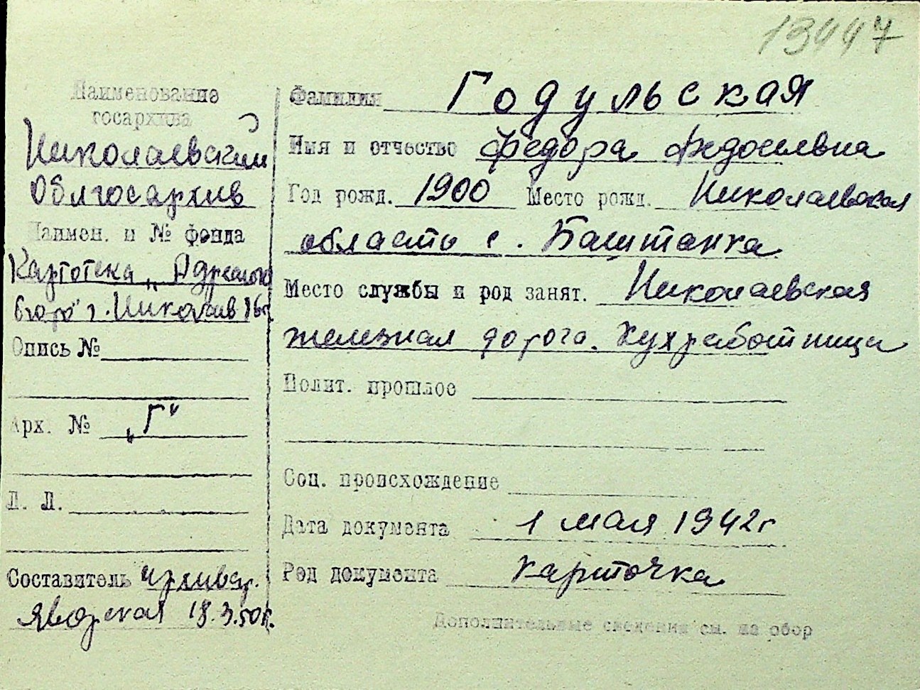 • • Перелік карток до фонду № Н-1016