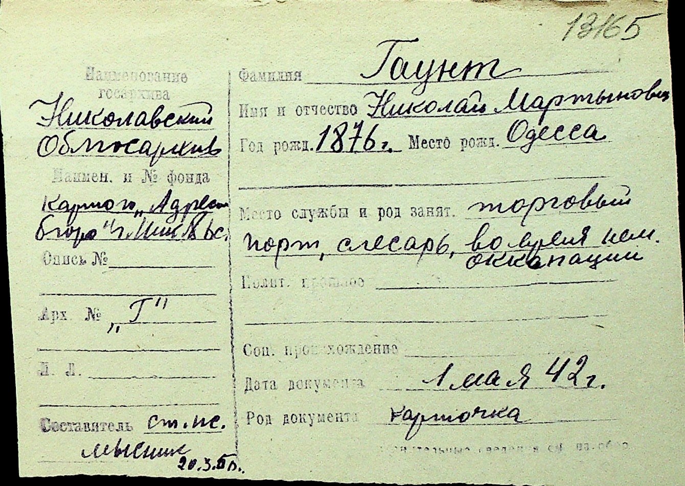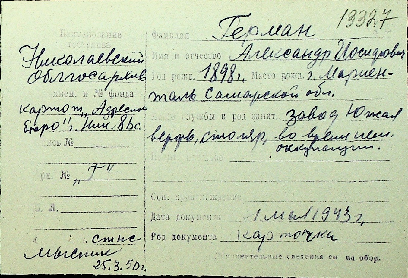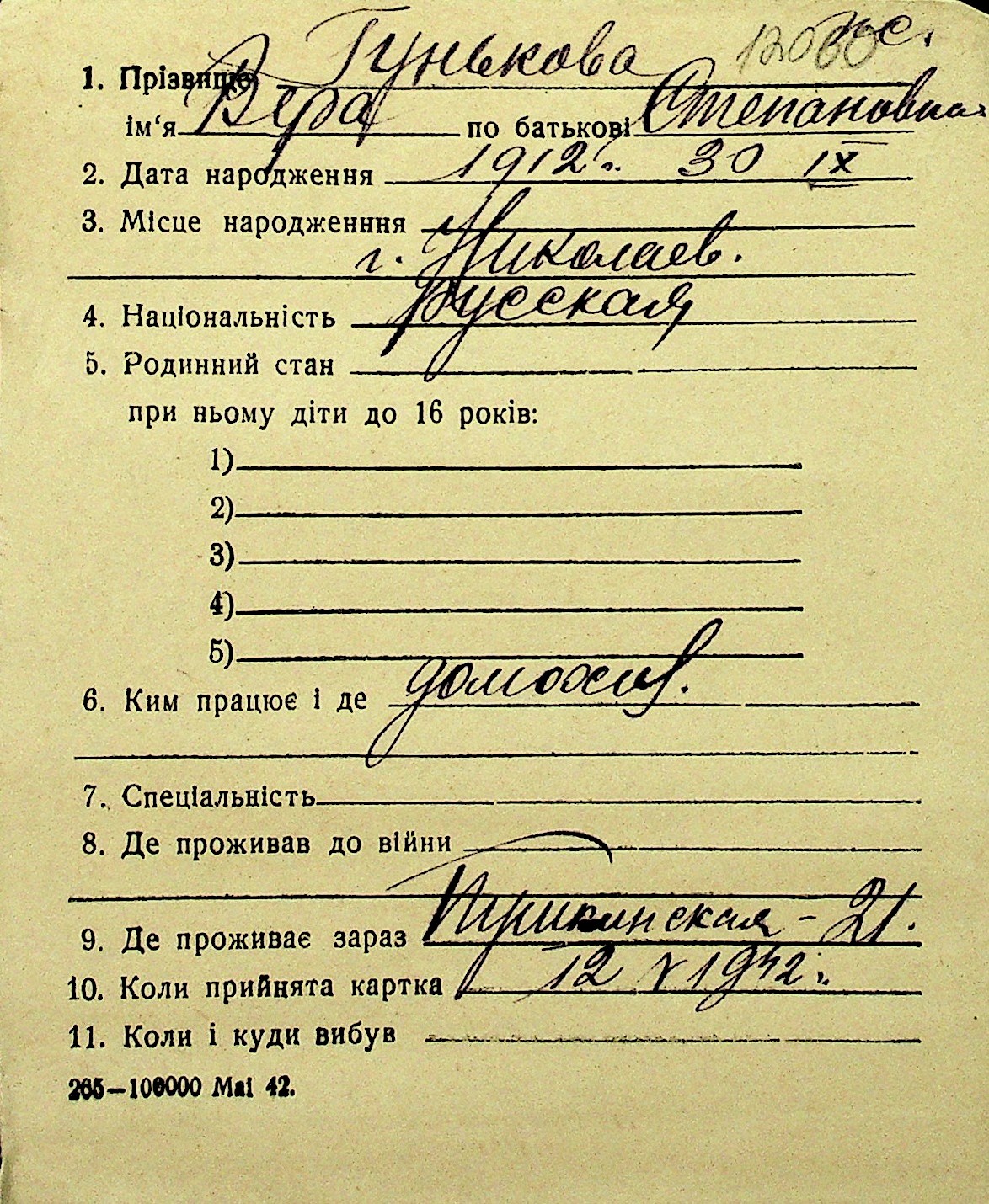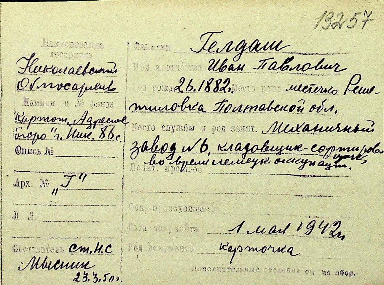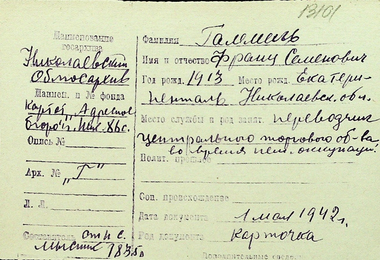 • • Перелік карток до фонду № Н-1016