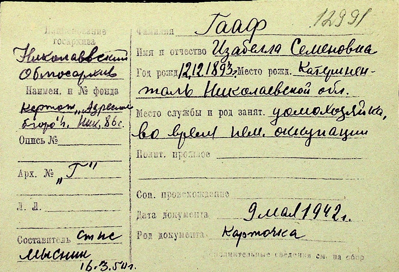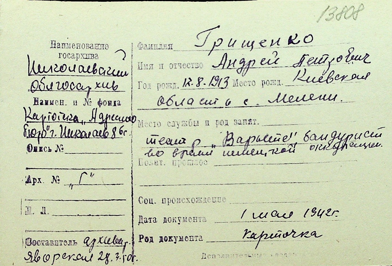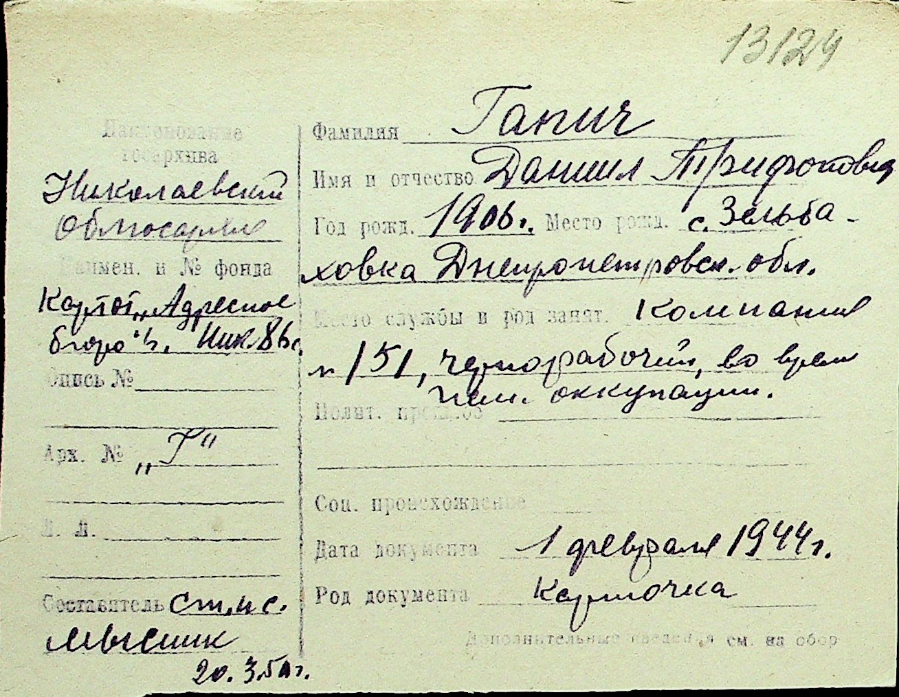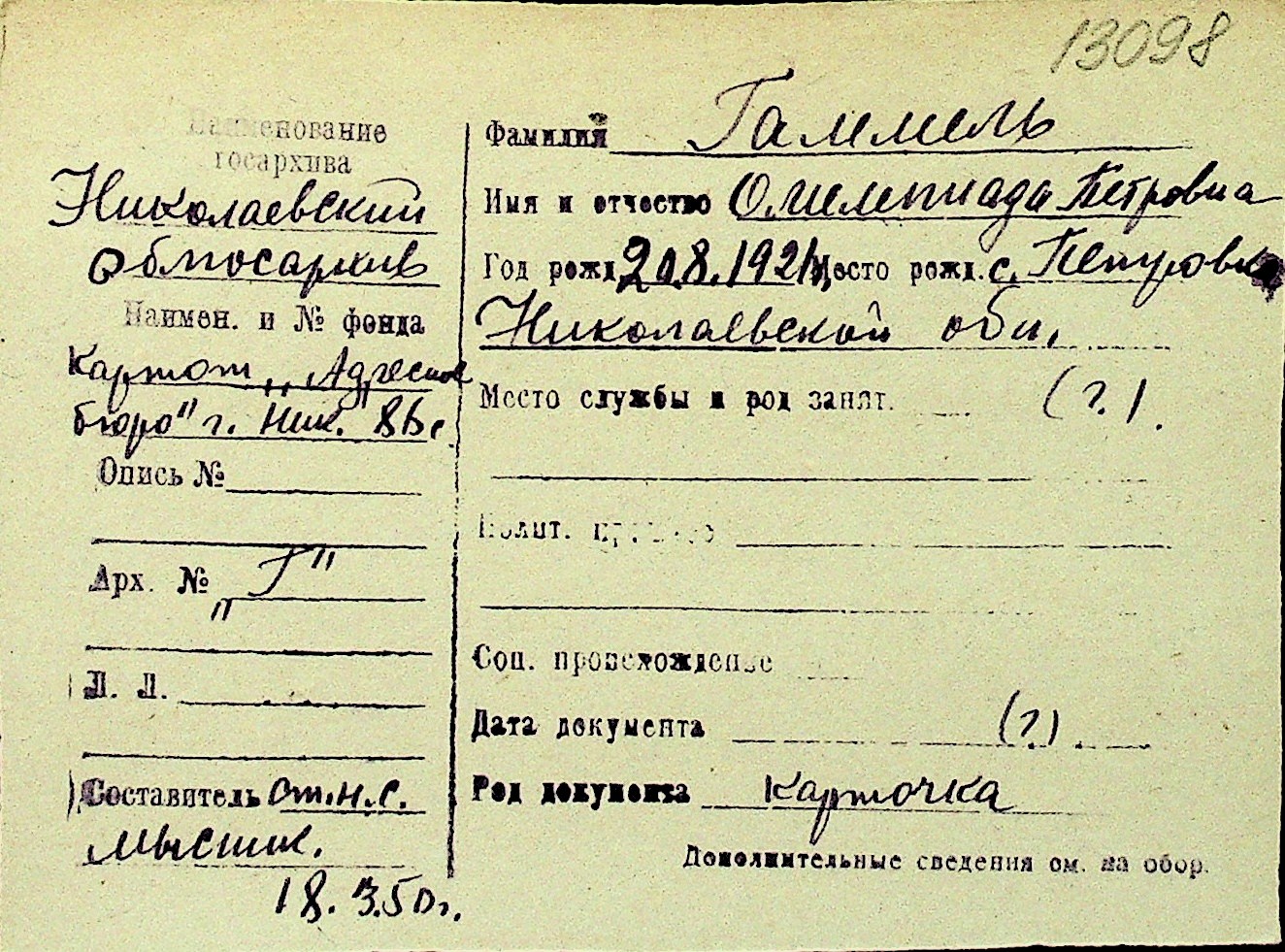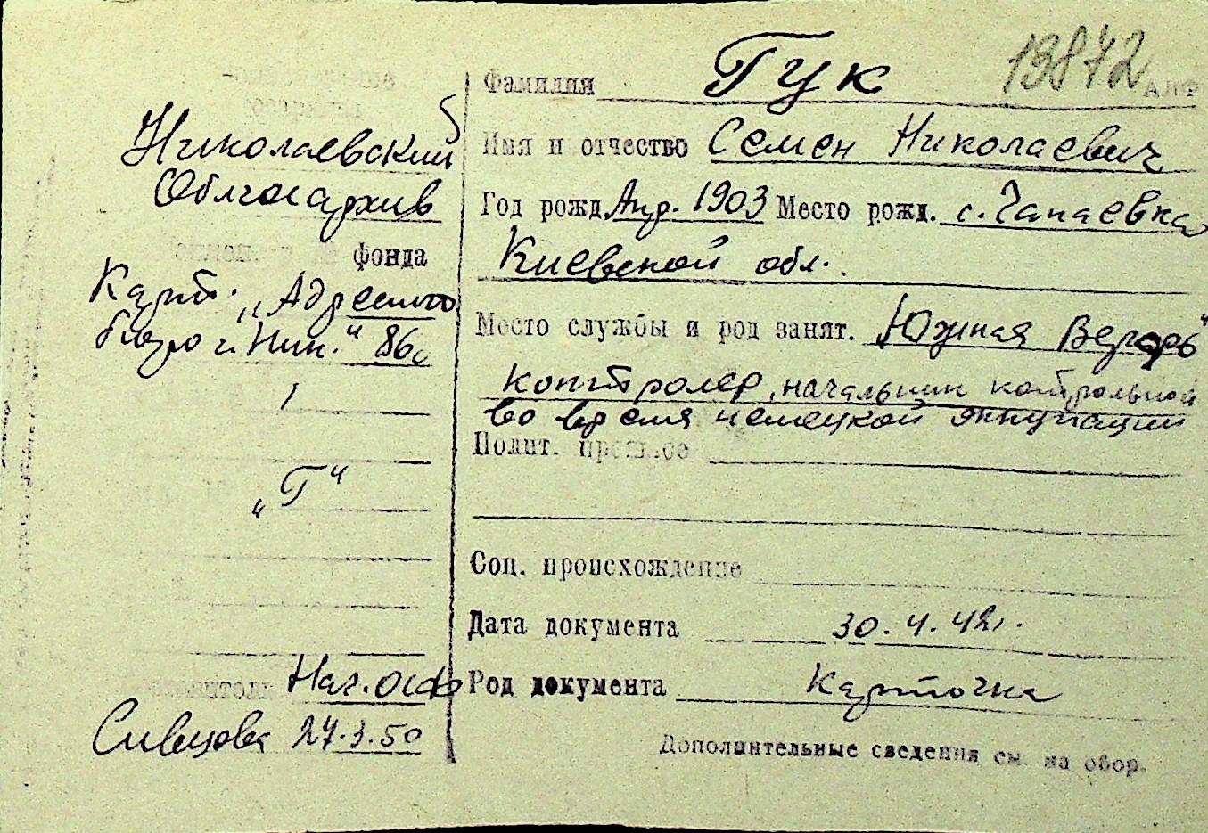 • • Перелік карток до фонду № Н-1016
