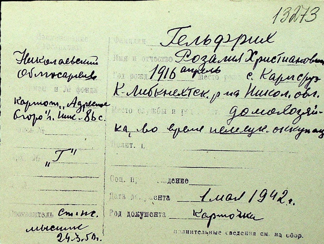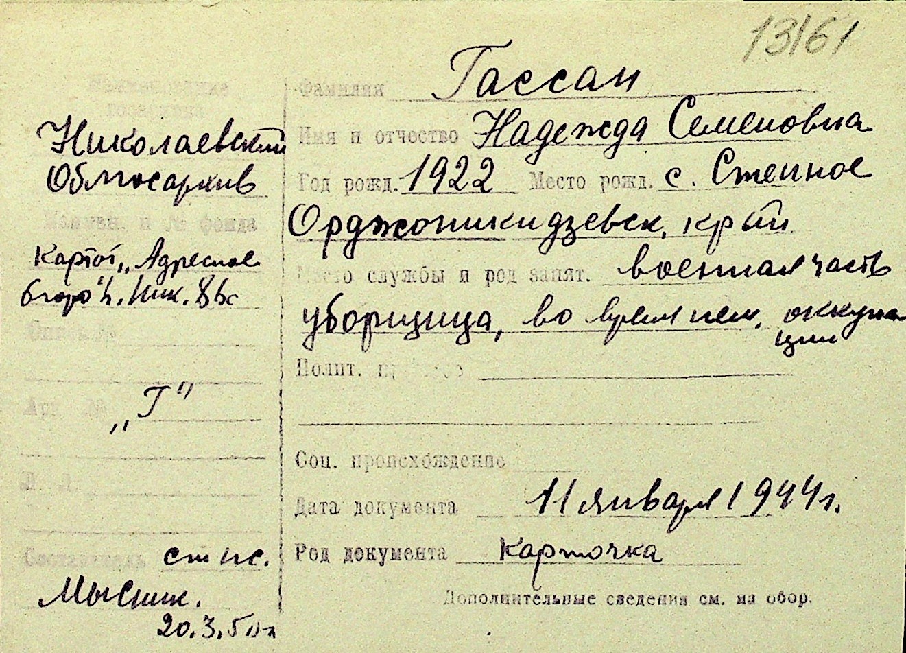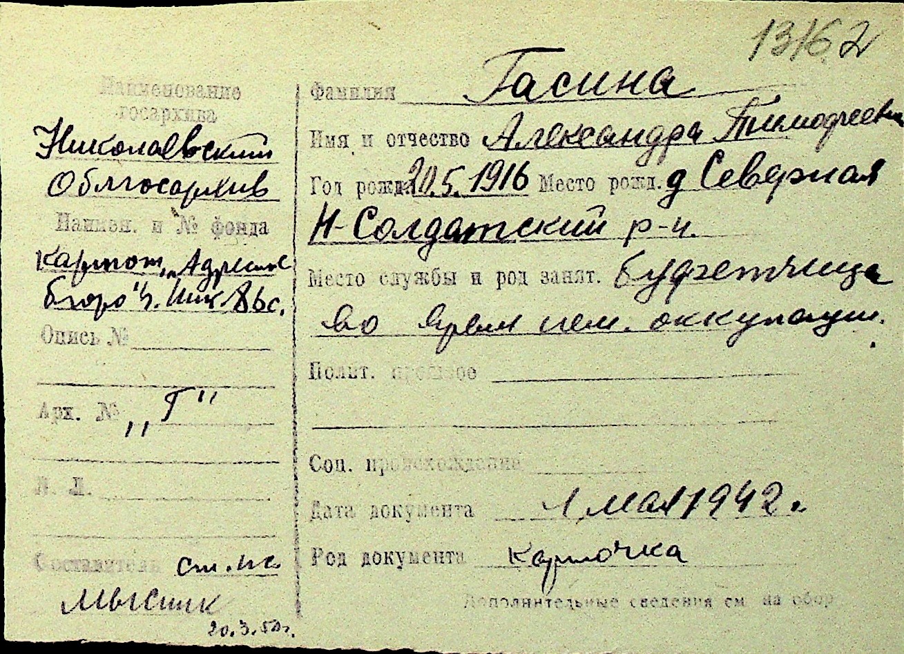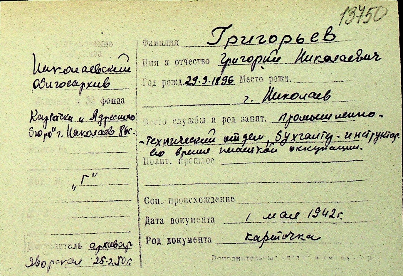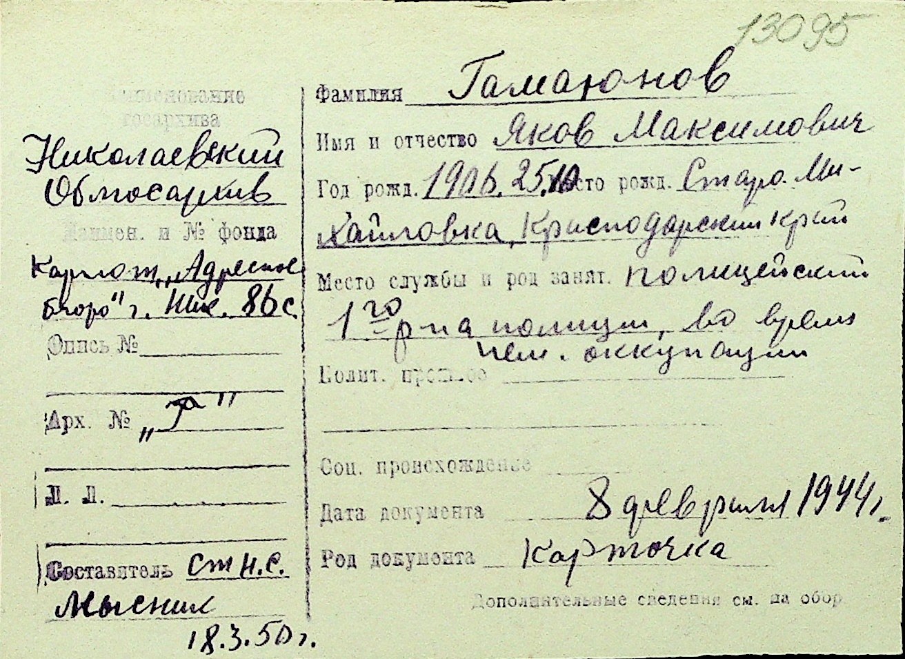 • • Перелік карток до фонду № Н-1016