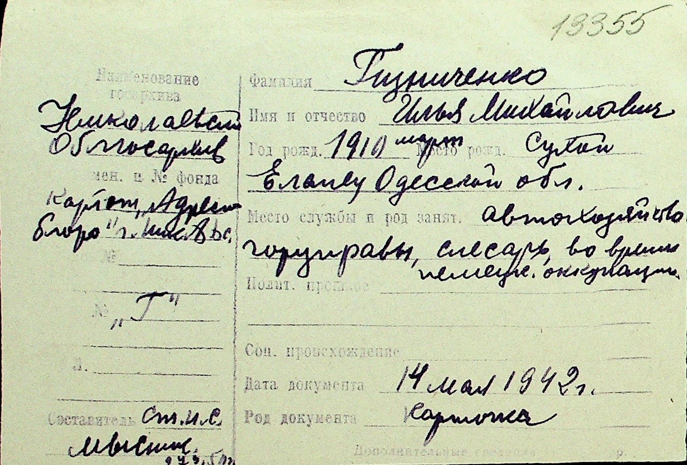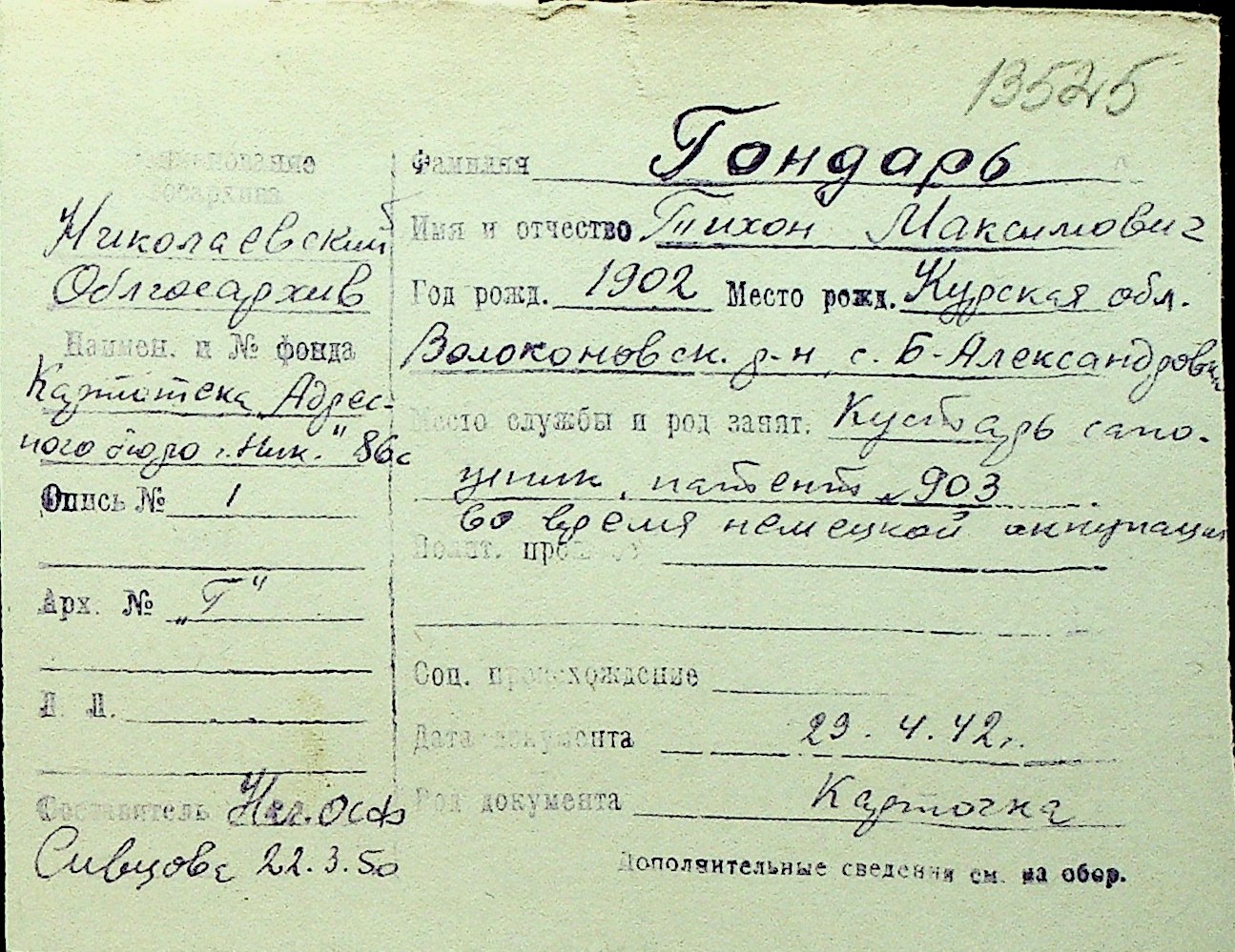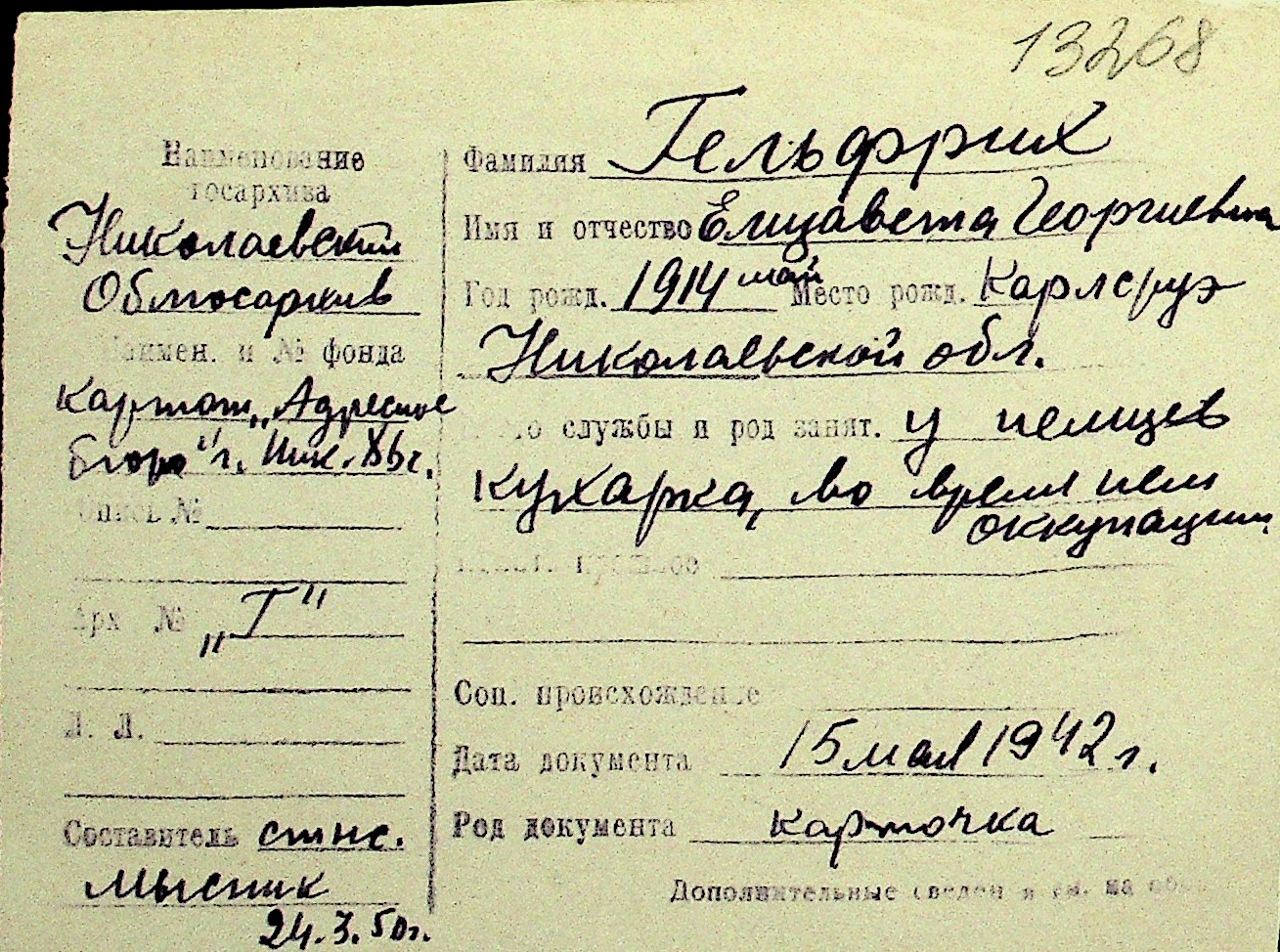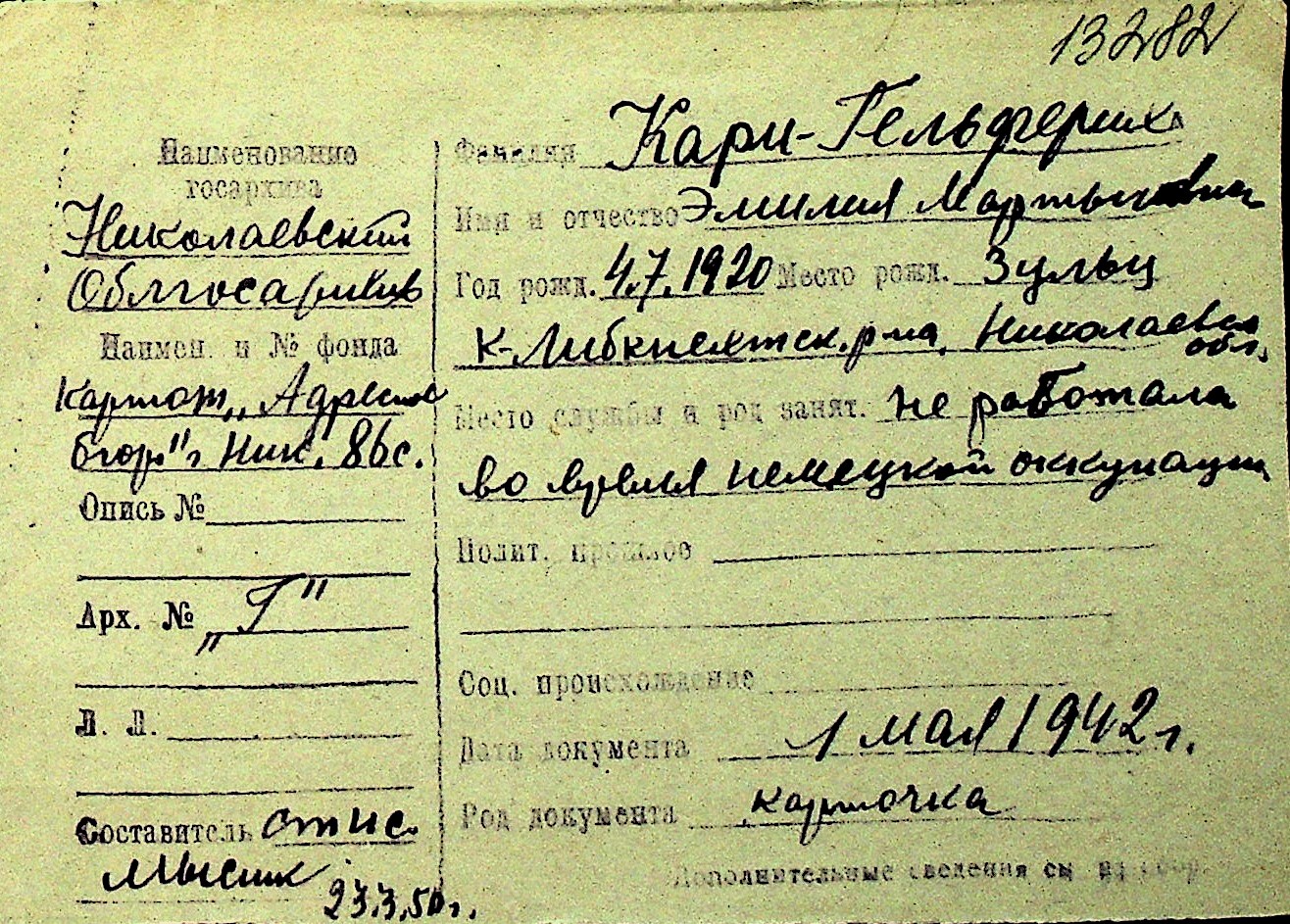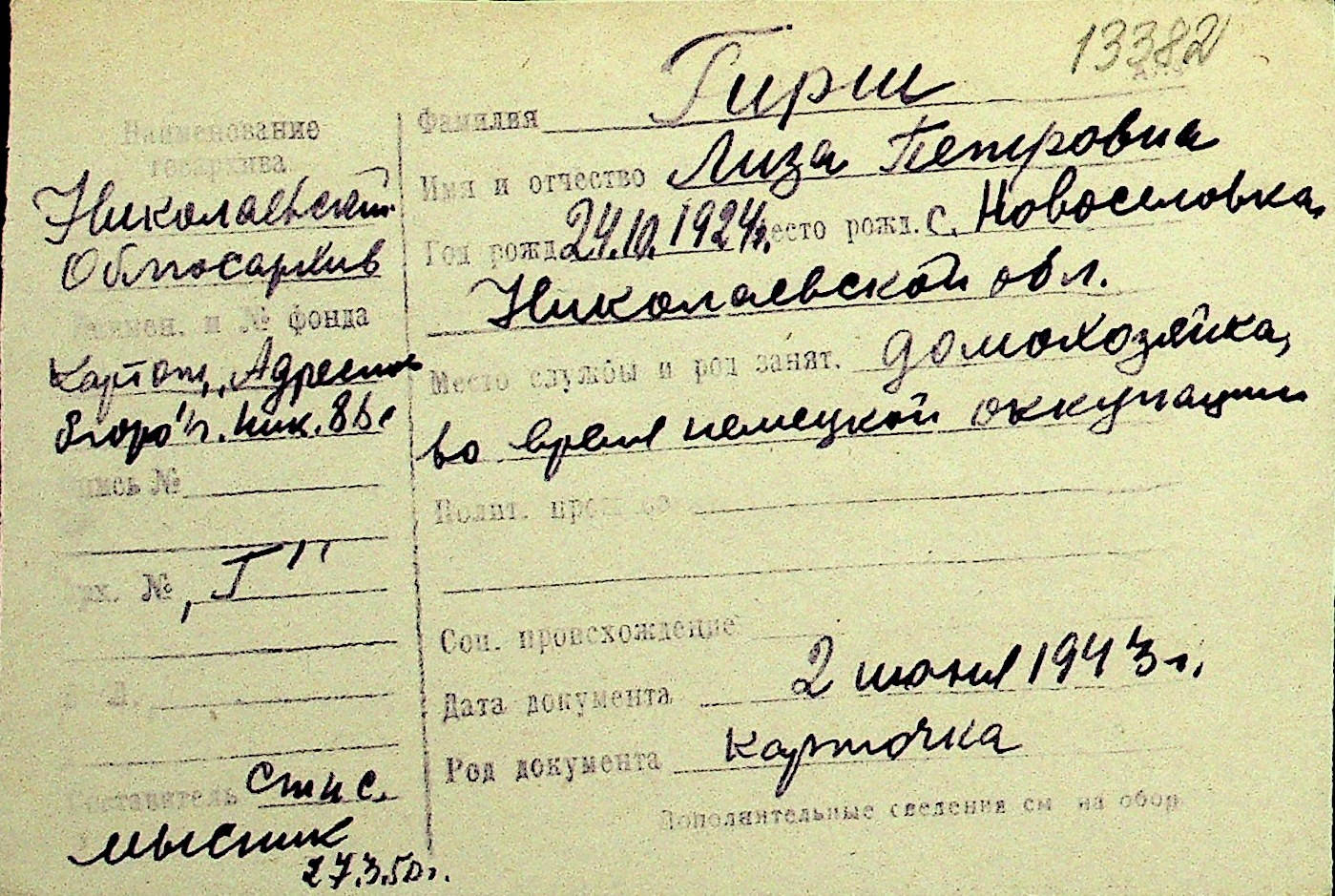 • • Перелік карток до фонду № Н-1016