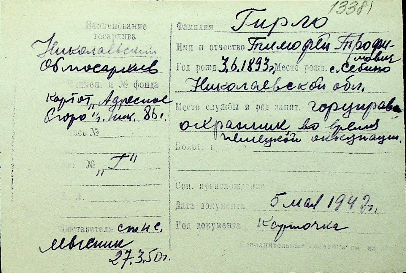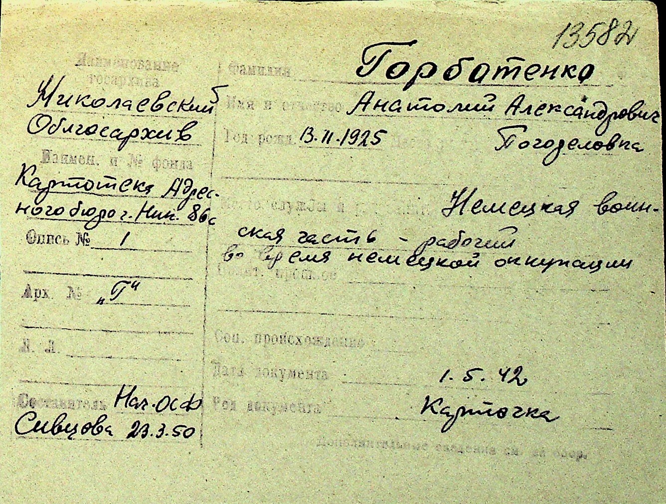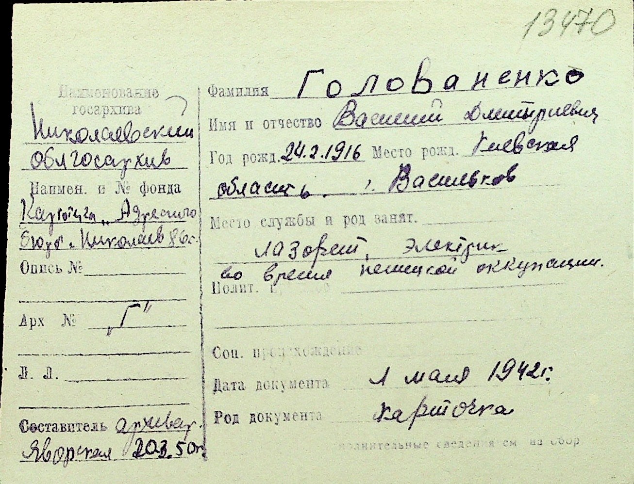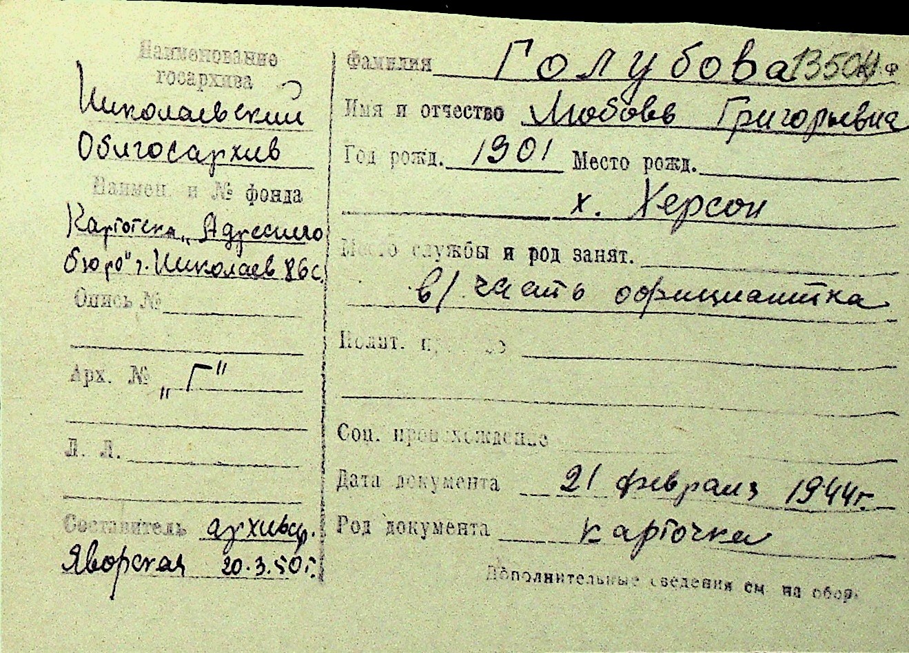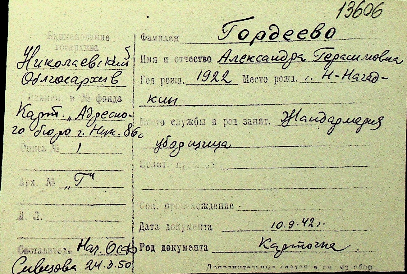 • • Перелік карток до фонду № Н-1016