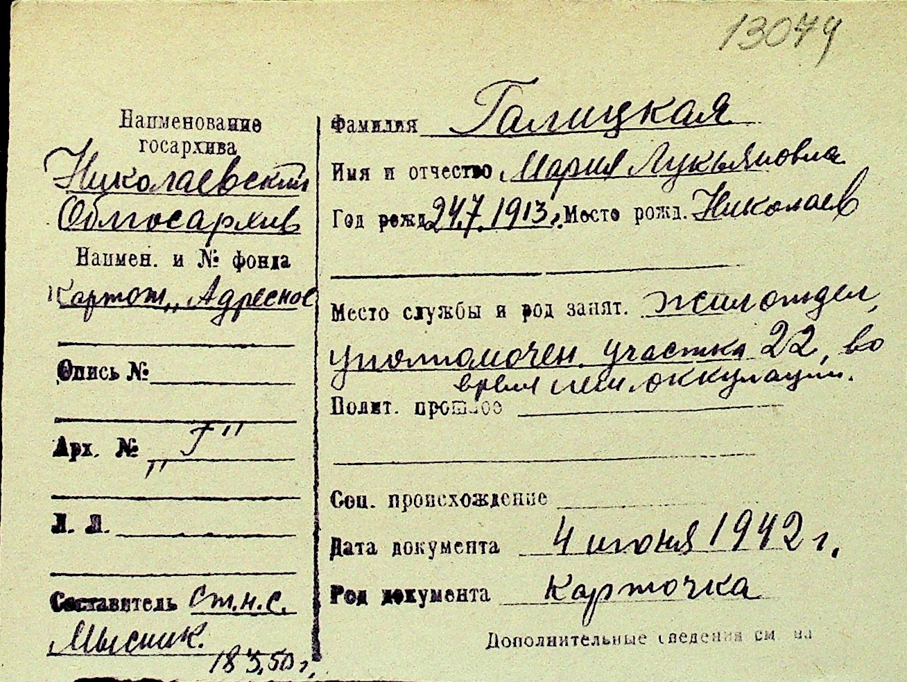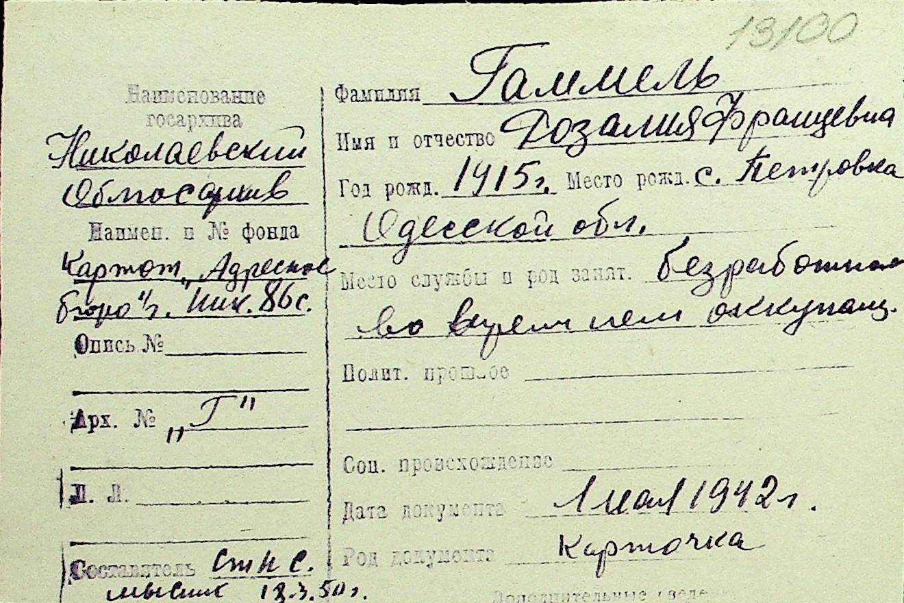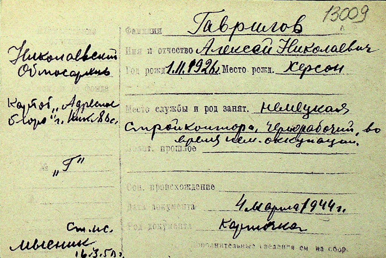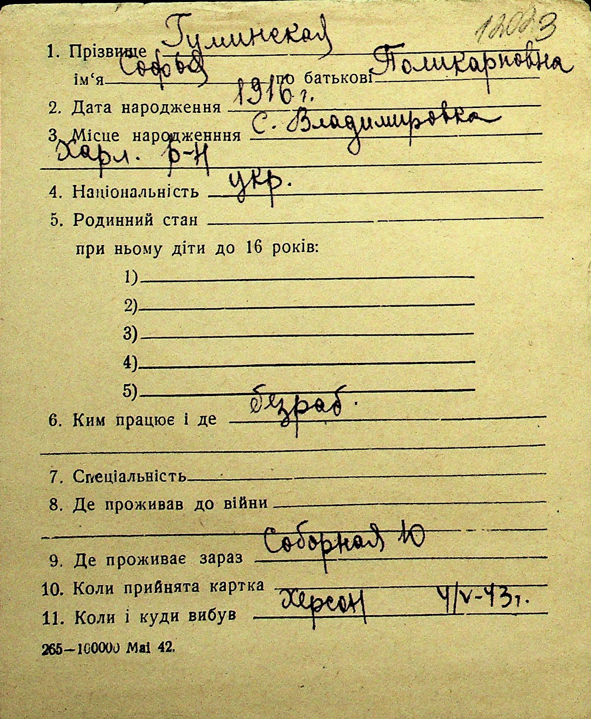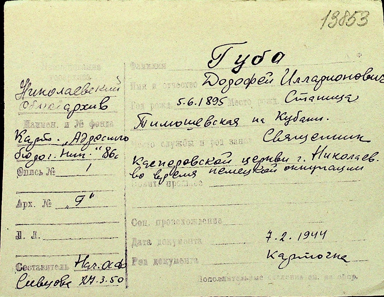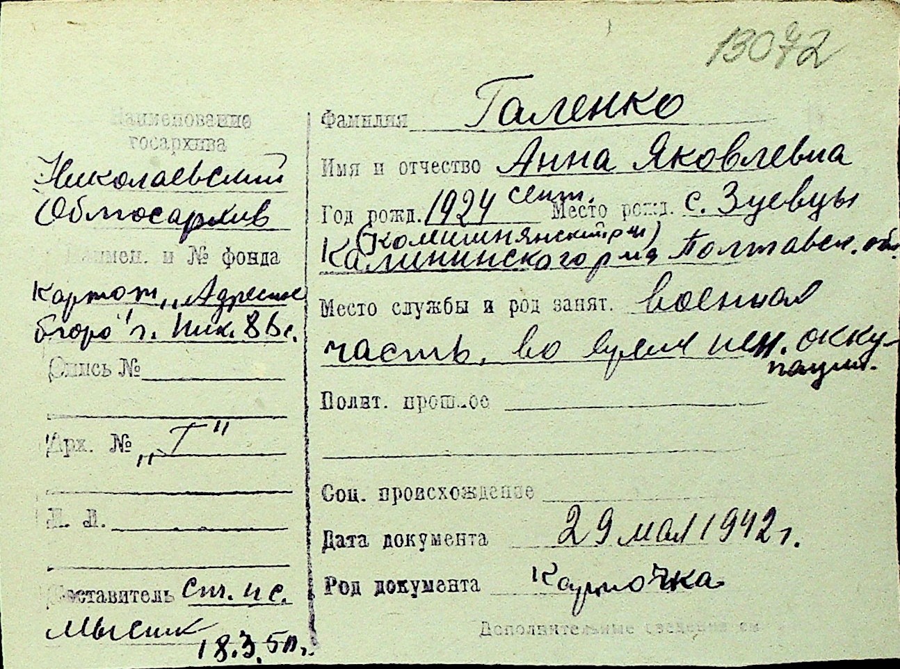 • • Перелік карток до фонду № Н-1016